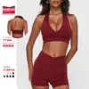 Nuevo Set de Ropa Interior Yoga de Cuello Colgante Transfronterizo para Mujer Fitness Deportivo Shorts Pilates Secado Rápido Set de Dos Piezas