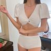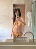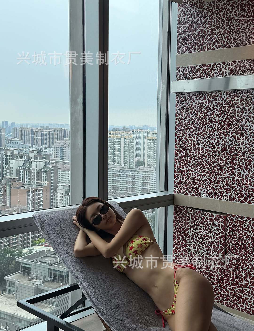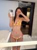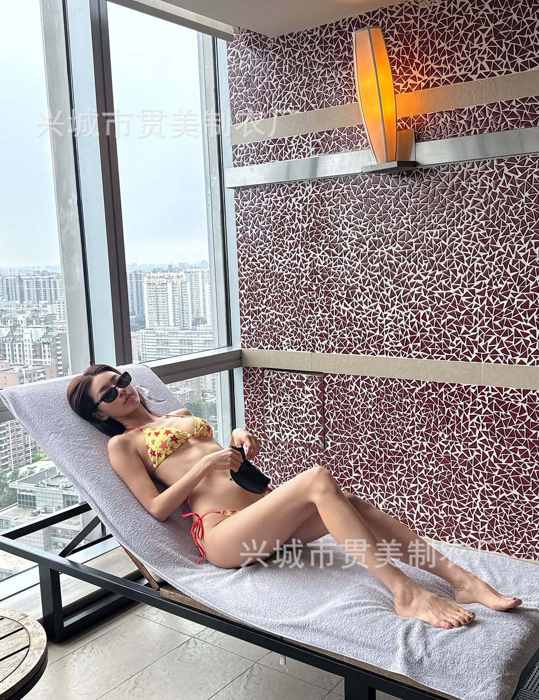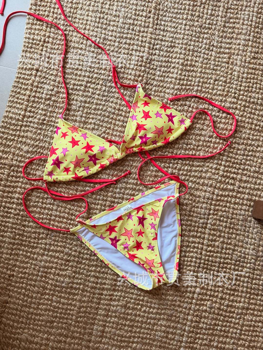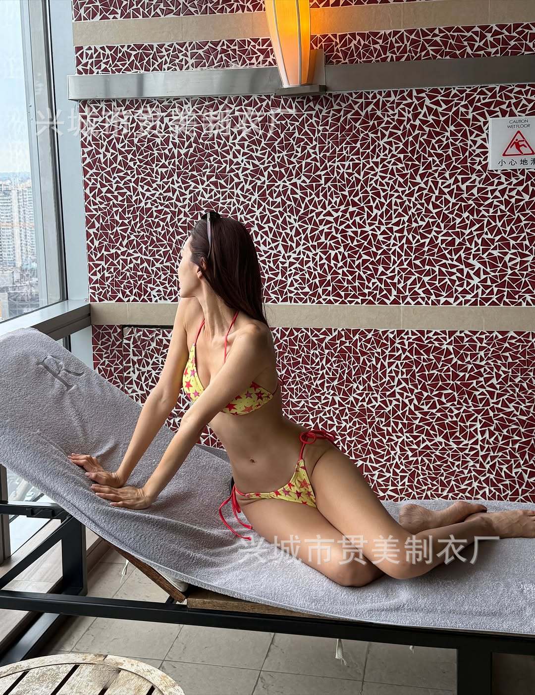 Traje de Baño Nuevo para Mujer Coreano Sexy Chica Caliente Amarillo Estrella Halter Atado Bikini Fruncido Adelgazante Vacaciones en la Playa