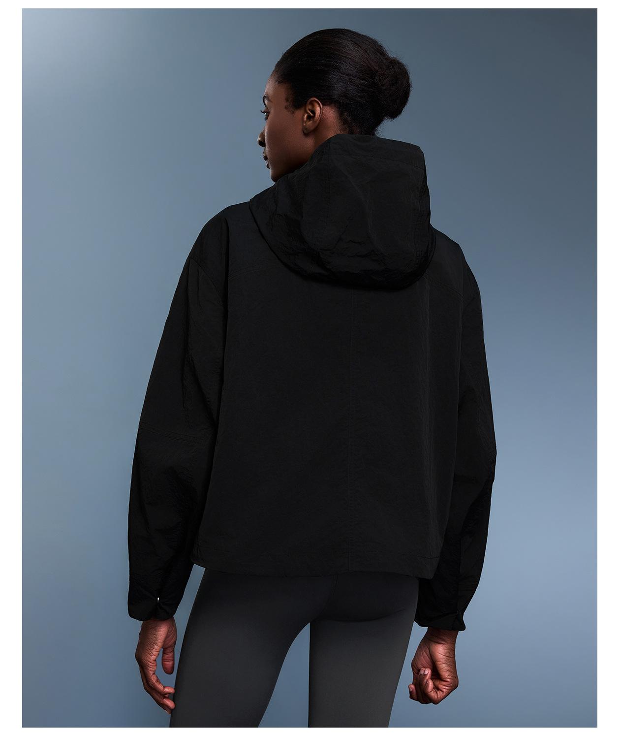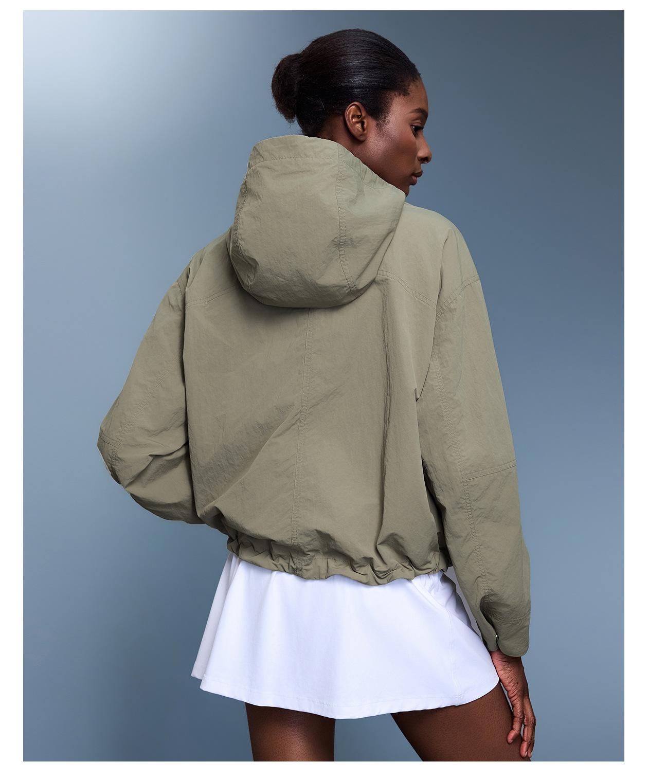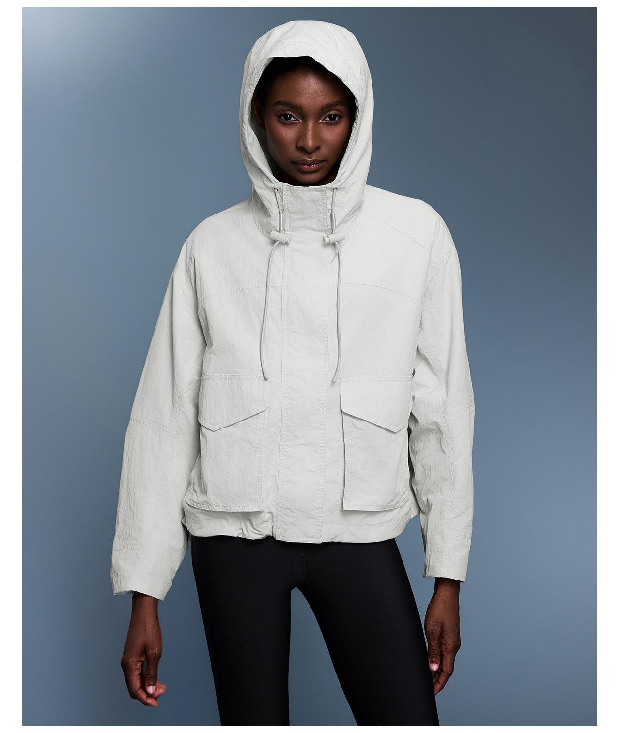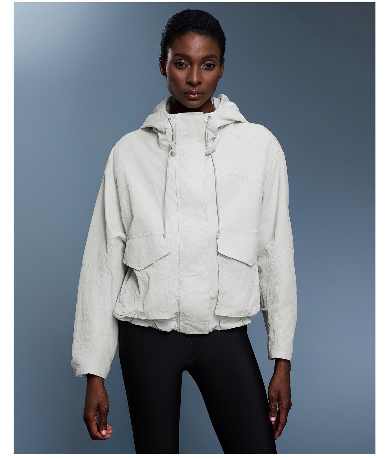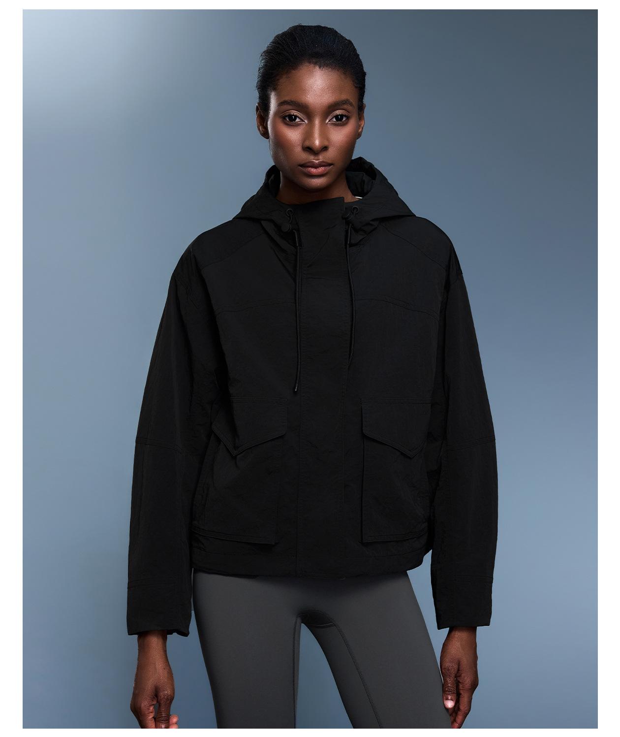 Otoño Nuevo Chaqueta Multifuncional con Capucha Mujer Cortavientos Impermeable Exterior Transpirable Suelta Gabardina Corta D25126