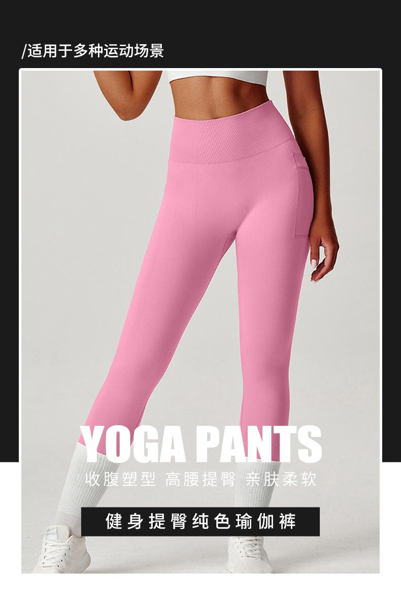 Nuevos pantalones de yoga de color sólido de cintura alta transfronterizos, pantalones levanta glúteos, para correr, ciclismo, deportes, fitness, levanta caderas, leggings de yoga para mujer