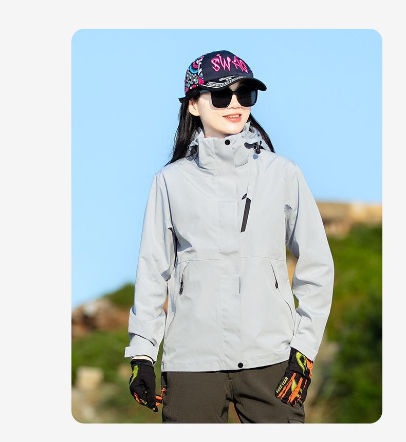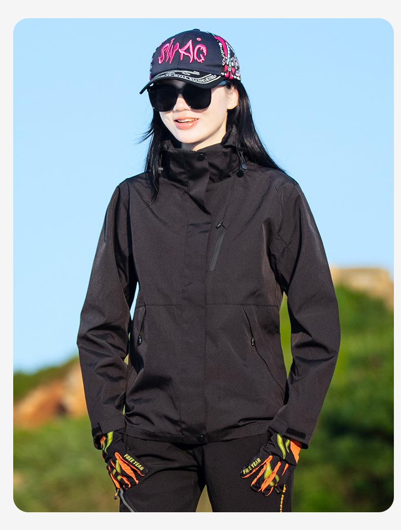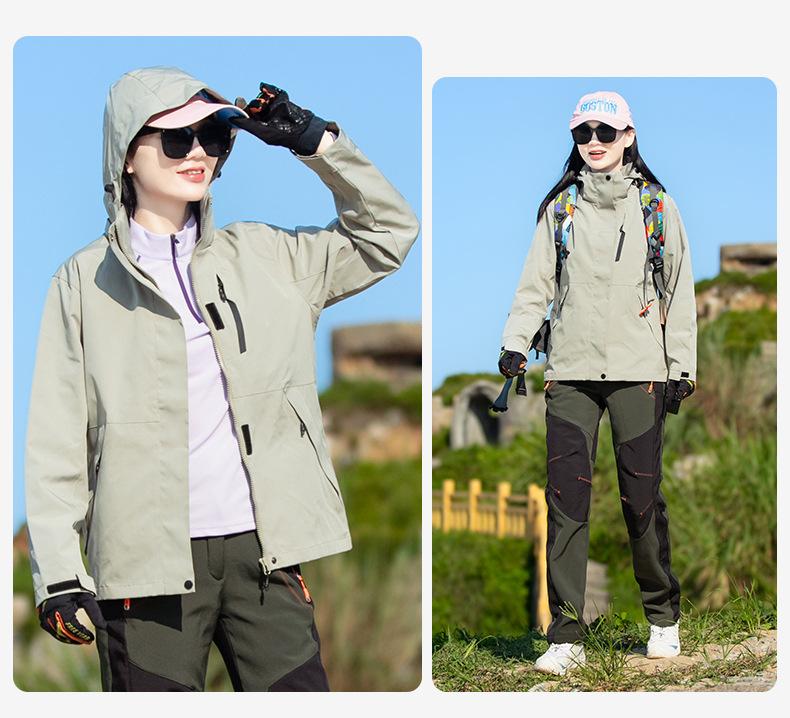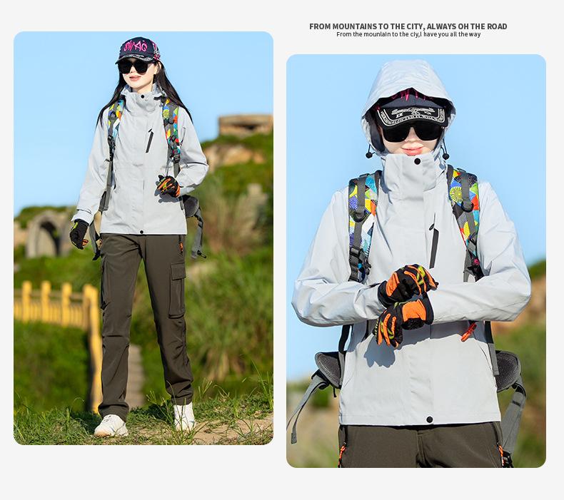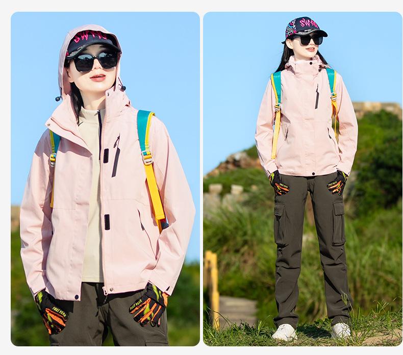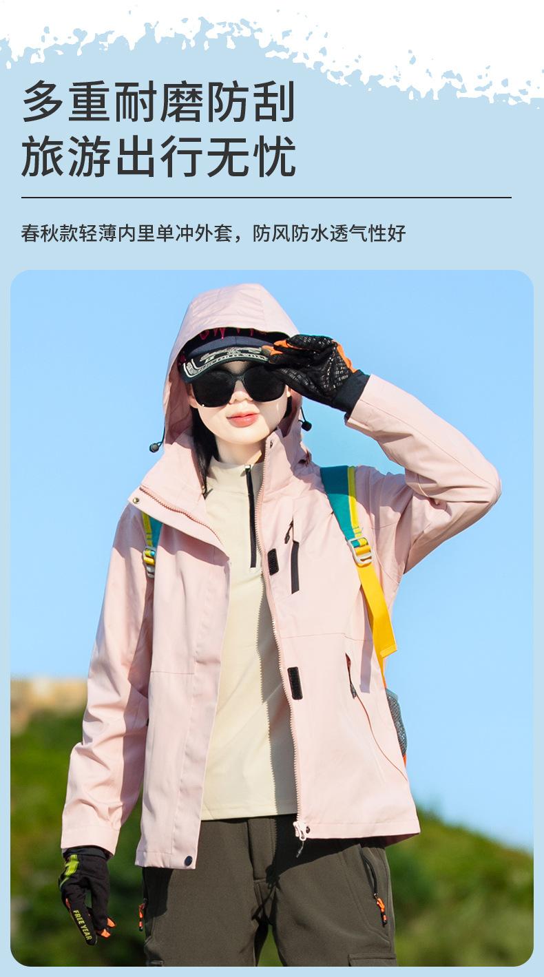 Chaqueta para mujer para exteriores primavera y otoño capucha removible delgada transpirable cortavientos impermeable pareja viaje montañismo chaqueta de una sola capa