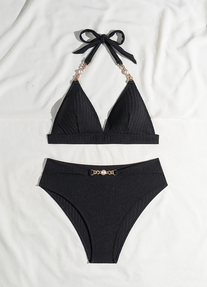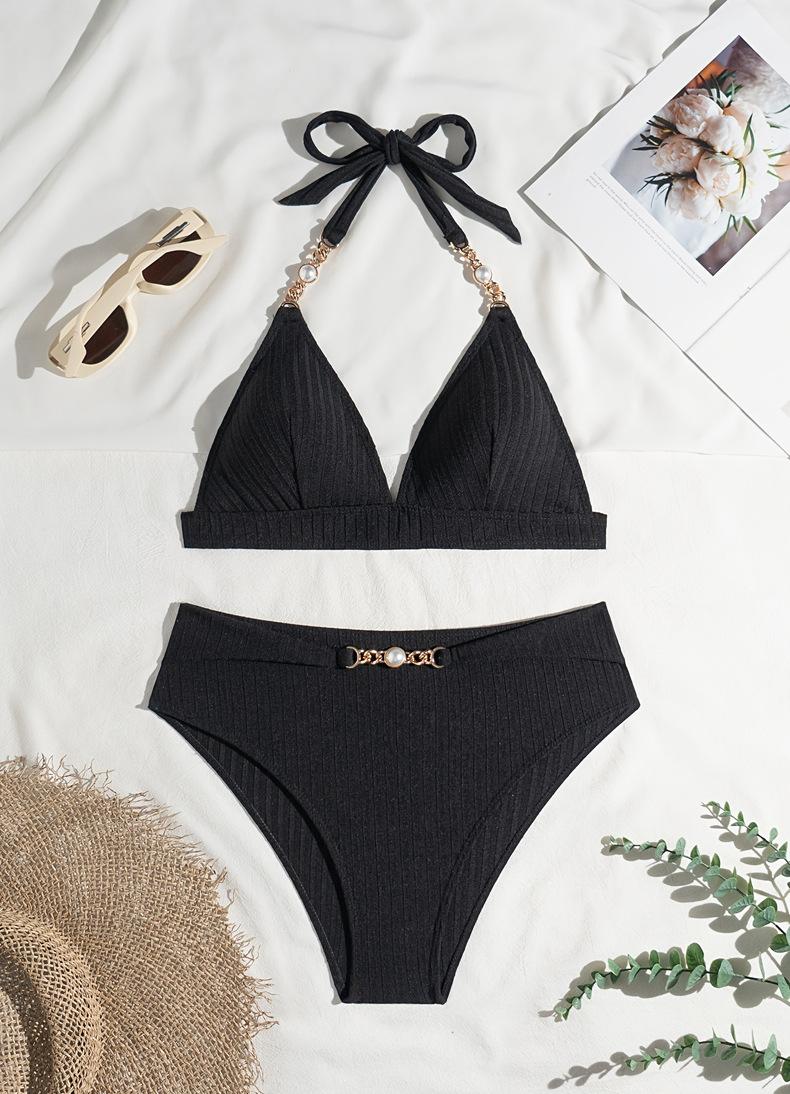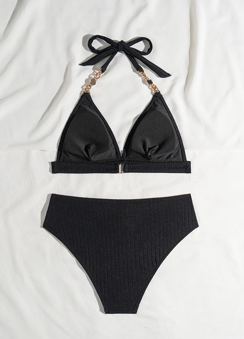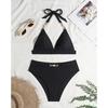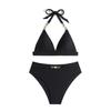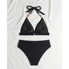 Europeo y americano nuevo bikini sexy dividido traje de baño para mujer color sólido cuello halter bikini de playa comercio exterior transfronterizo estilo caliente