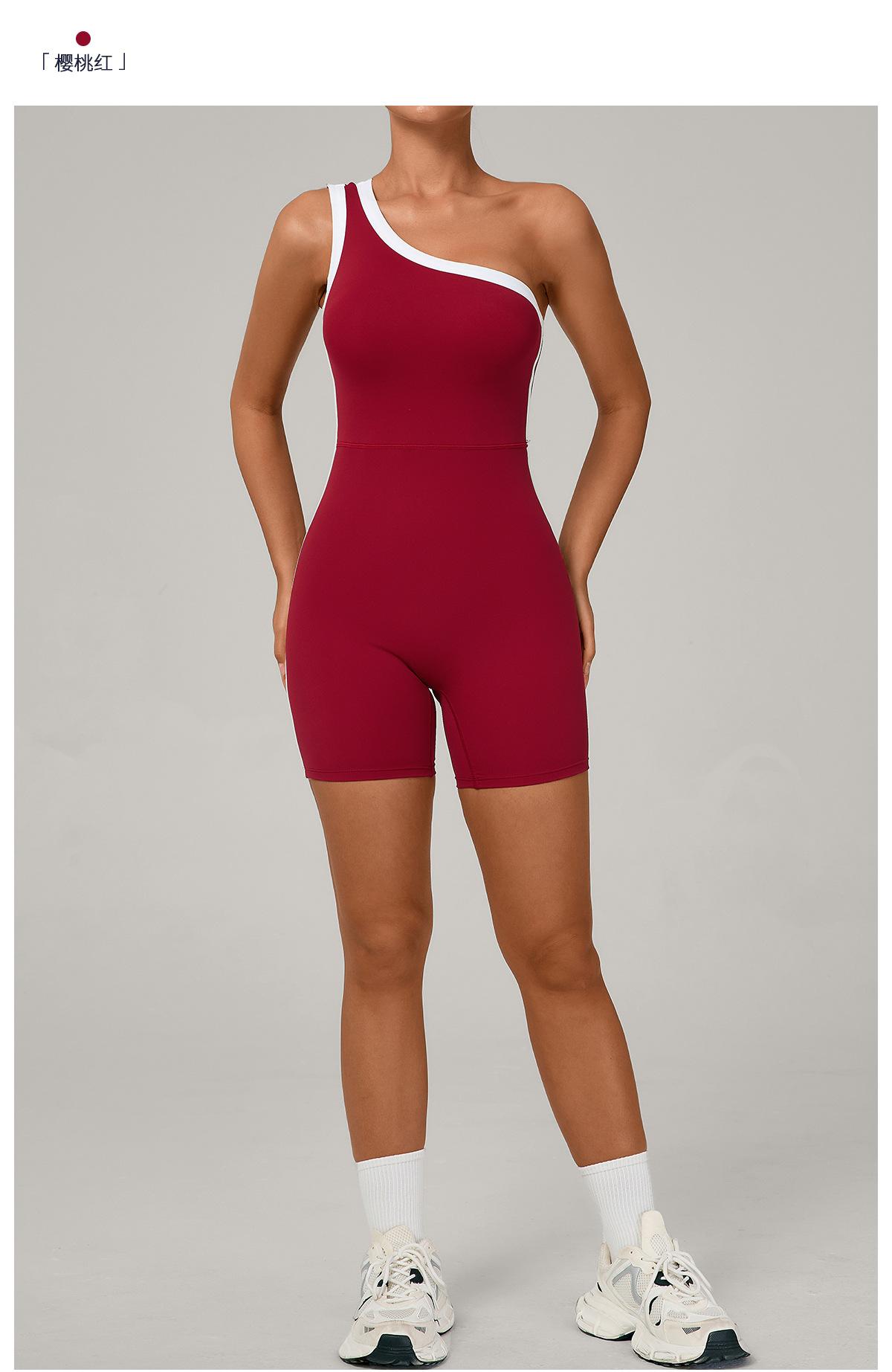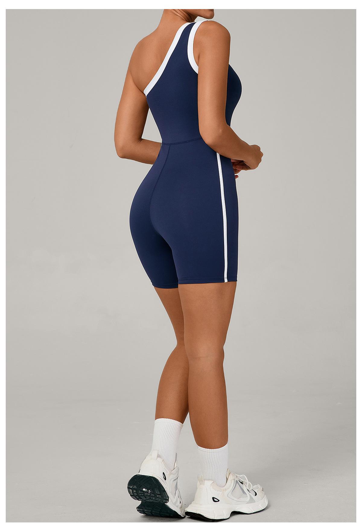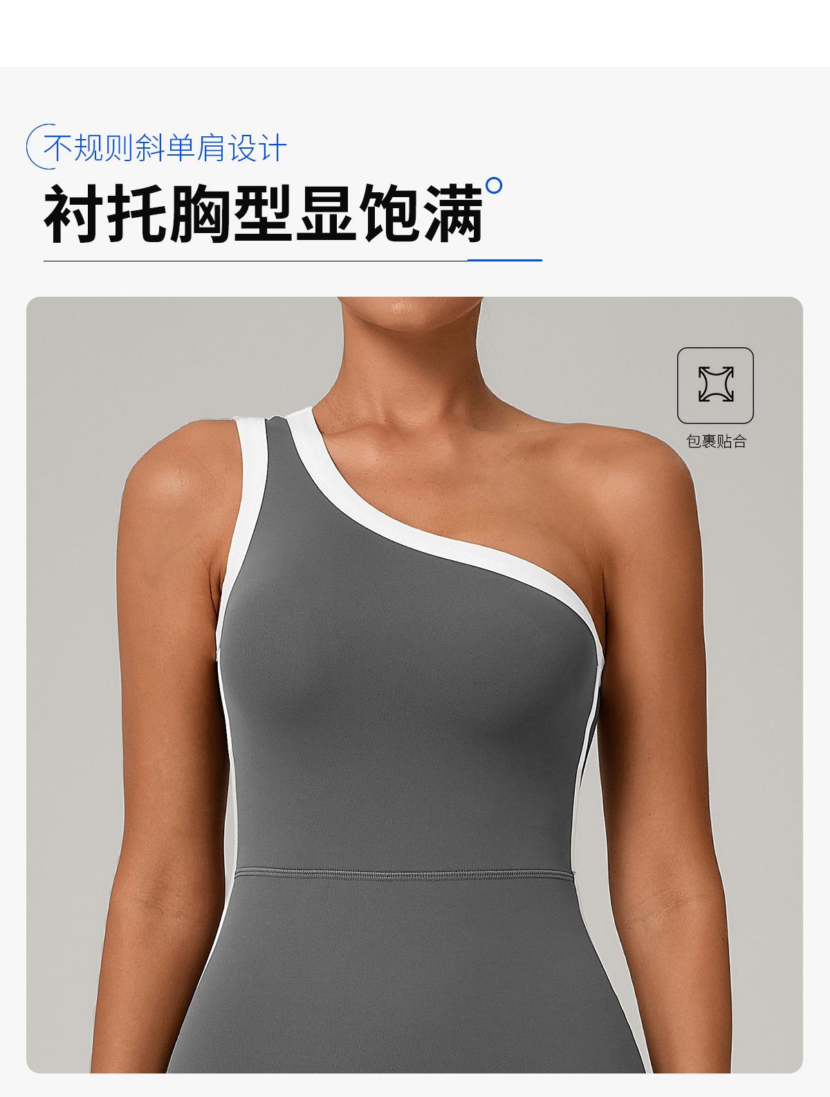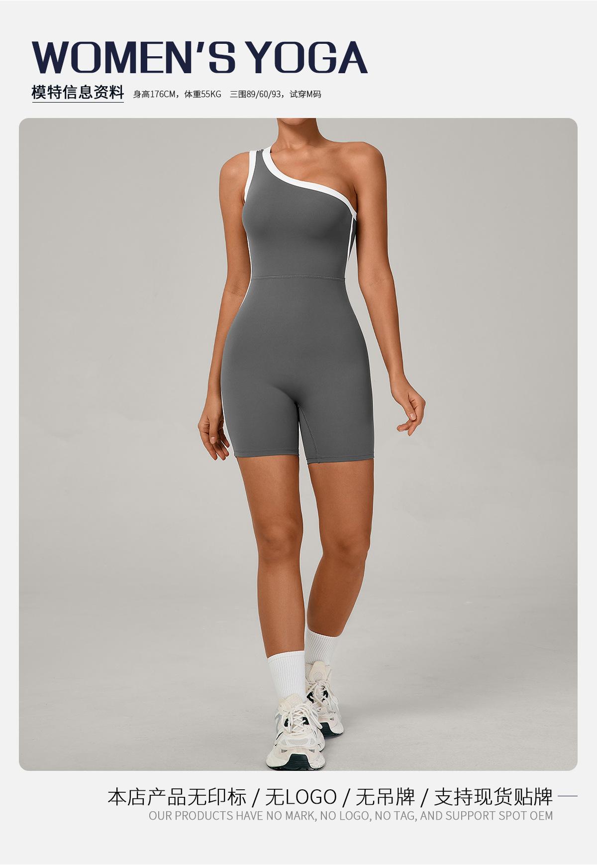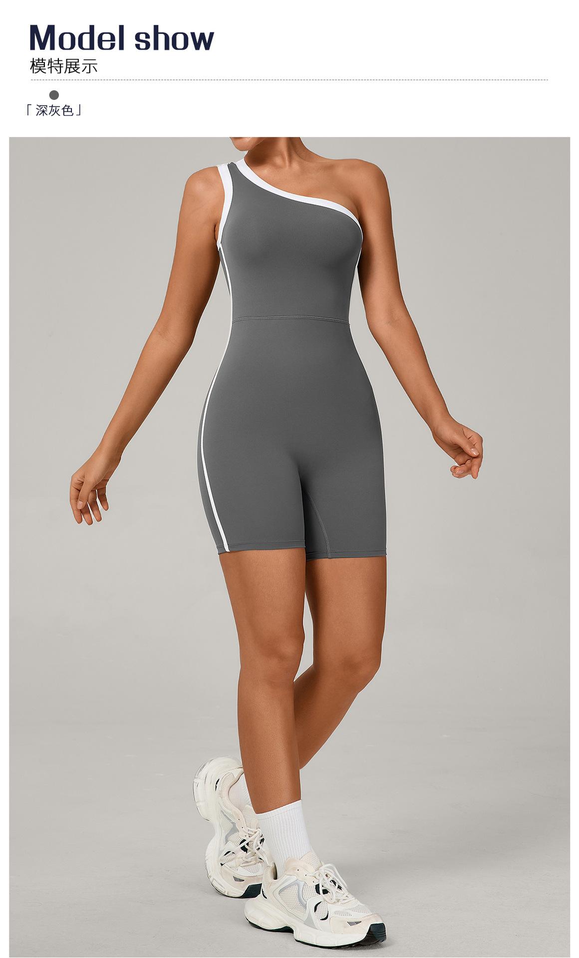 Europa y América Bloque de Color Asimétrico Un Hombro Espalda Hermosa Mono de Yoga para Mujer Deportivo Levantamiento de Cadera Mono Ajustado Traje de Fitness 1977