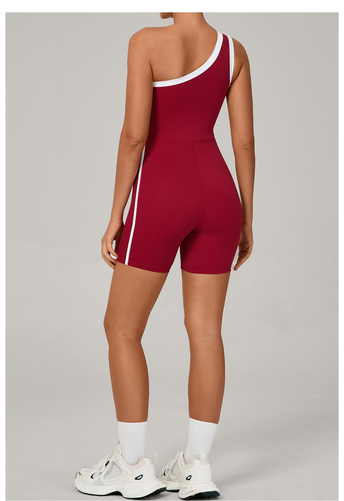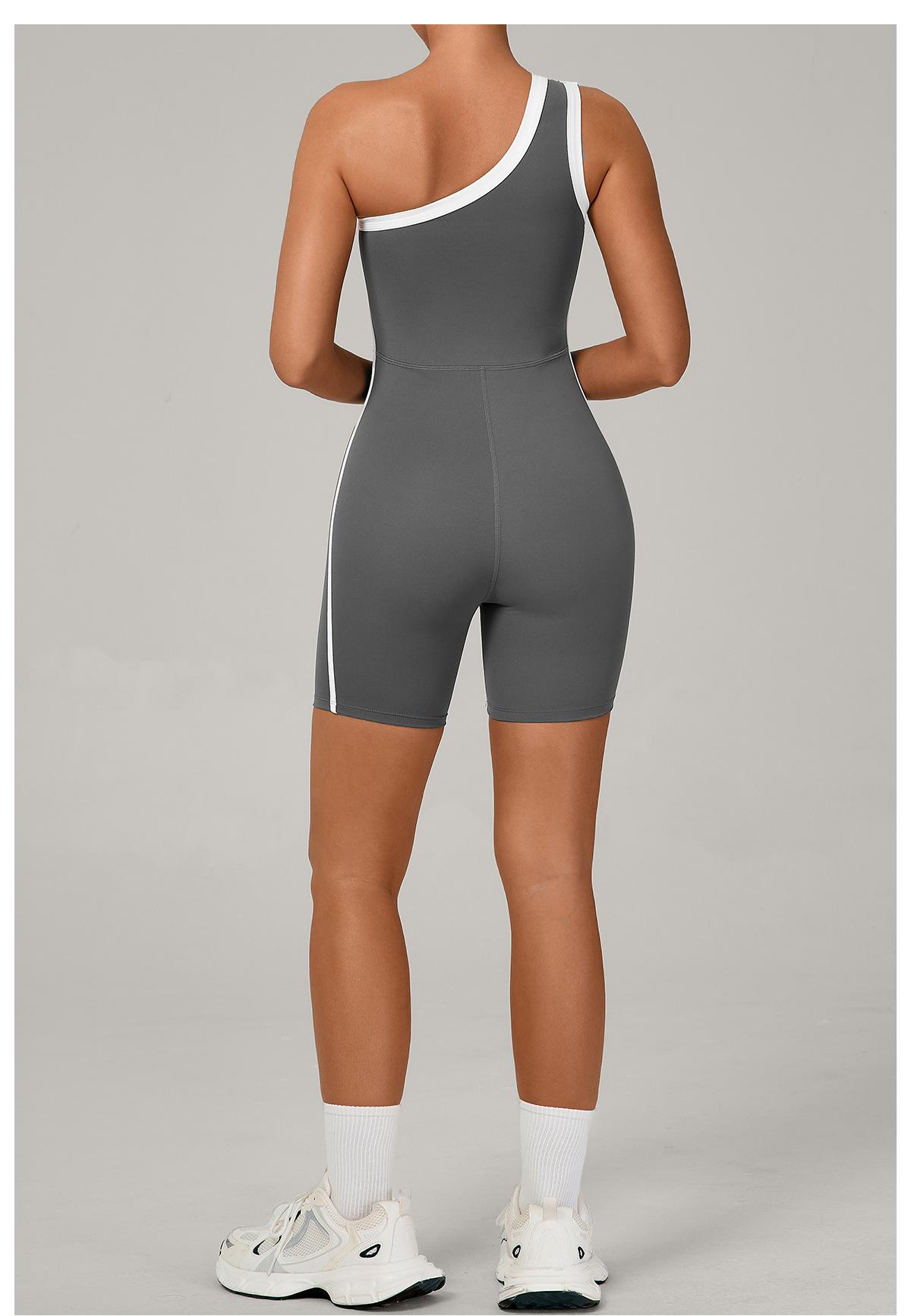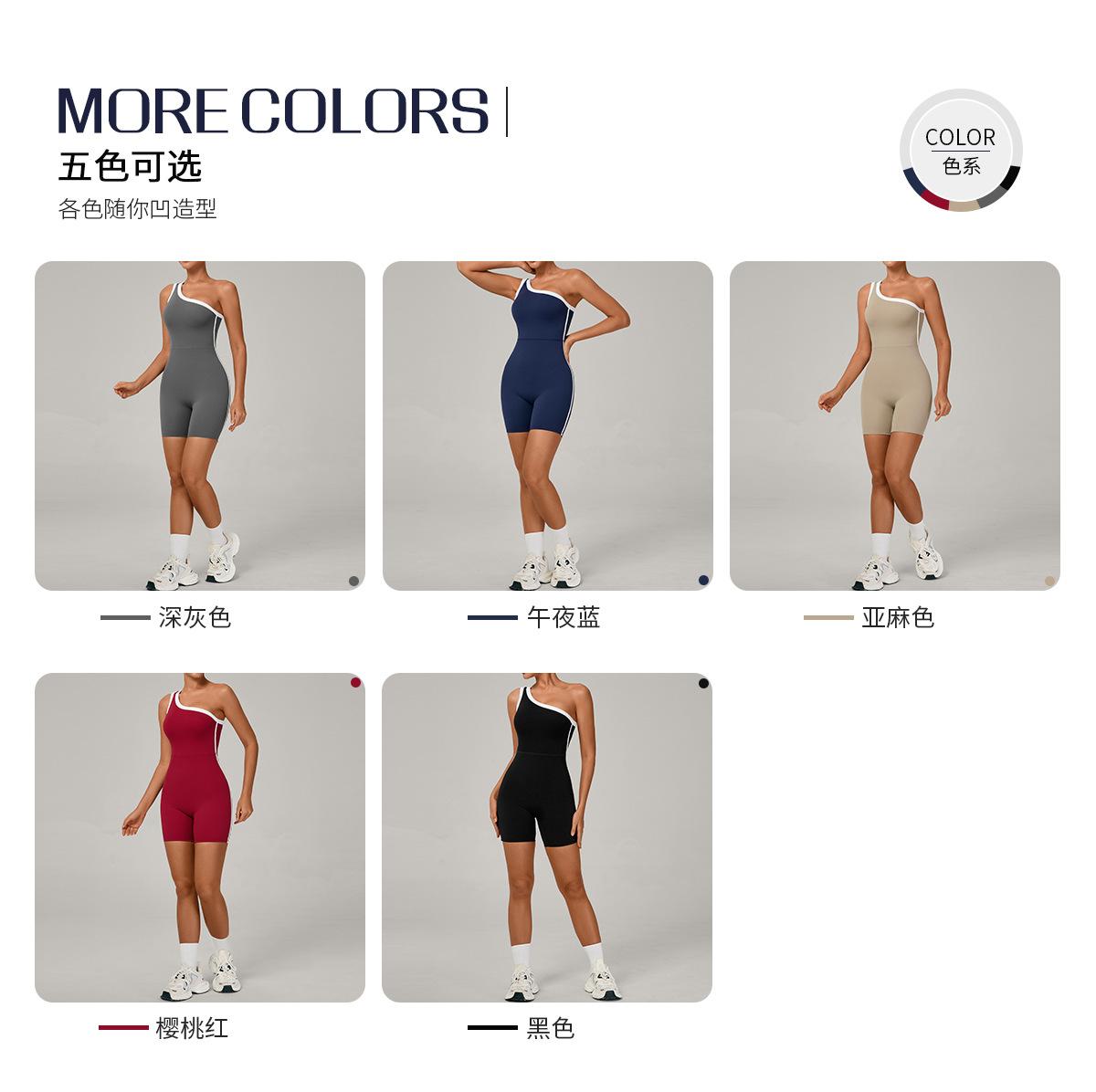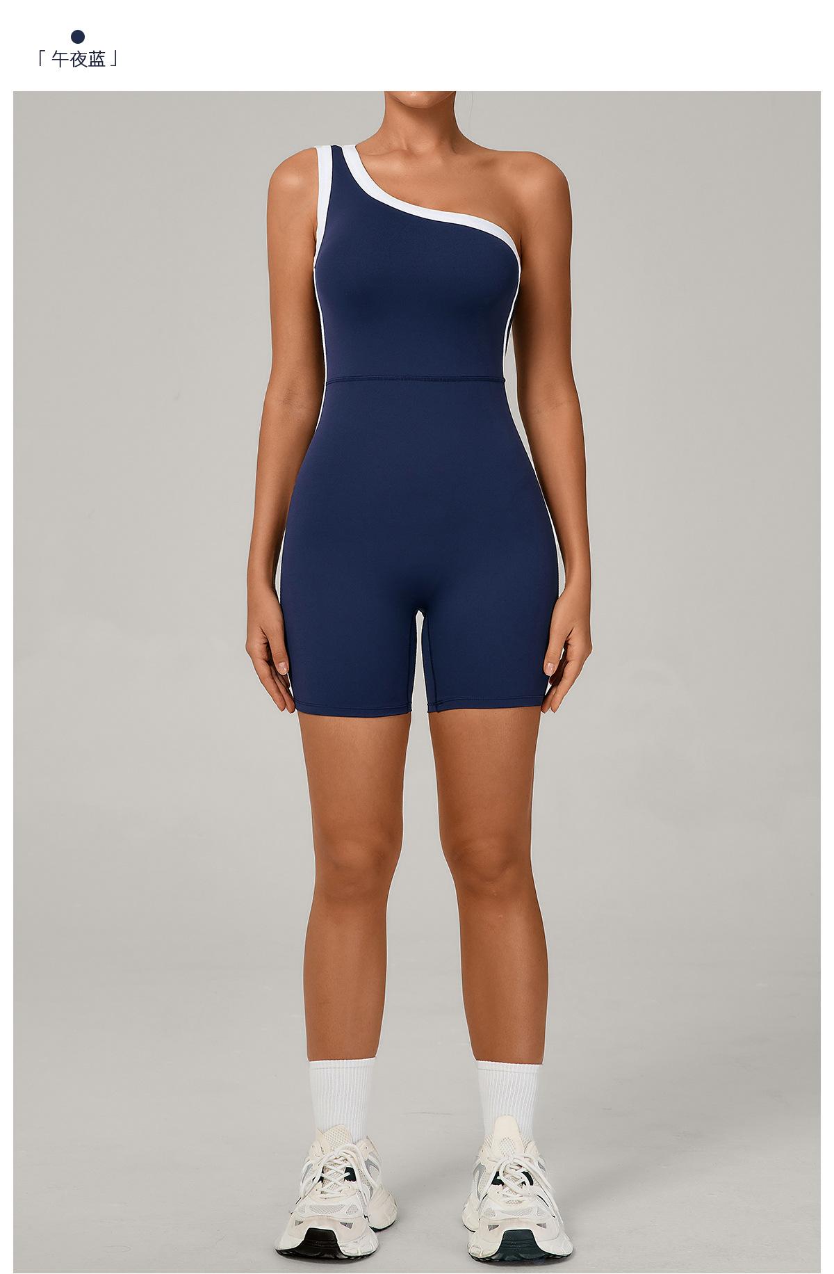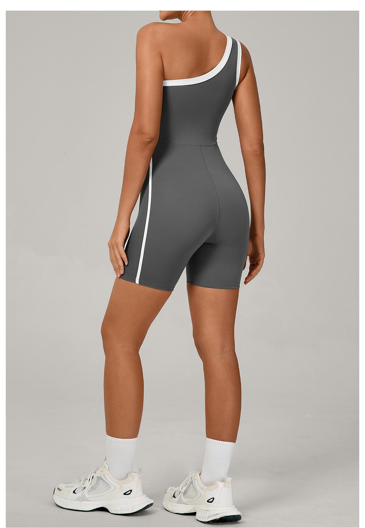 Europa y América Bloque de Color Asimétrico Un Hombro Espalda Hermosa Mono de Yoga para Mujer Deportivo Levantamiento de Cadera Mono Ajustado Traje de Fitness 1977