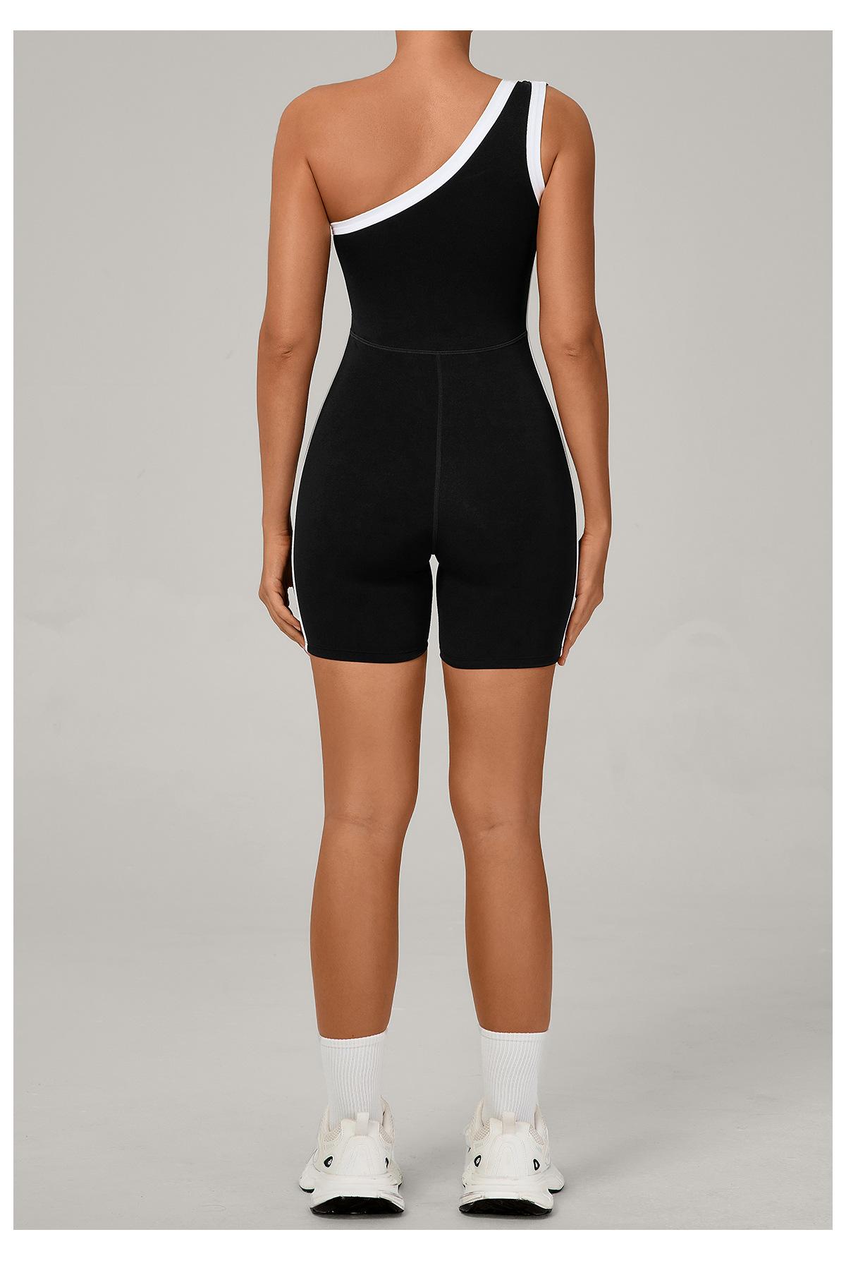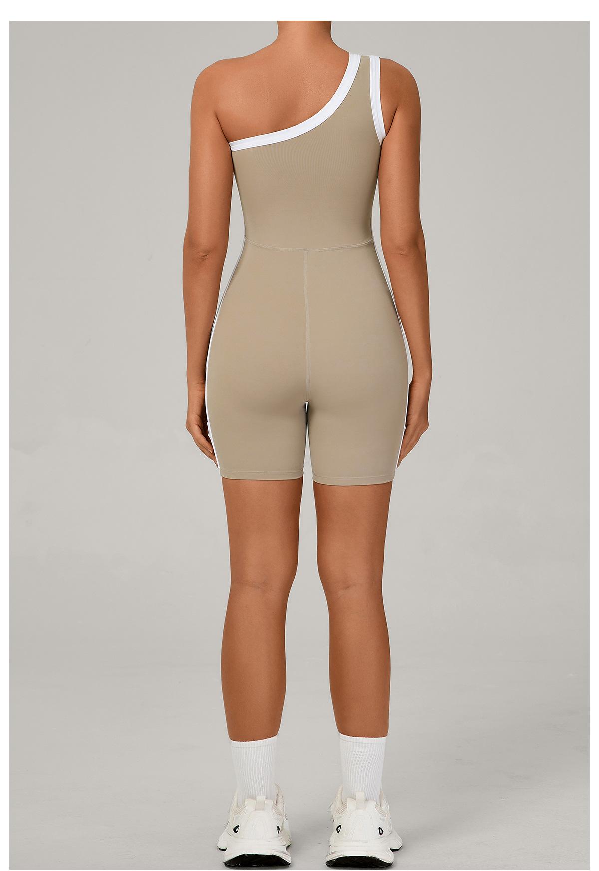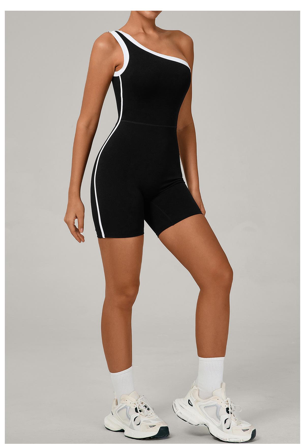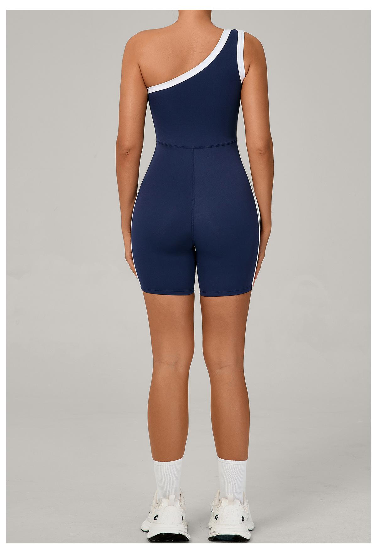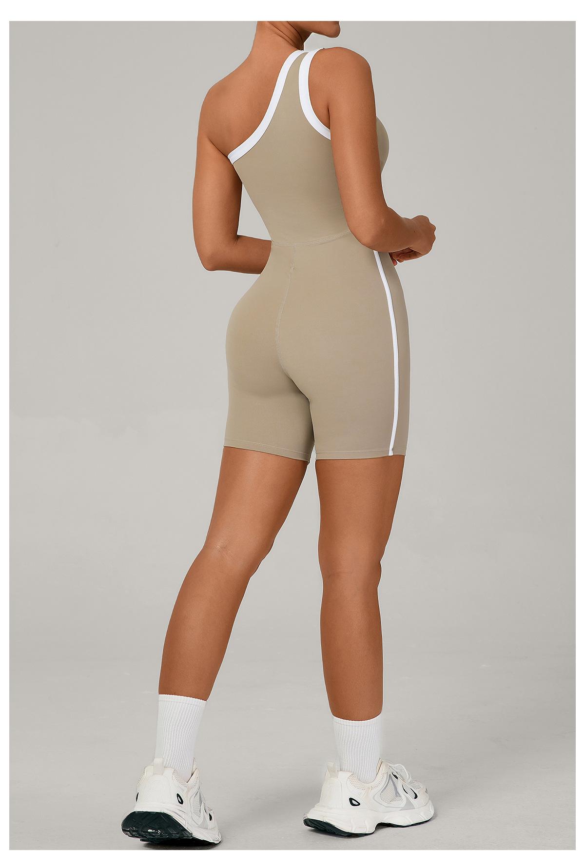 Europa y América Bloque de Color Asimétrico Un Hombro Espalda Hermosa Mono de Yoga para Mujer Deportivo Levantamiento de Cadera Mono Ajustado Traje de Fitness 1977