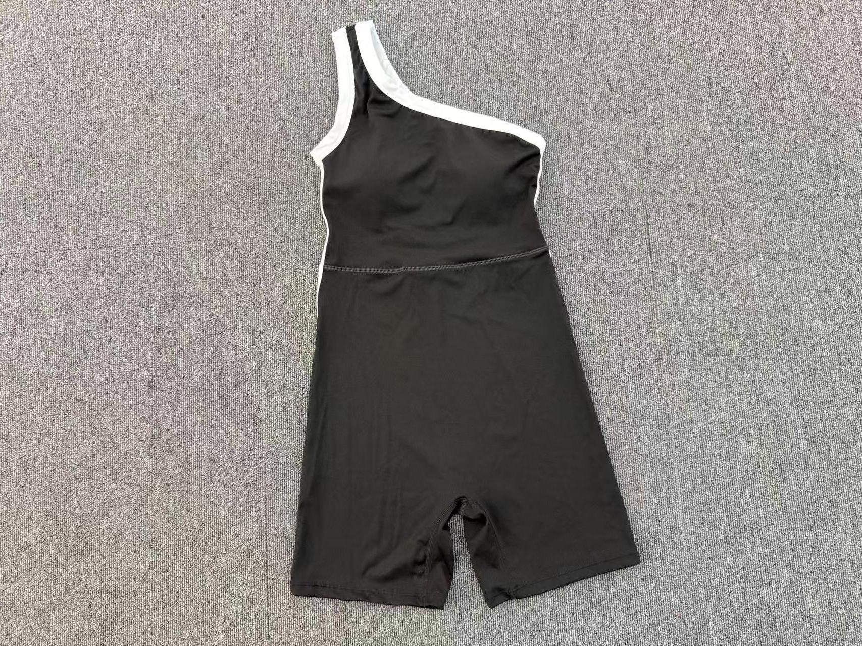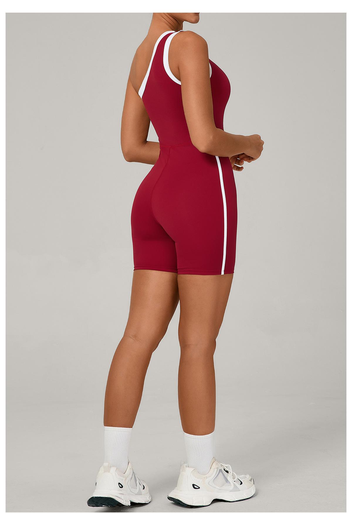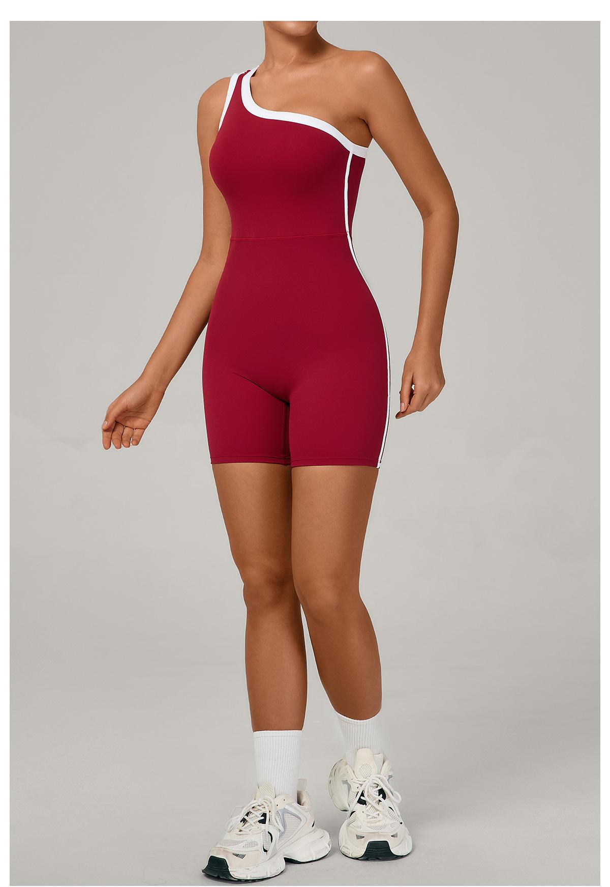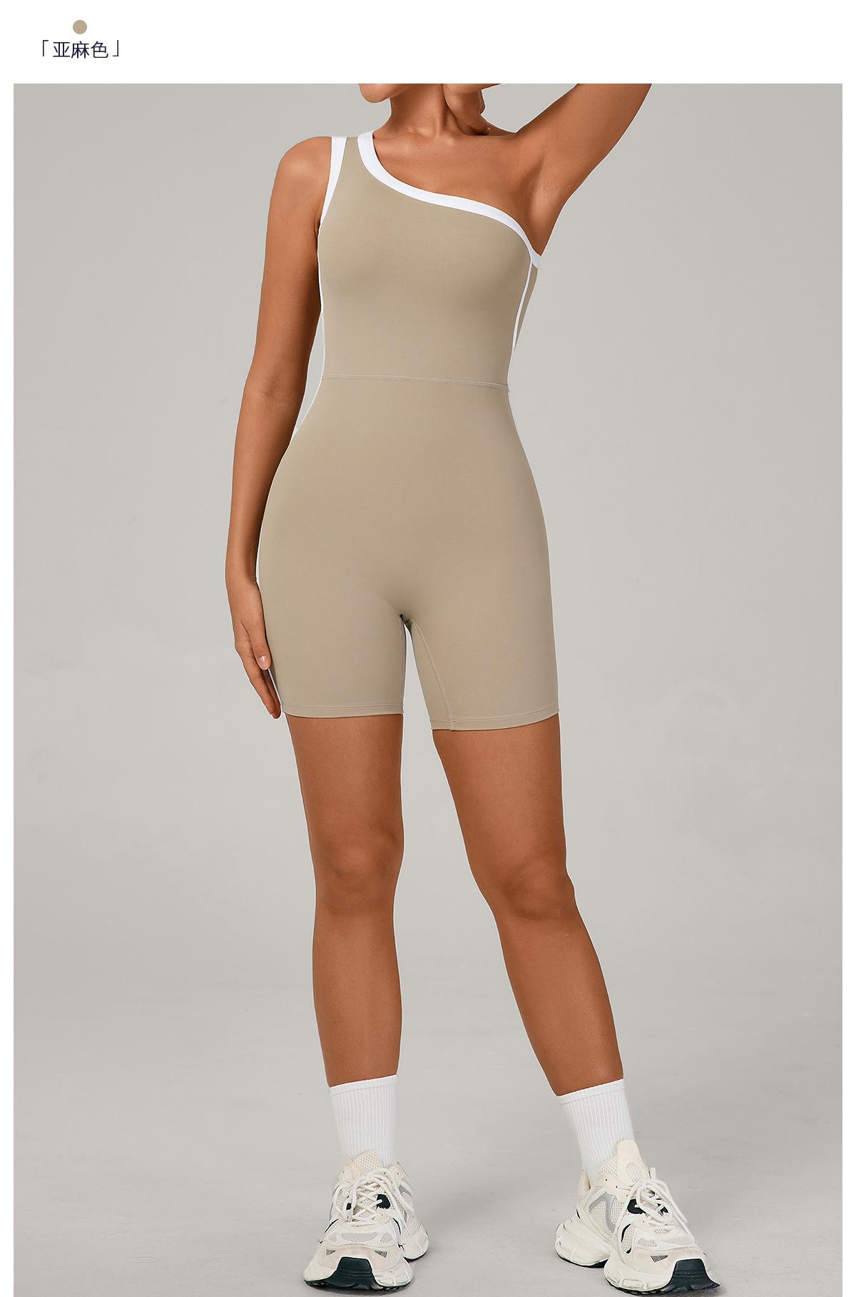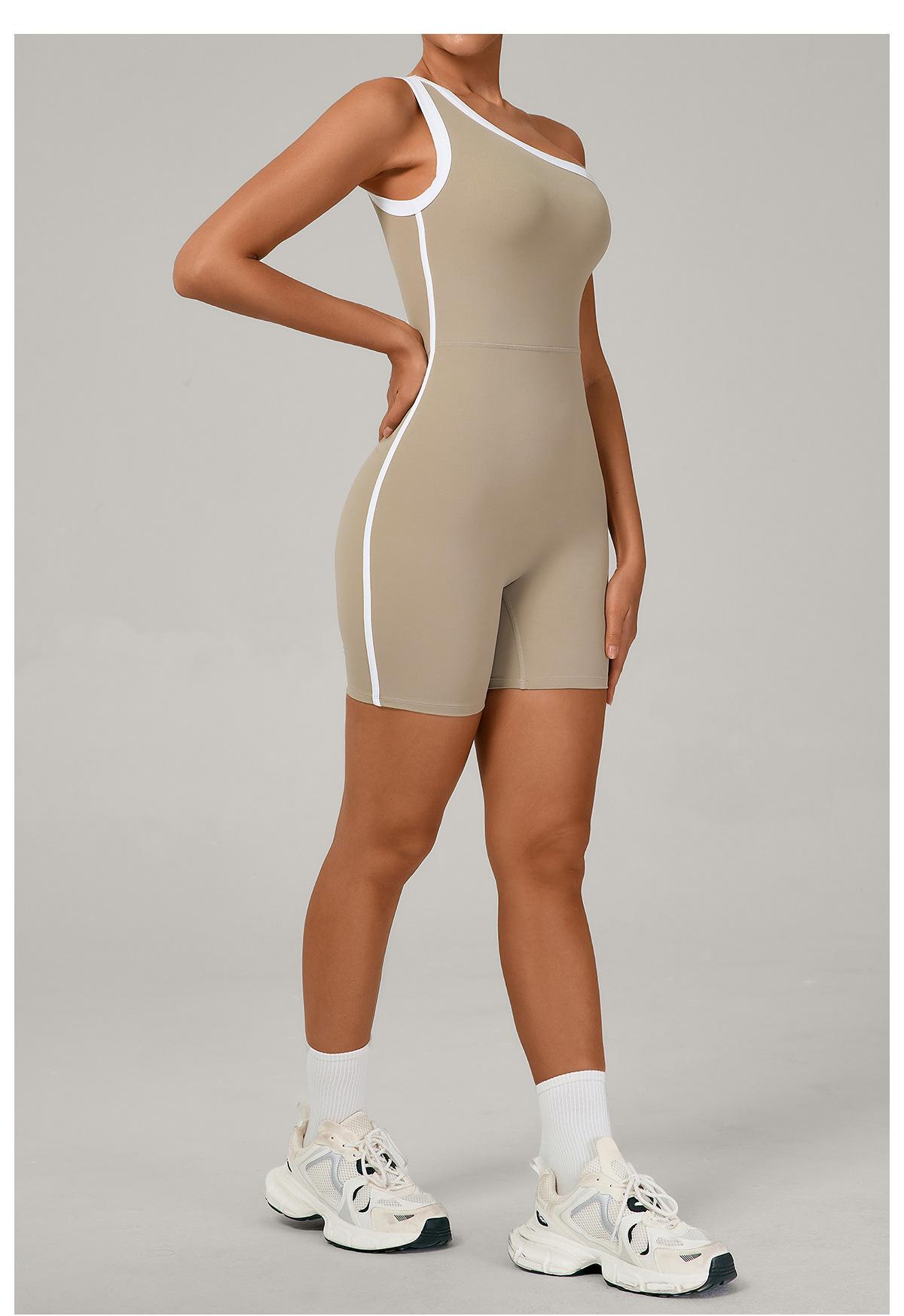 Europa y América Bloque de Color Asimétrico Un Hombro Espalda Hermosa Mono de Yoga para Mujer Deportivo Levantamiento de Cadera Mono Ajustado Traje de Fitness 1977