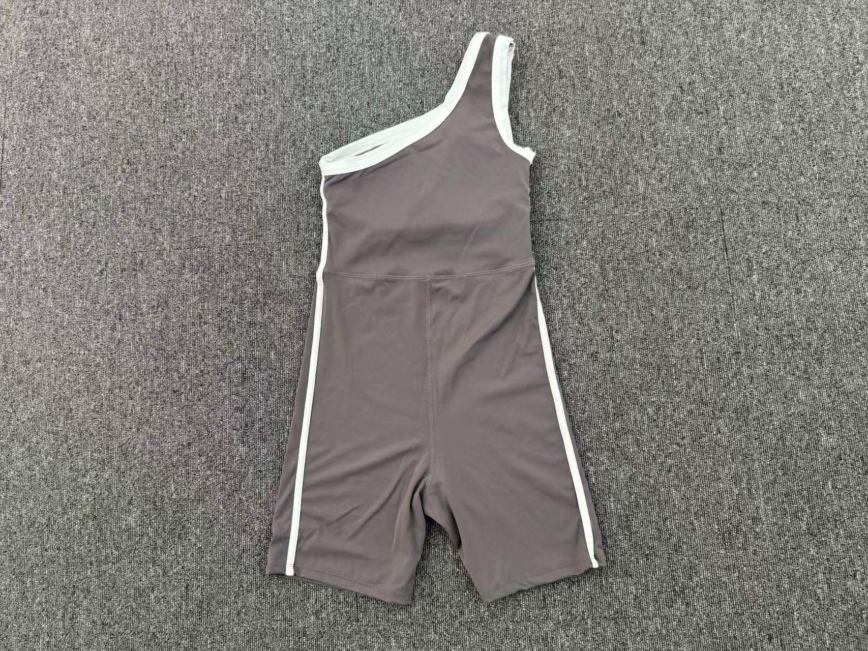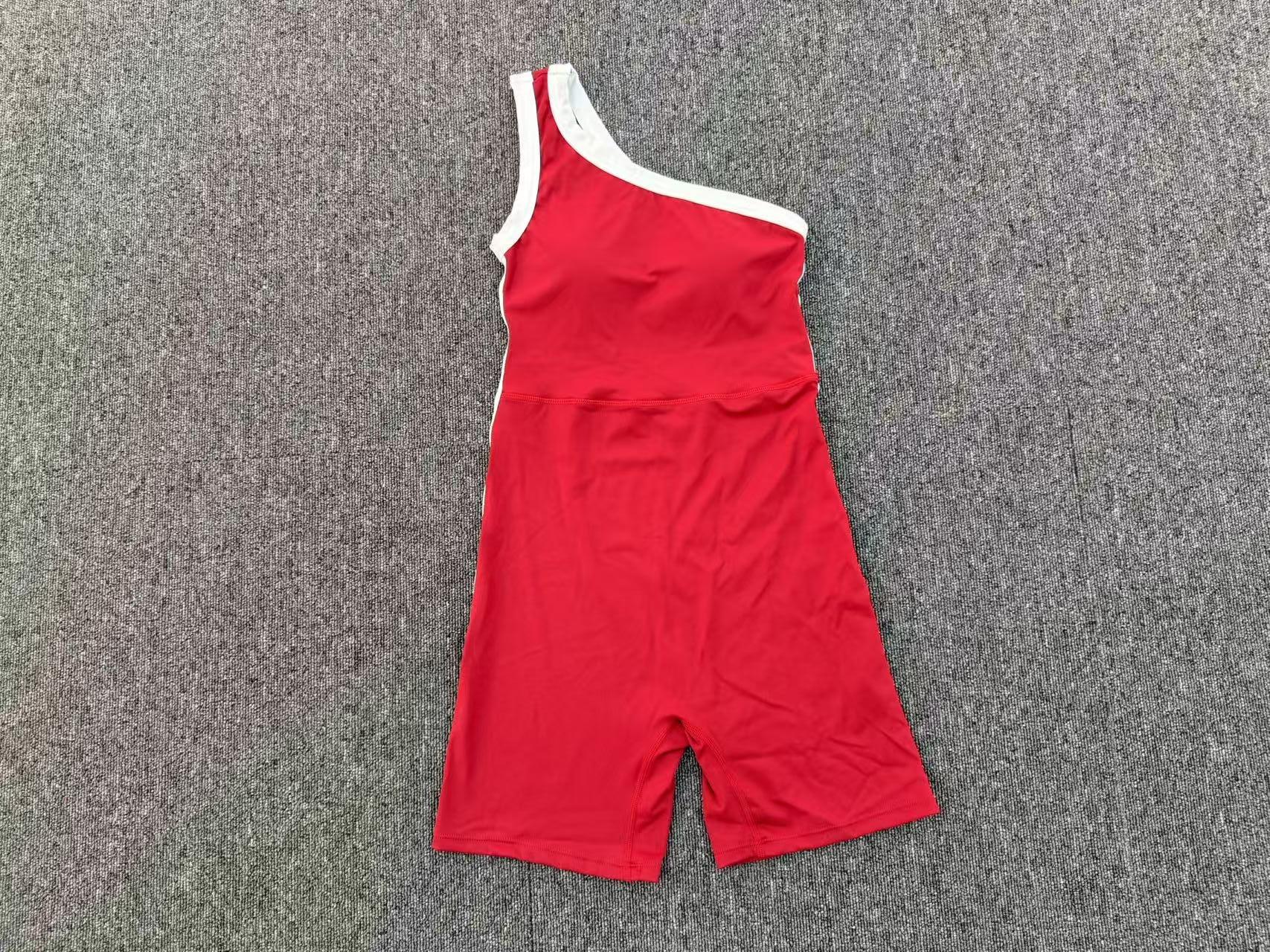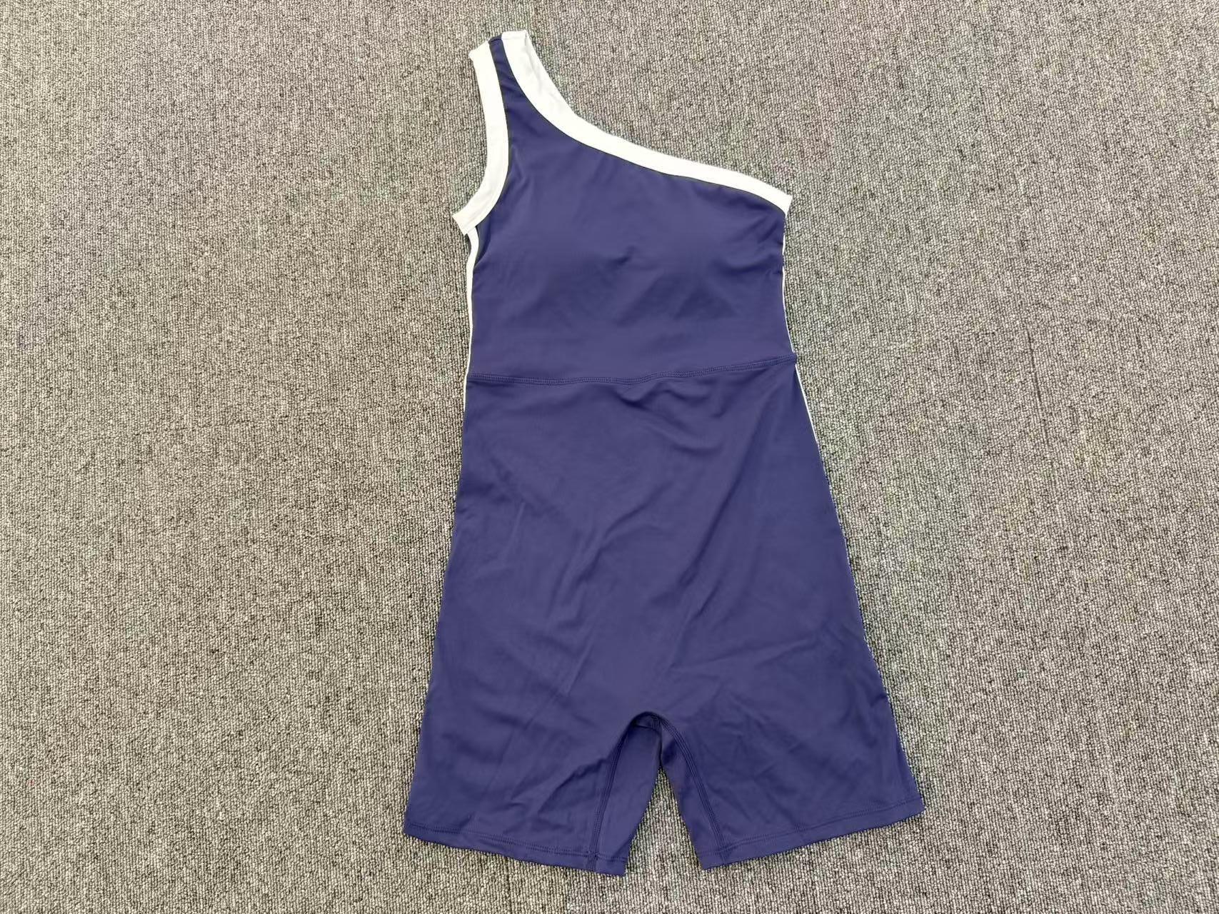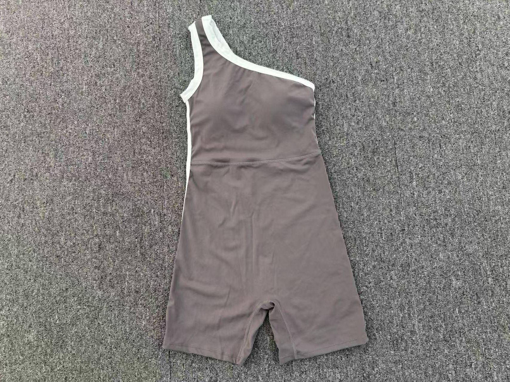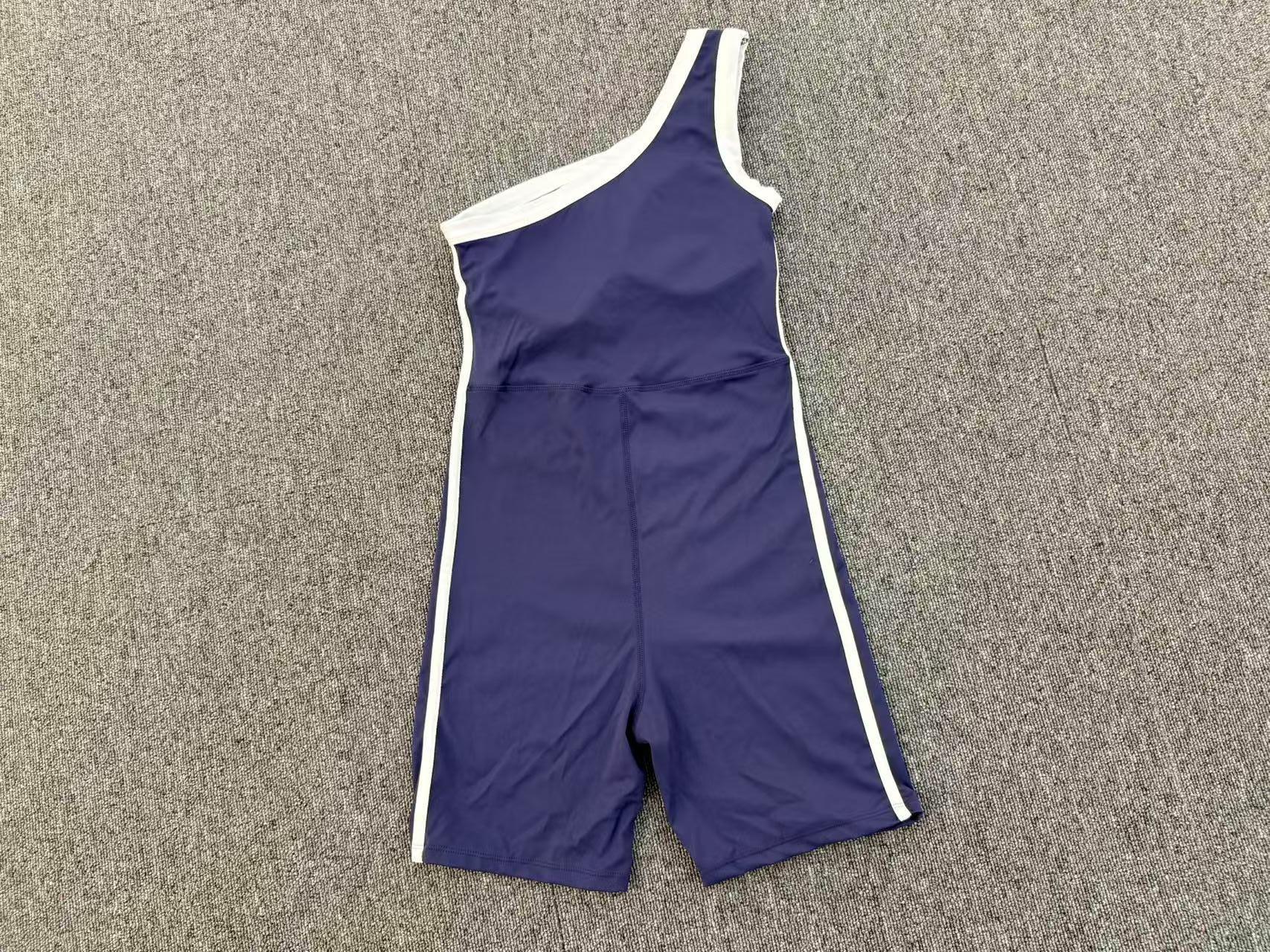 Europa y América Bloque de Color Asimétrico Un Hombro Espalda Hermosa Mono de Yoga para Mujer Deportivo Levantamiento de Cadera Mono Ajustado Traje de Fitness 1977