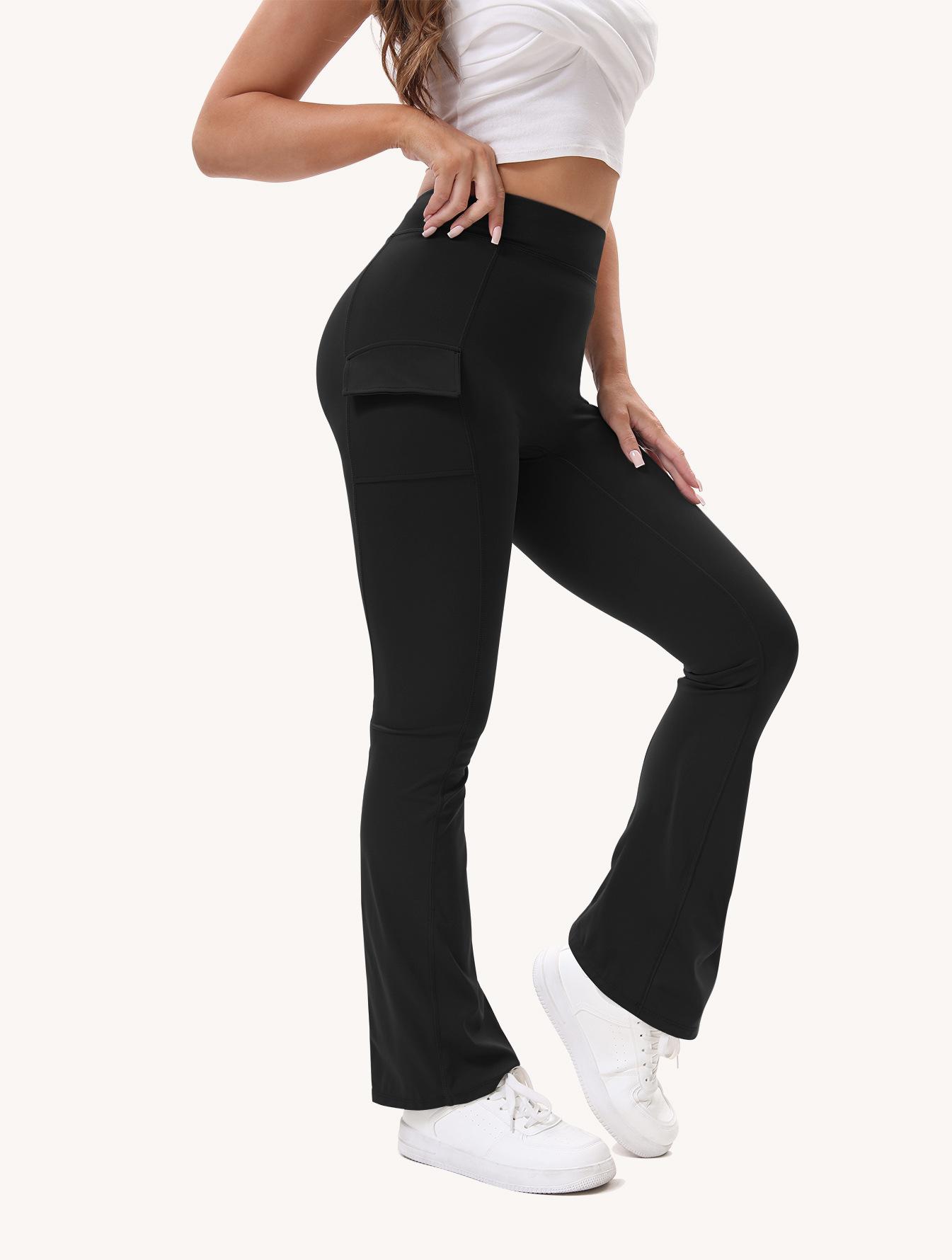 Mallas Nude Europeas y Americanas, Levanta Glúteos, Pantalones de Yoga de Cintura Alta, Pantalones de Trabajo con Bolsillo de Solapa, Pantalones Deportivos de Fitness para Correr Ligeramente Acampanados, Aspecto Adelgazante