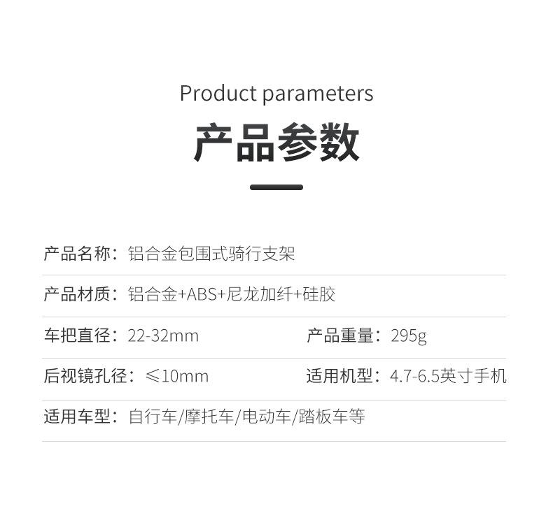 Aluminum alloy, ABS, Nylon with fiber, Silicone