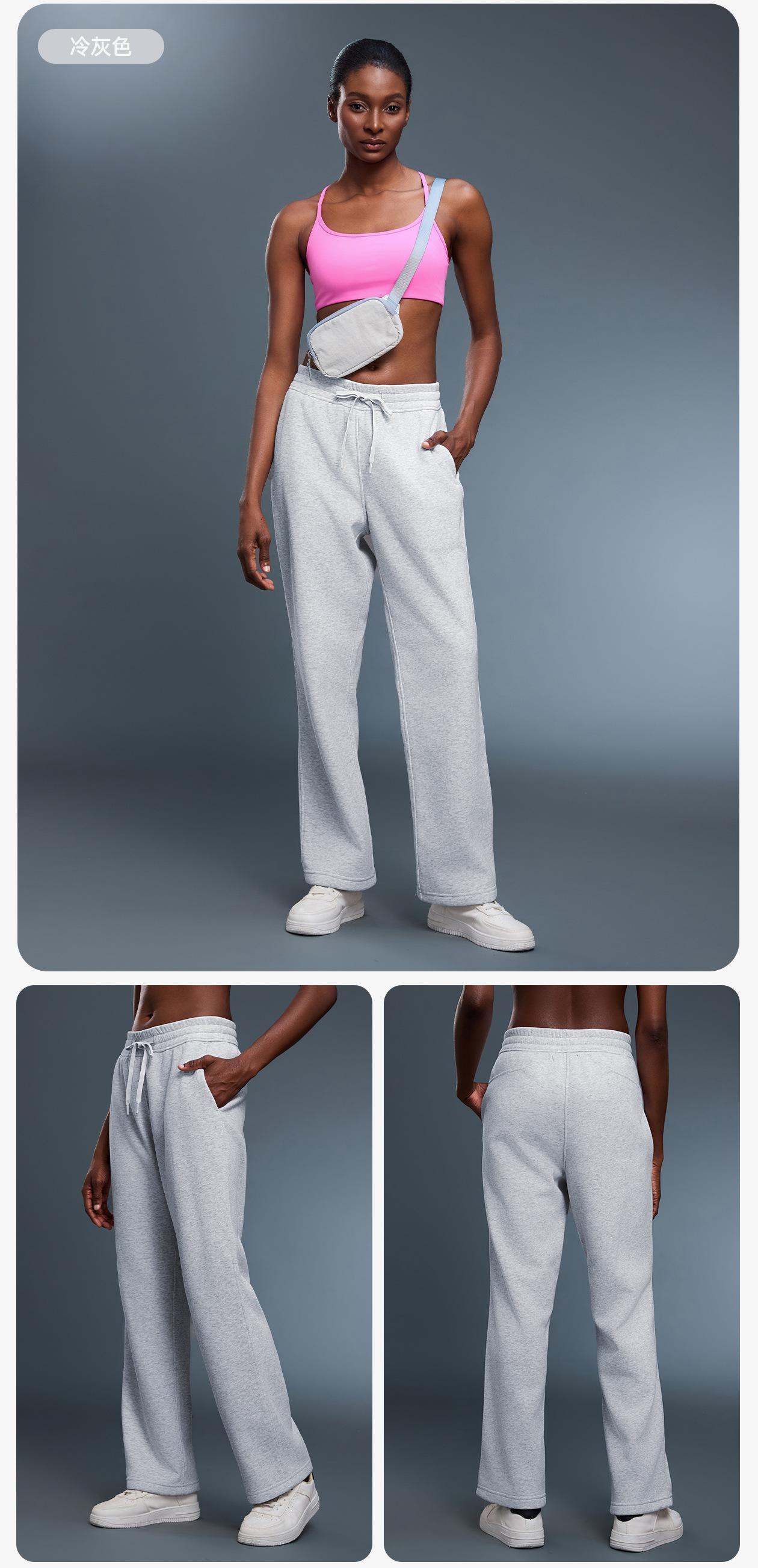 Pantalones casuales holgados de pierna recta para otoño e invierno para mujer, pantalones deportivos cálidos de felpa, drapeados que cubren la carne, adelgazantes, pantalones largos deportivos D25135
