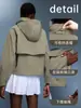 Chaqueta Deportiva Casual Ligera Impermeable para Mujer Corta Empacable con Capucha Holgada Transpirable Ropa de Trabajo Cortavientos D25125