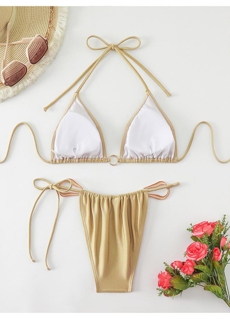 Bikini Europeo y Americano 2025 nuevo traje de baño dividido para mujer sexy con cordones entrecruzados traje de baño para vacaciones en la playa transfronterizo bikini