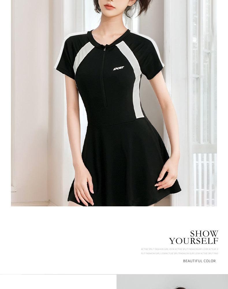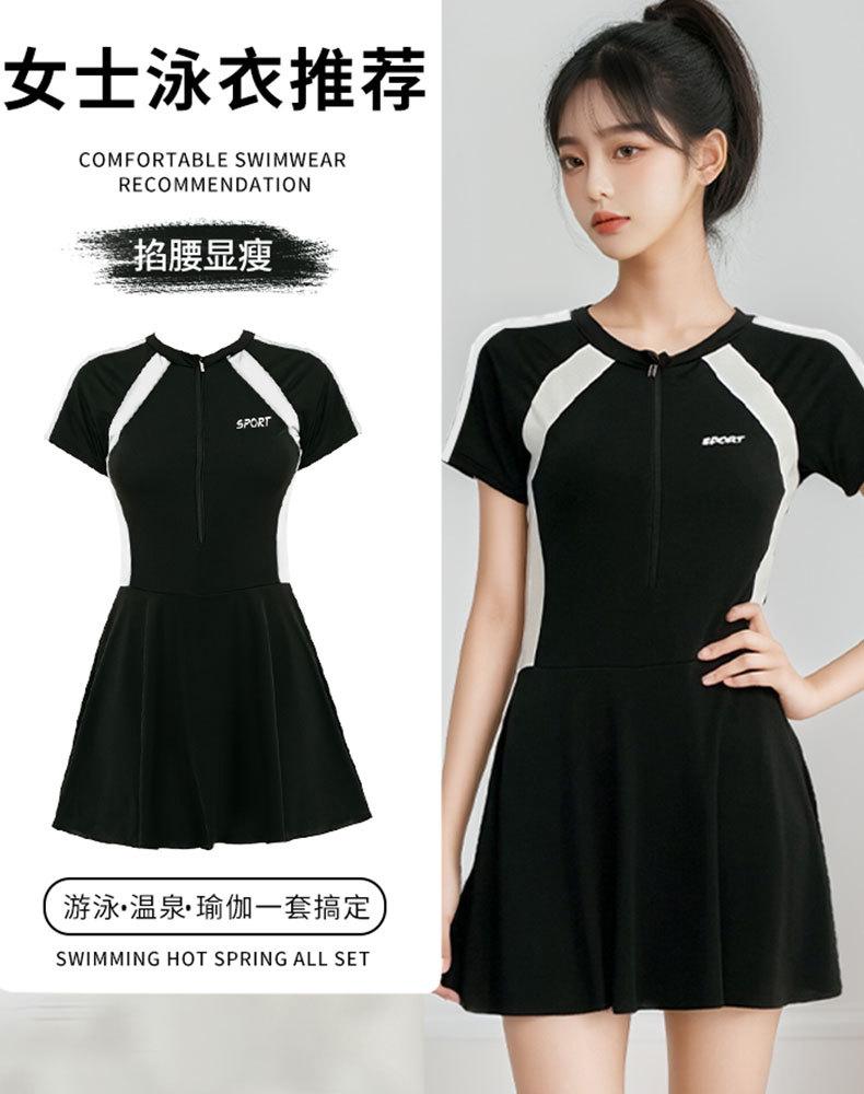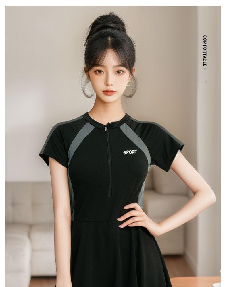Traje de Baño de Manga Corta Nuevo 2025 para Mujer Traje de Baño de Una Pieza de Gama Alta Secado Rápido Conservador Profesional Traje de Baño para Mujer al Por Mayor
