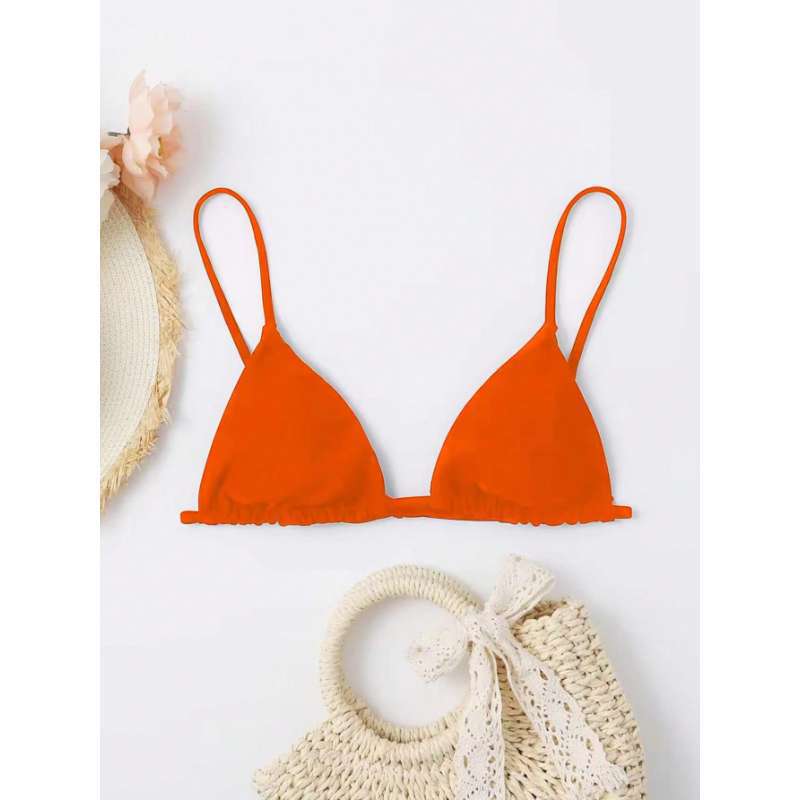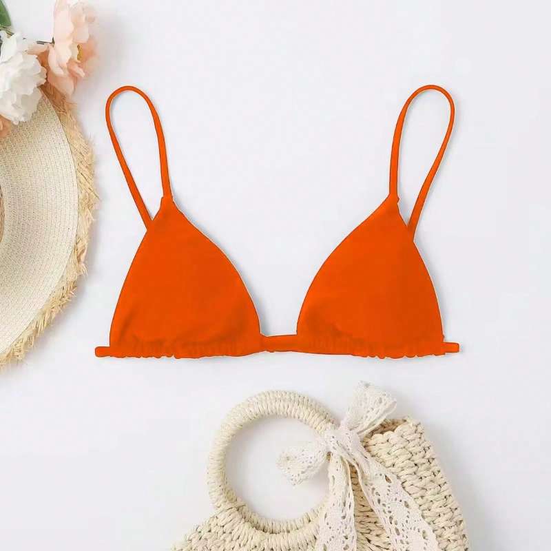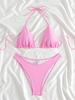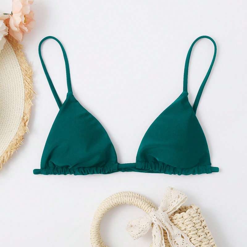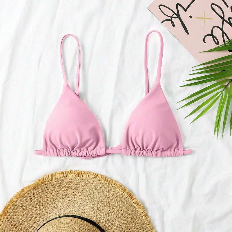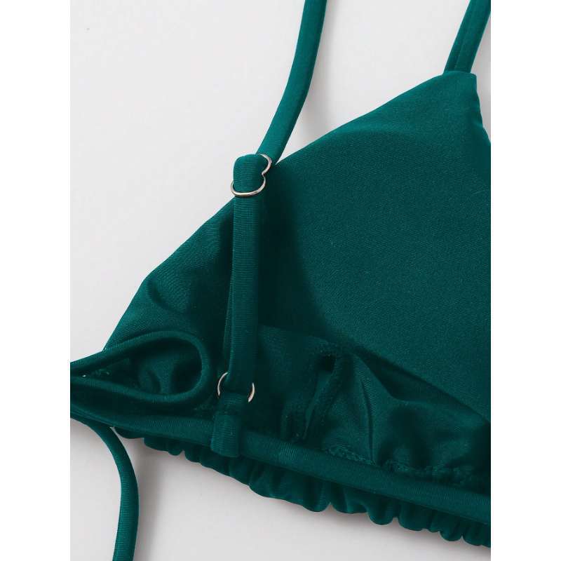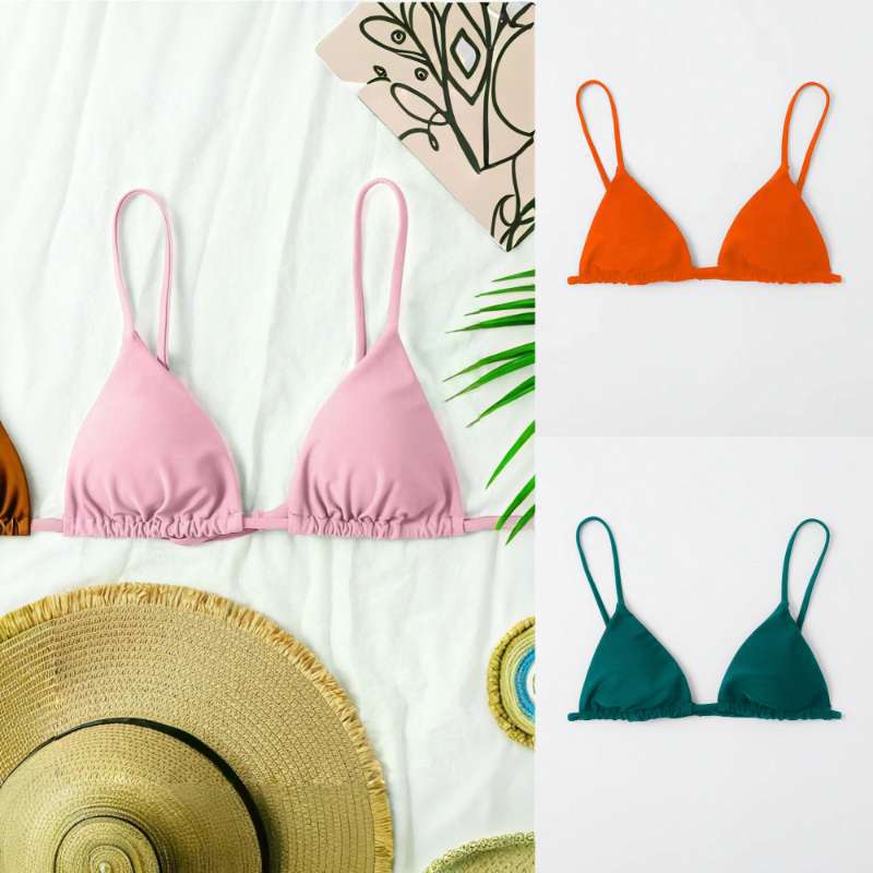 Traje de Baño Europeo y Americano para Mujer Color Sólido Bikini Sexy Dividido Pecho Pequeño Recogido Espalda Descubierta Secado Rápido Transpirable Traje de Baño de Comercio Exterior