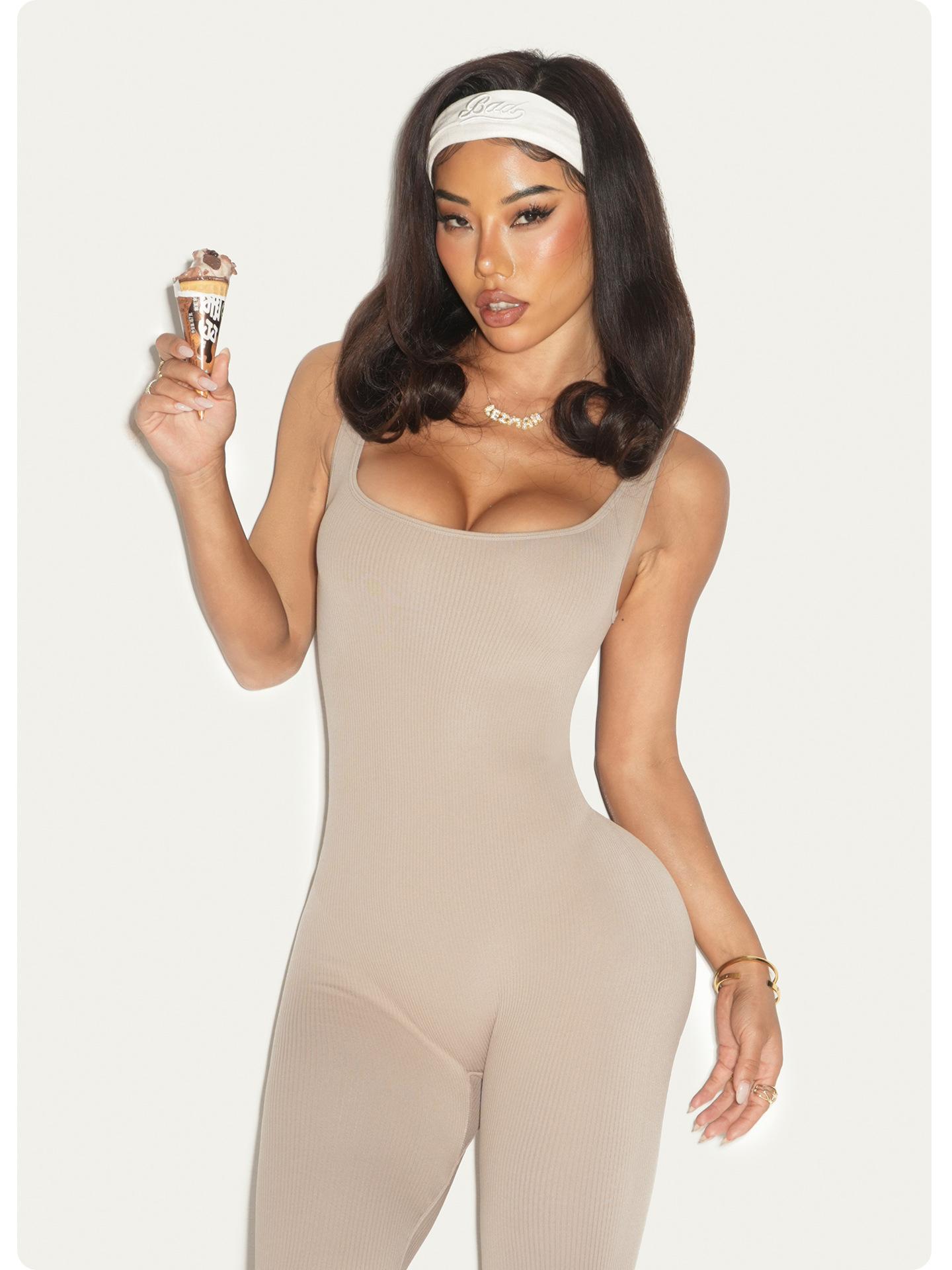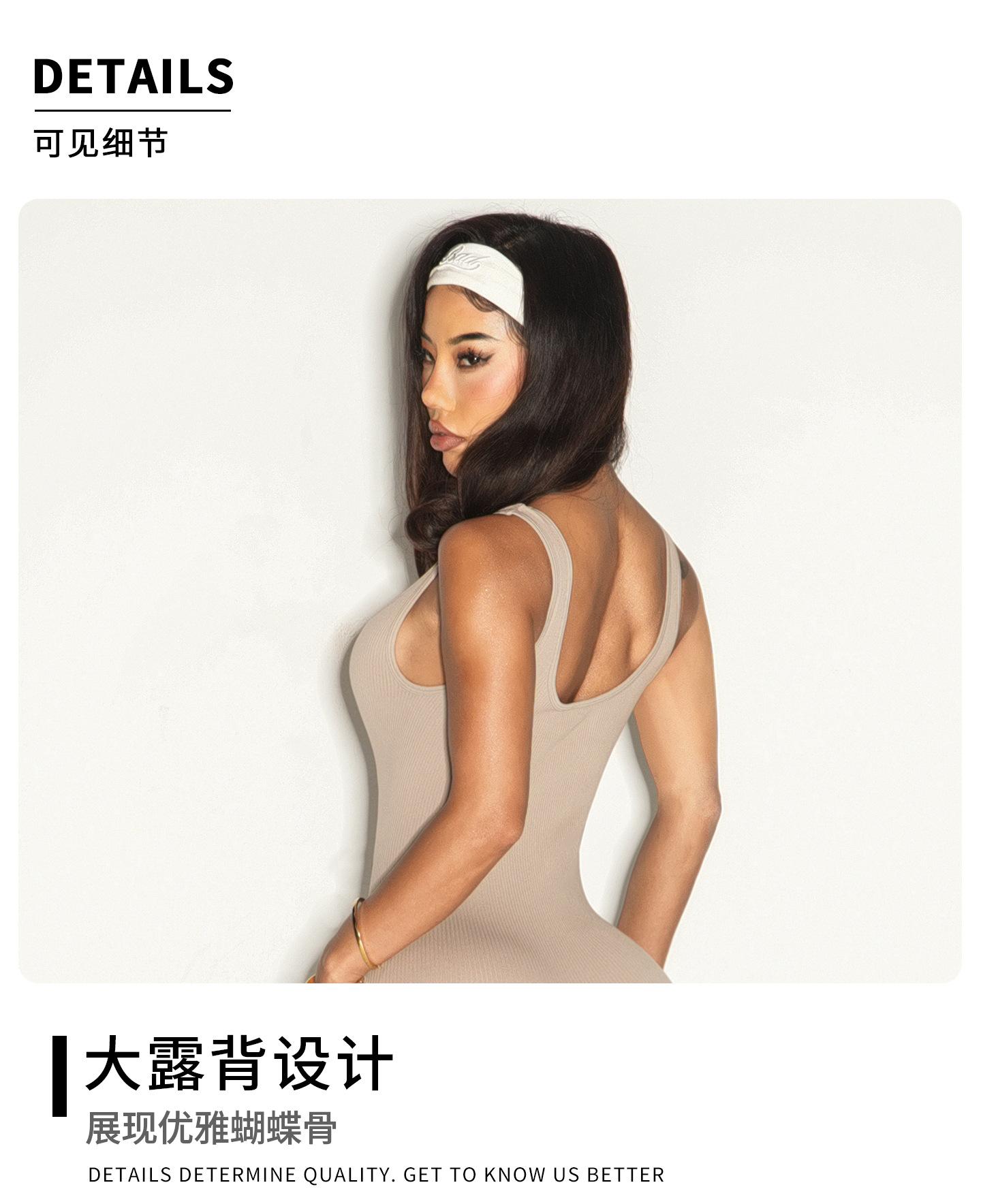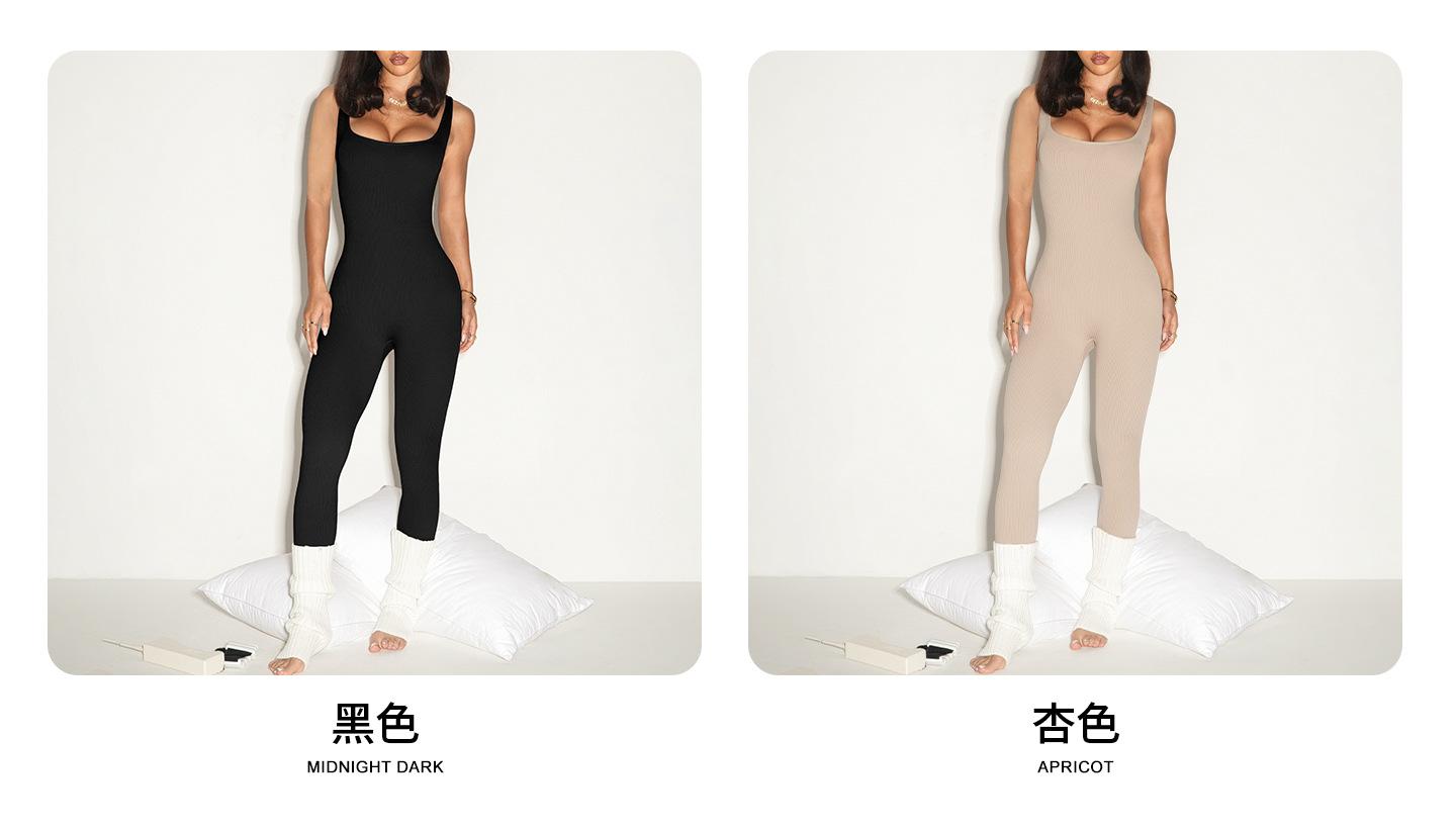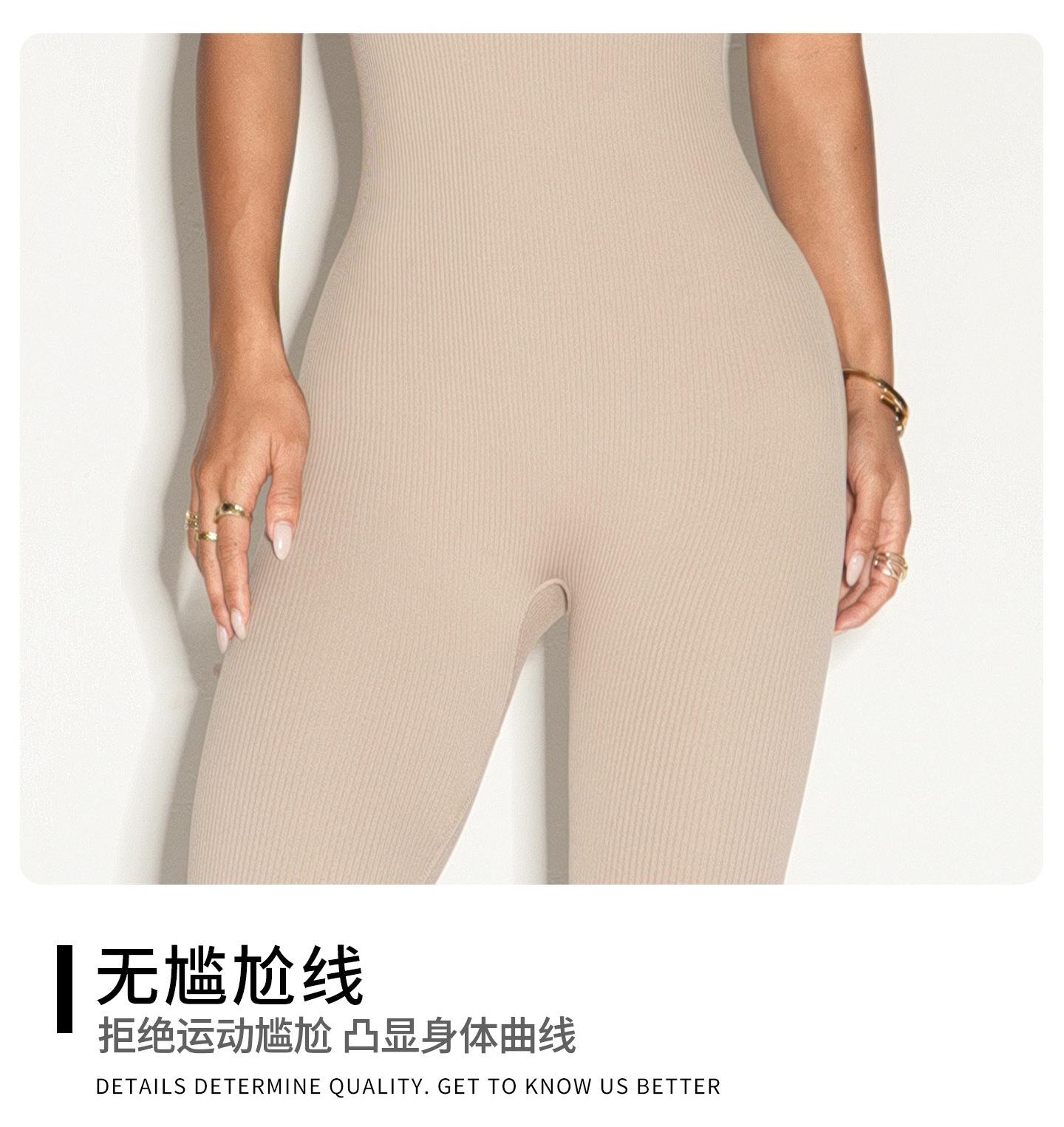 Traje de Yoga para Mujer sin Costuras de Alta Elasticidad con Canalé Europeo y Americano Transfronterizo, Adelgazante de Cintura, Levanta Glúteos, sin Mangas, Pantalones Largos, Body Deportivo de Fitness