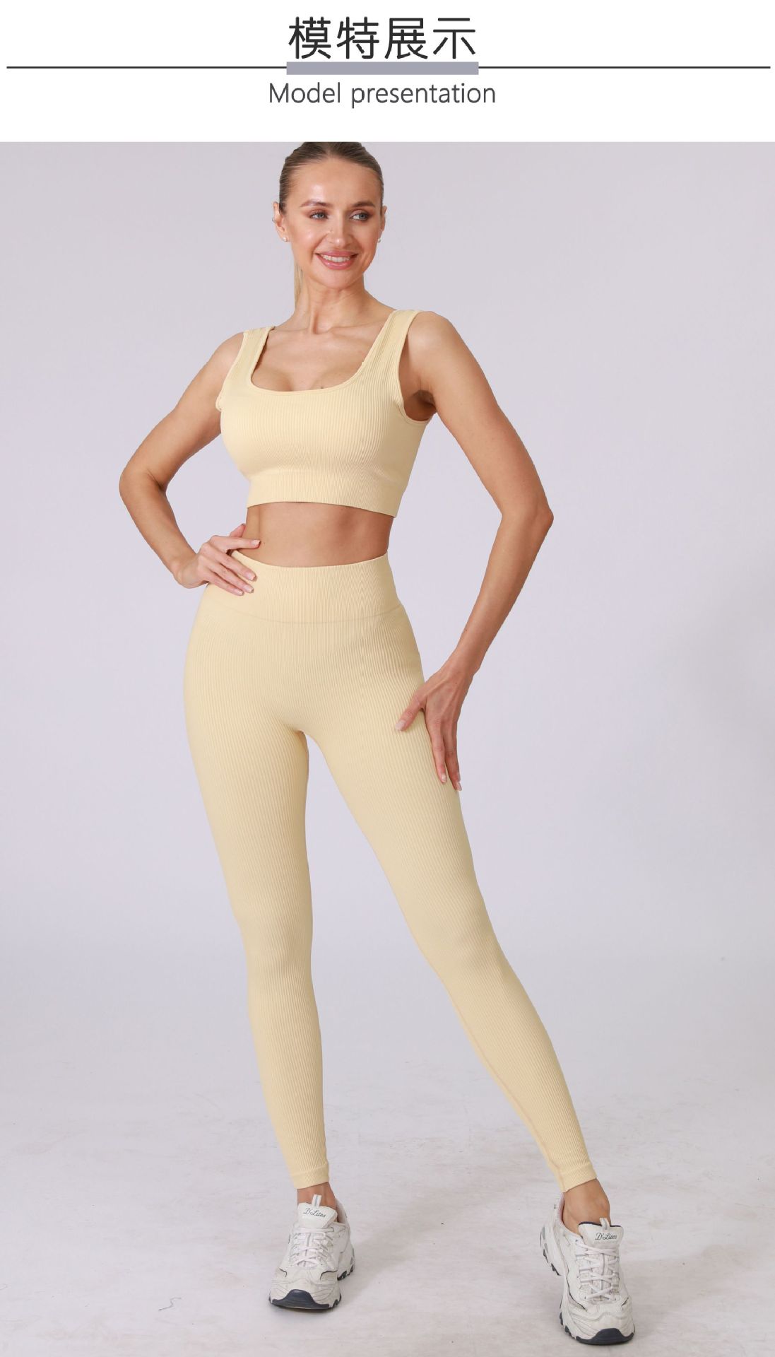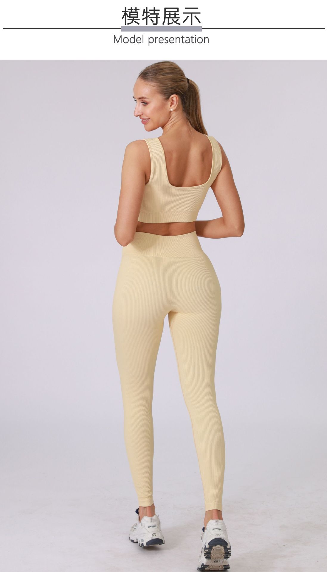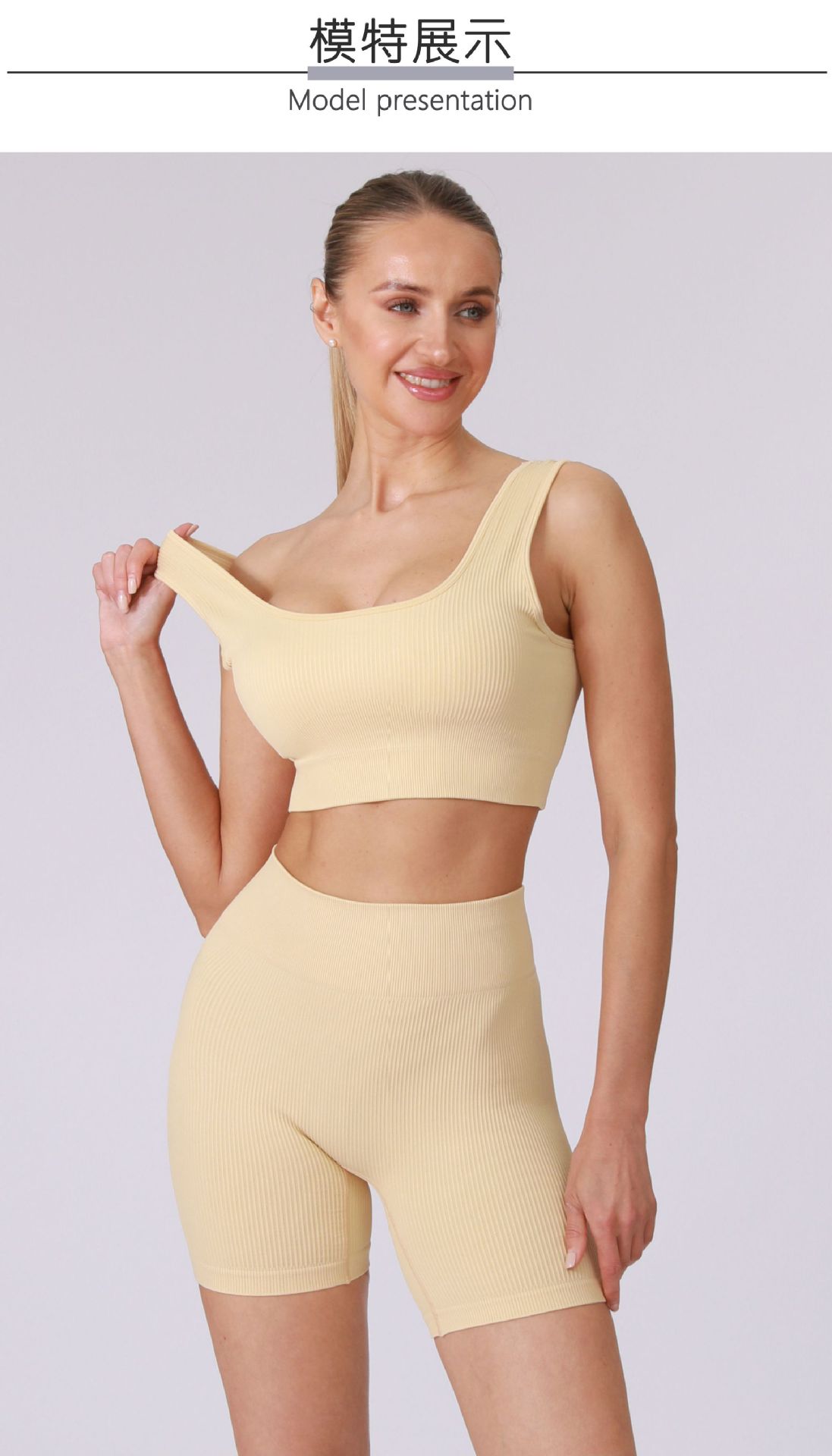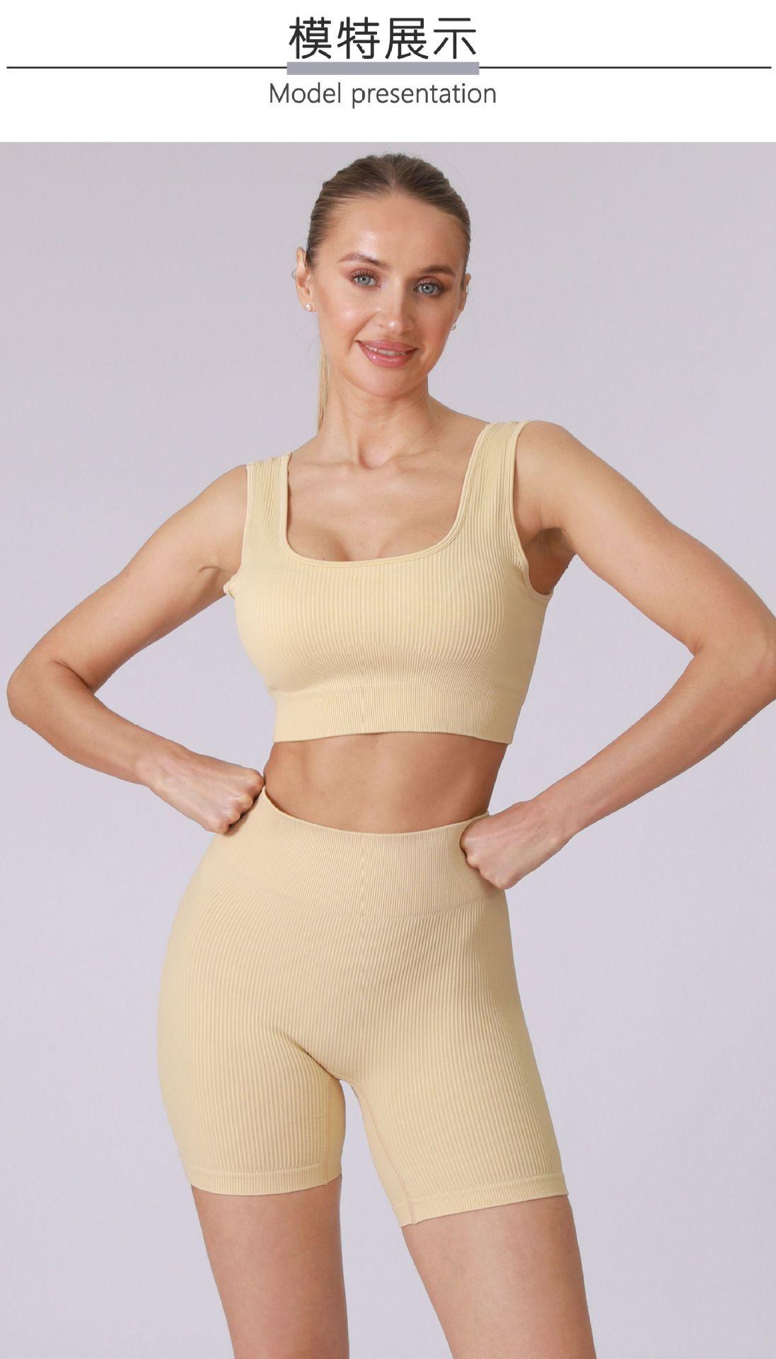 Nylon Verano Tejido Sin Costuras Alta Elasticidad Ropa Interior Deportiva U Cuello Cuadrado Espalda Hermosa Yoga Deportes Pantalones Largos Set de Fitness Mujer