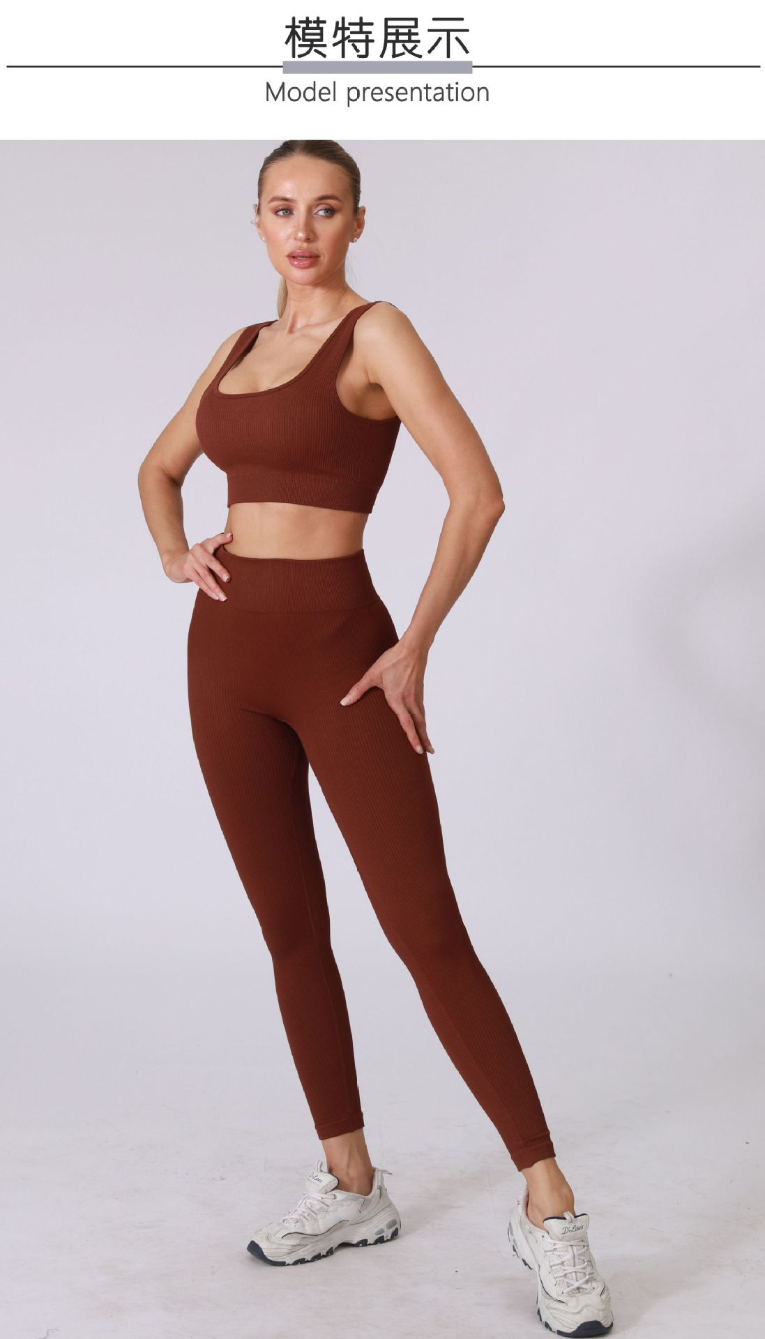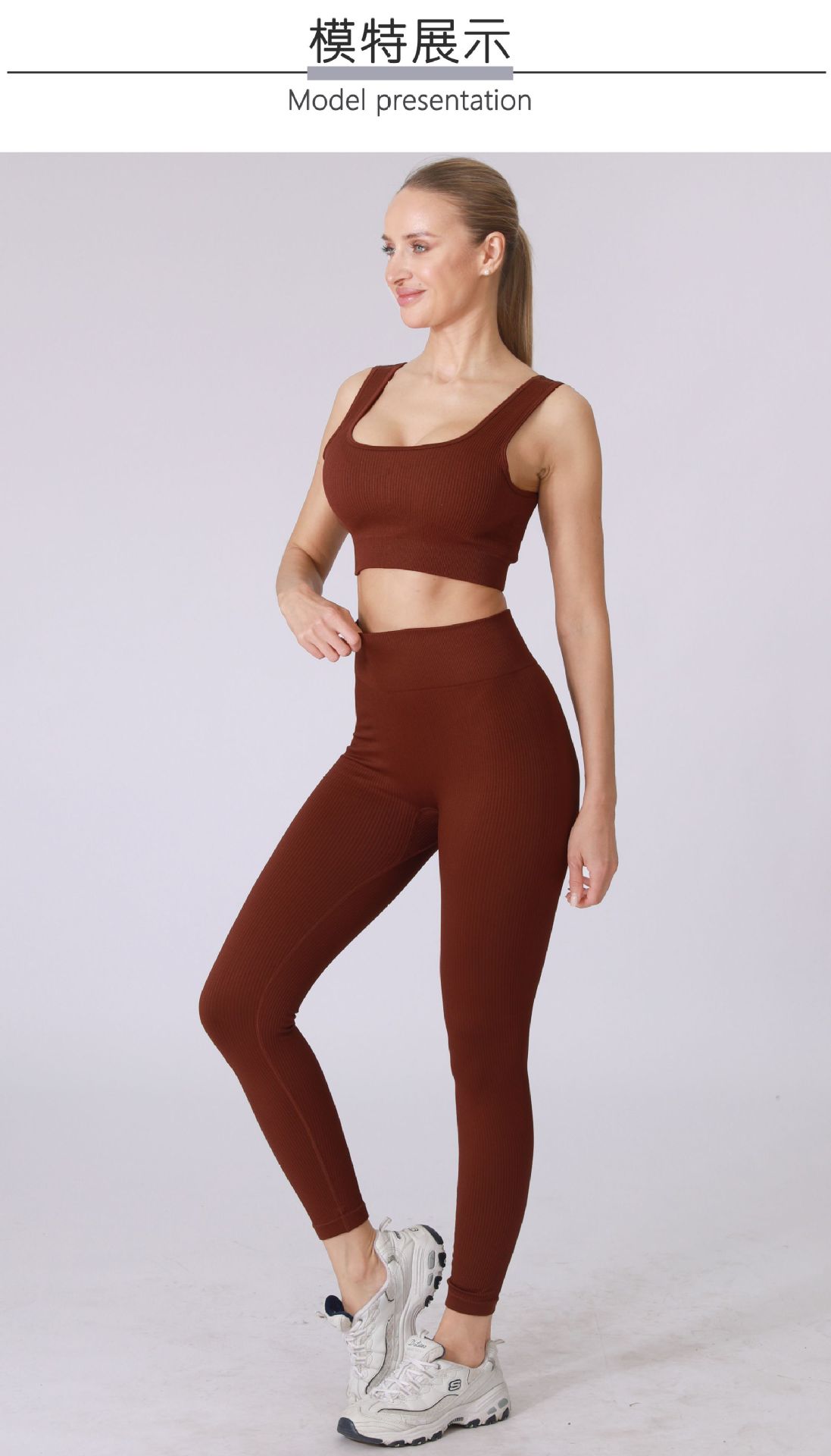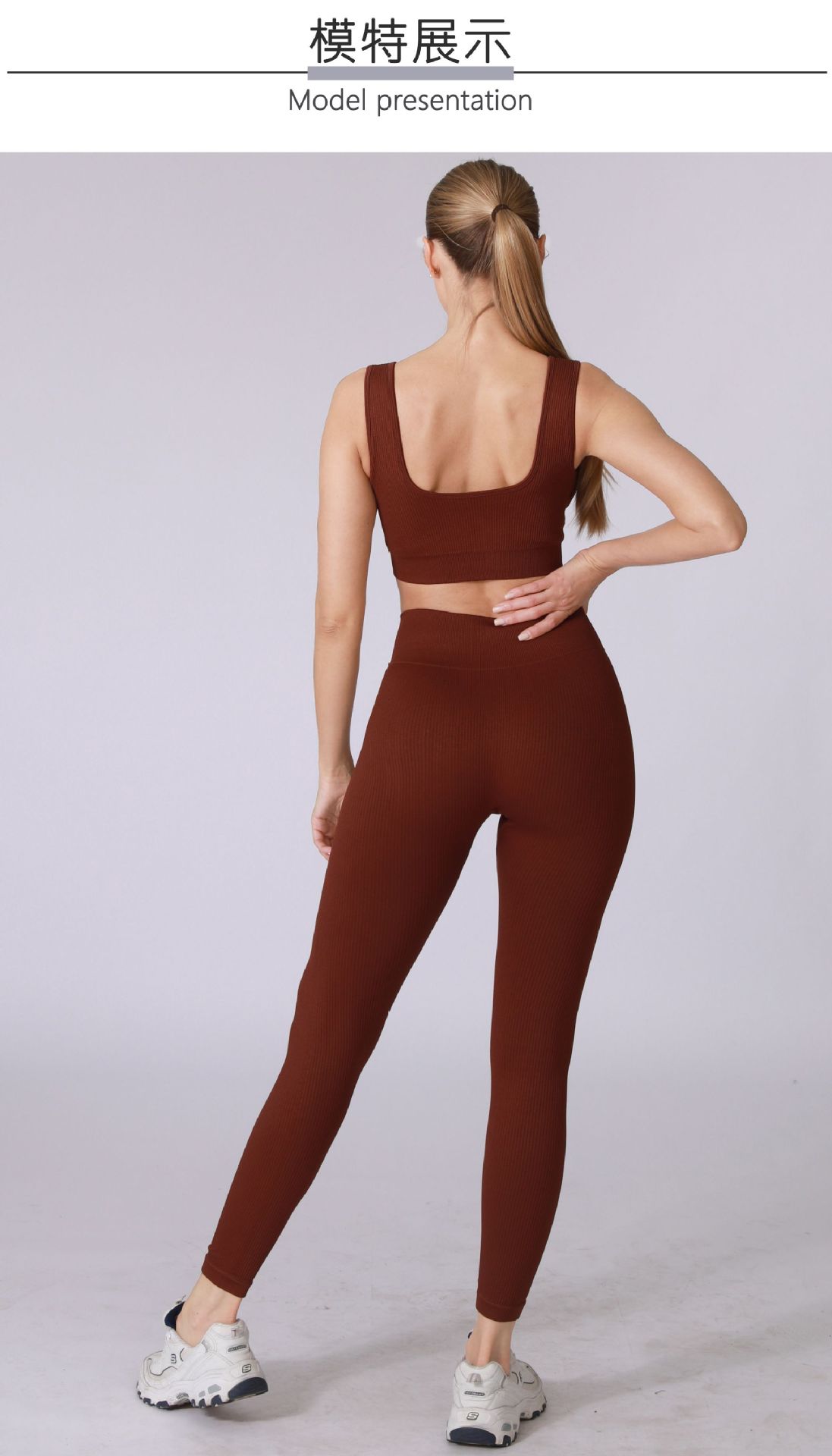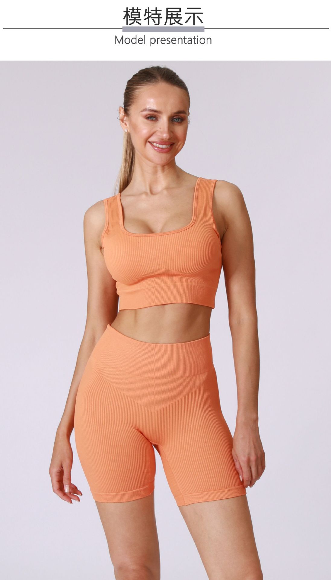 Nylon Verano Tejido Sin Costuras Alta Elasticidad Ropa Interior Deportiva U Cuello Cuadrado Espalda Hermosa Yoga Deportes Pantalones Largos Set de Fitness Mujer