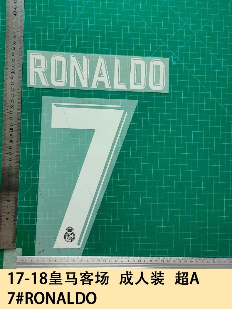 17-18 Real Madrid Visitante Adulto Vestido A 7#RONALDO Camiseta Número Letra Estampado Número Transferencia de Calor Pasta