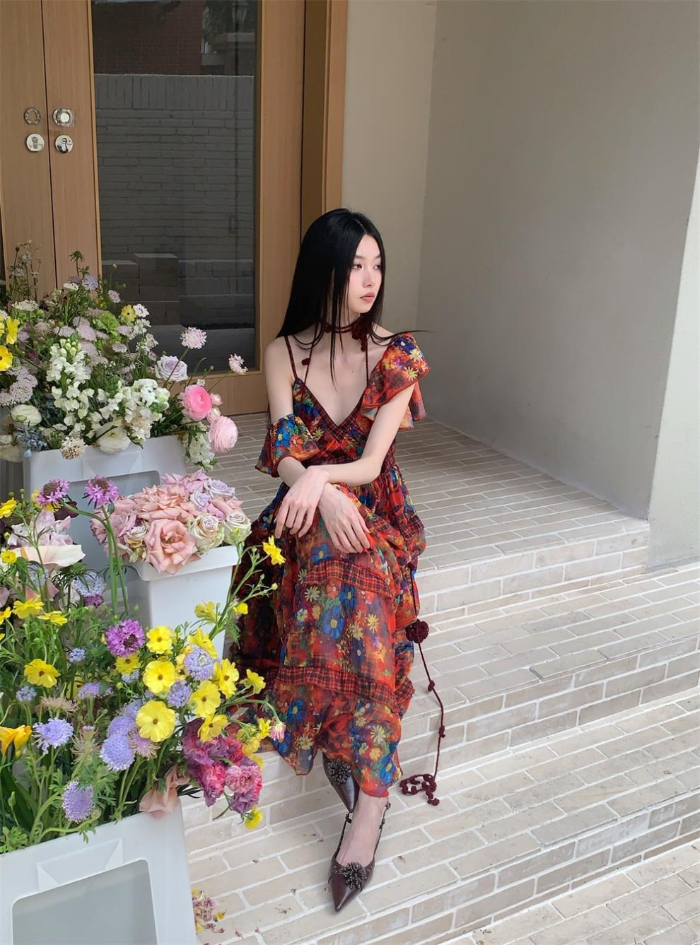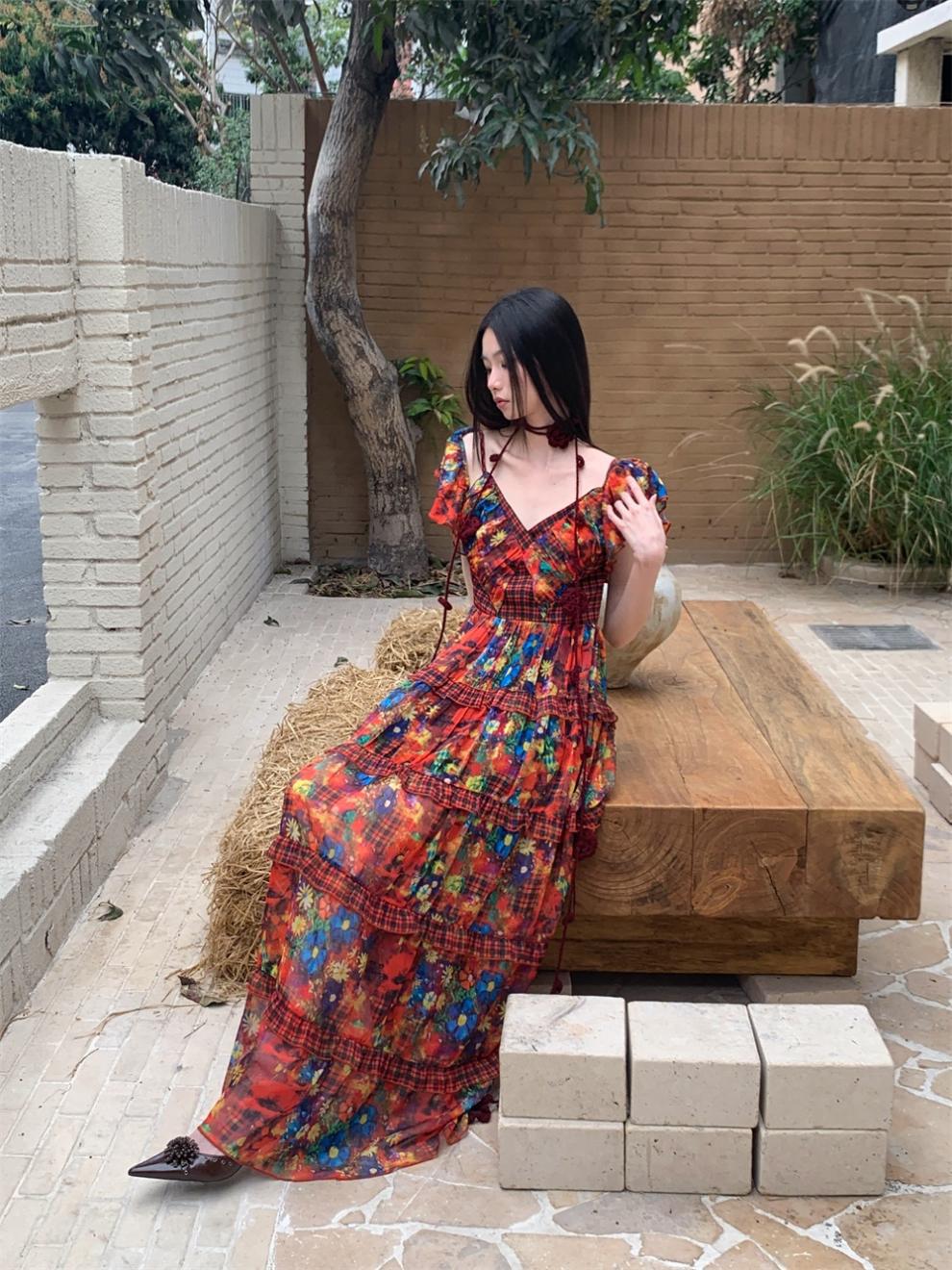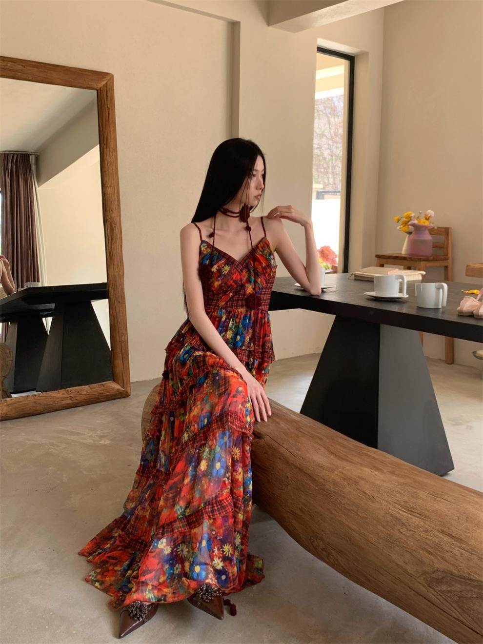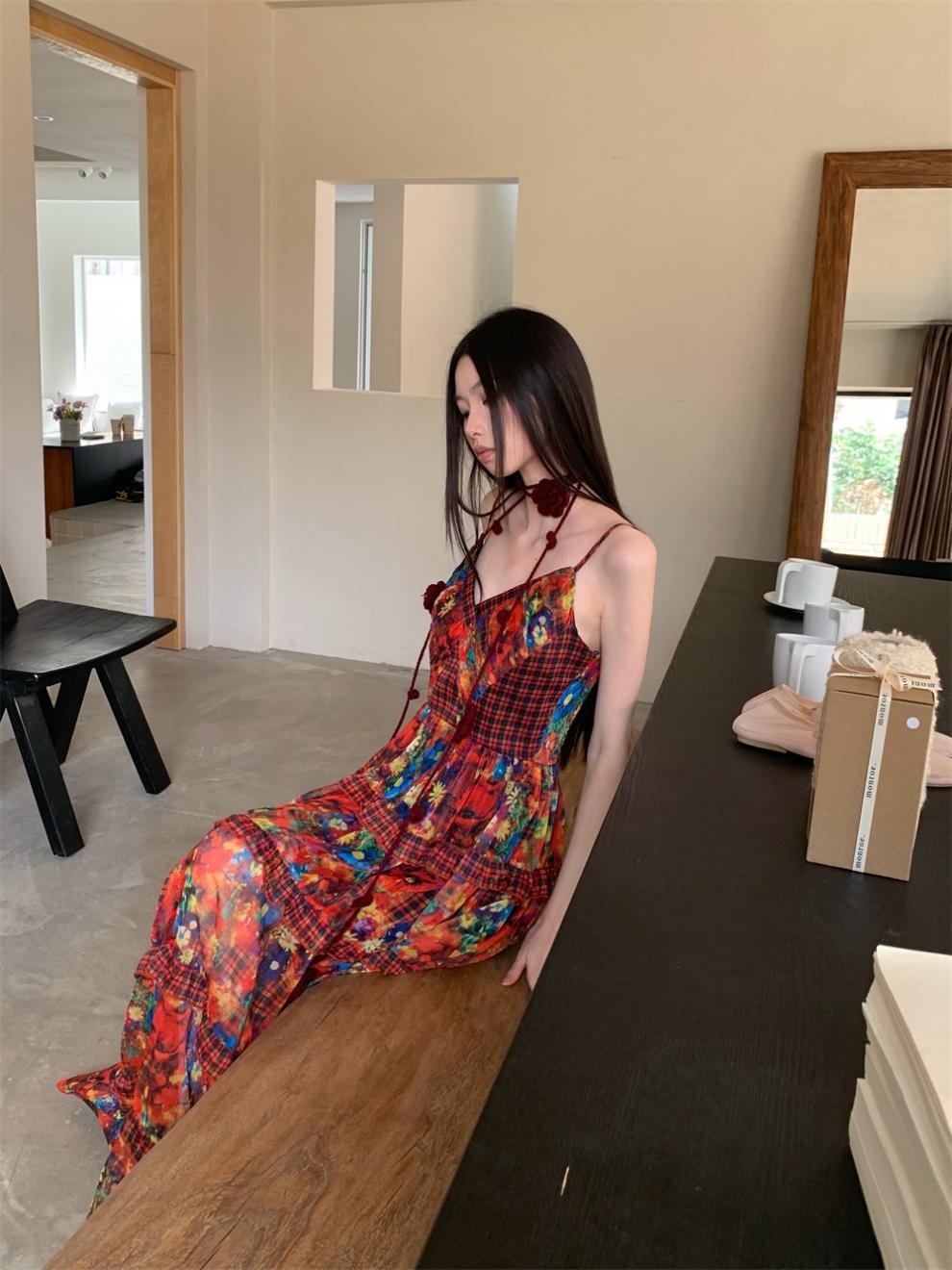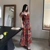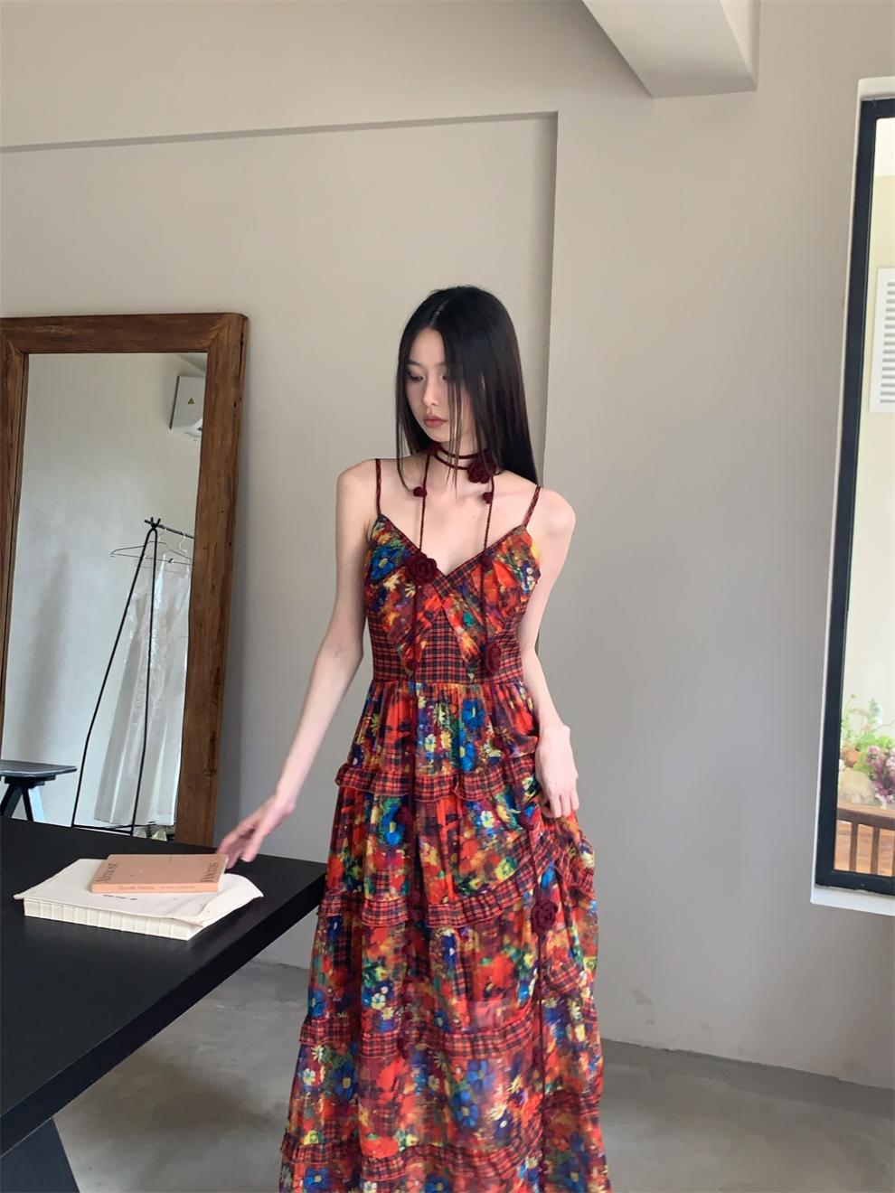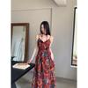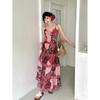 Foto real en stock vestido floral de tirantes retro francés para vacaciones