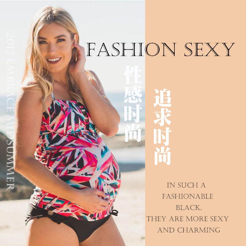 Traje de baño sexy de maternidad estampado nuevo 2023 de Amazon europeo y americano para mujer, traje de baño dividido de talla grande en stock al por mayor