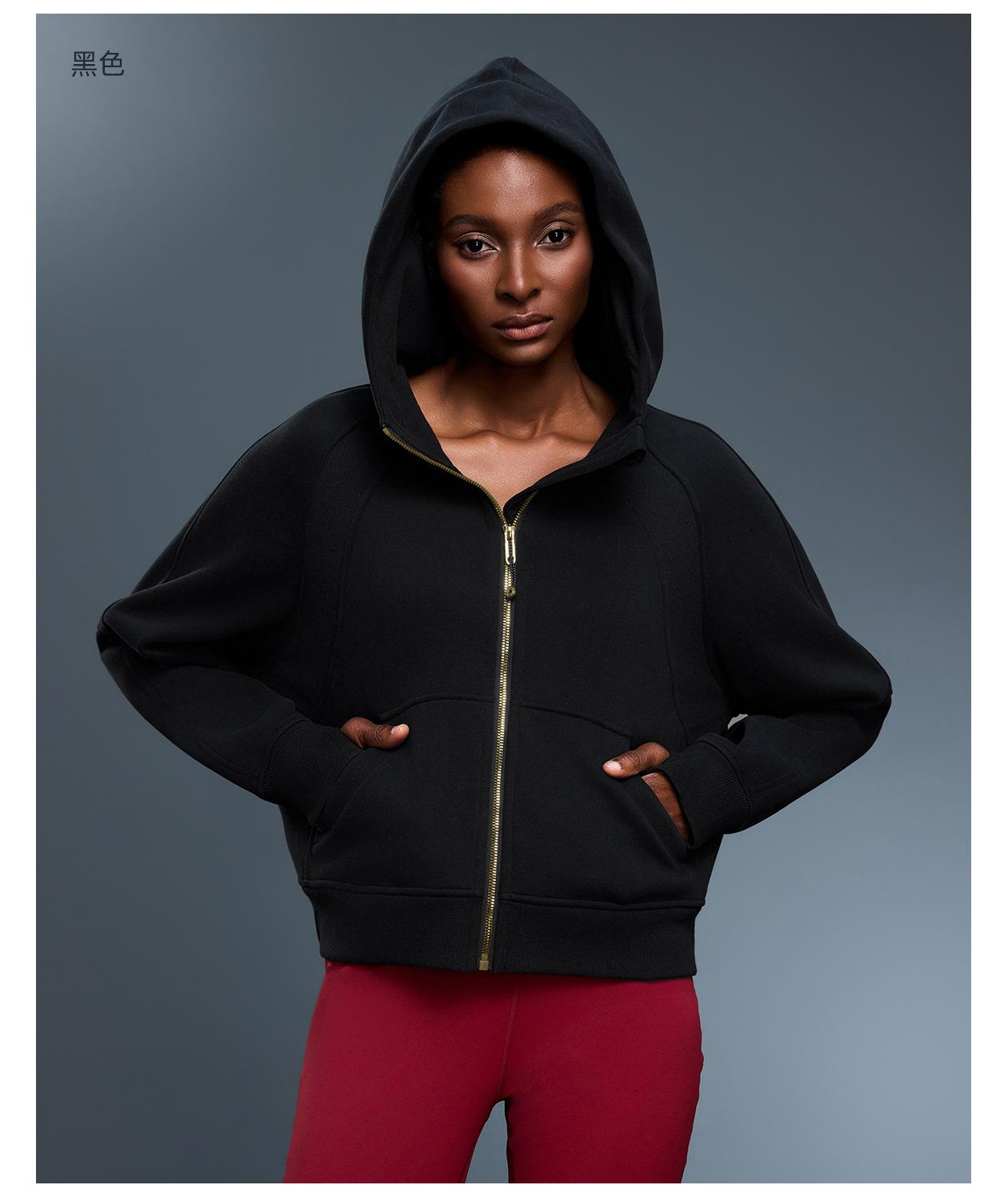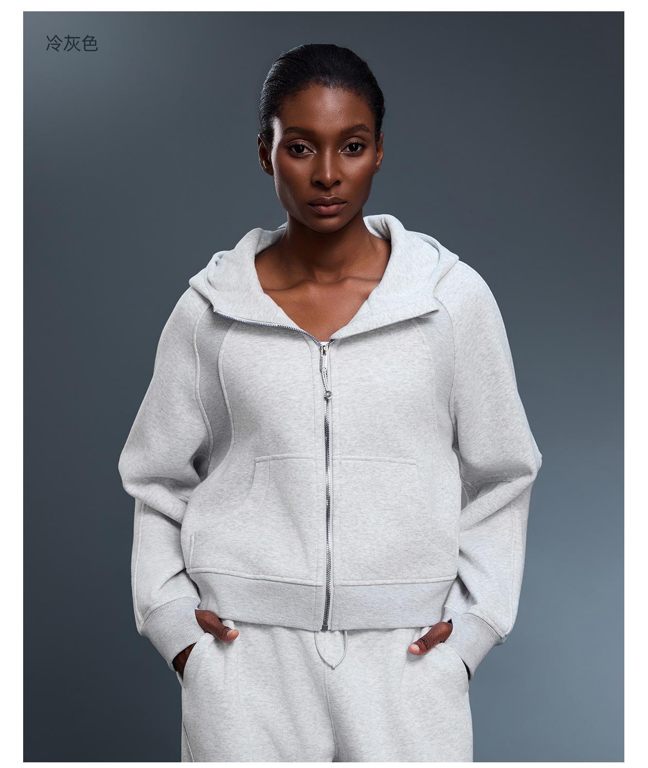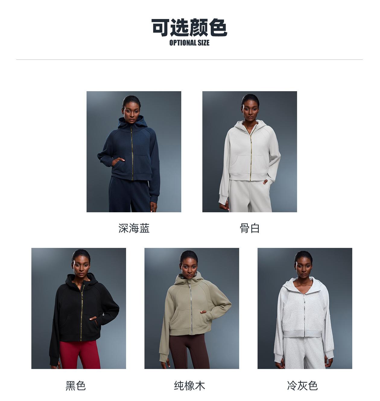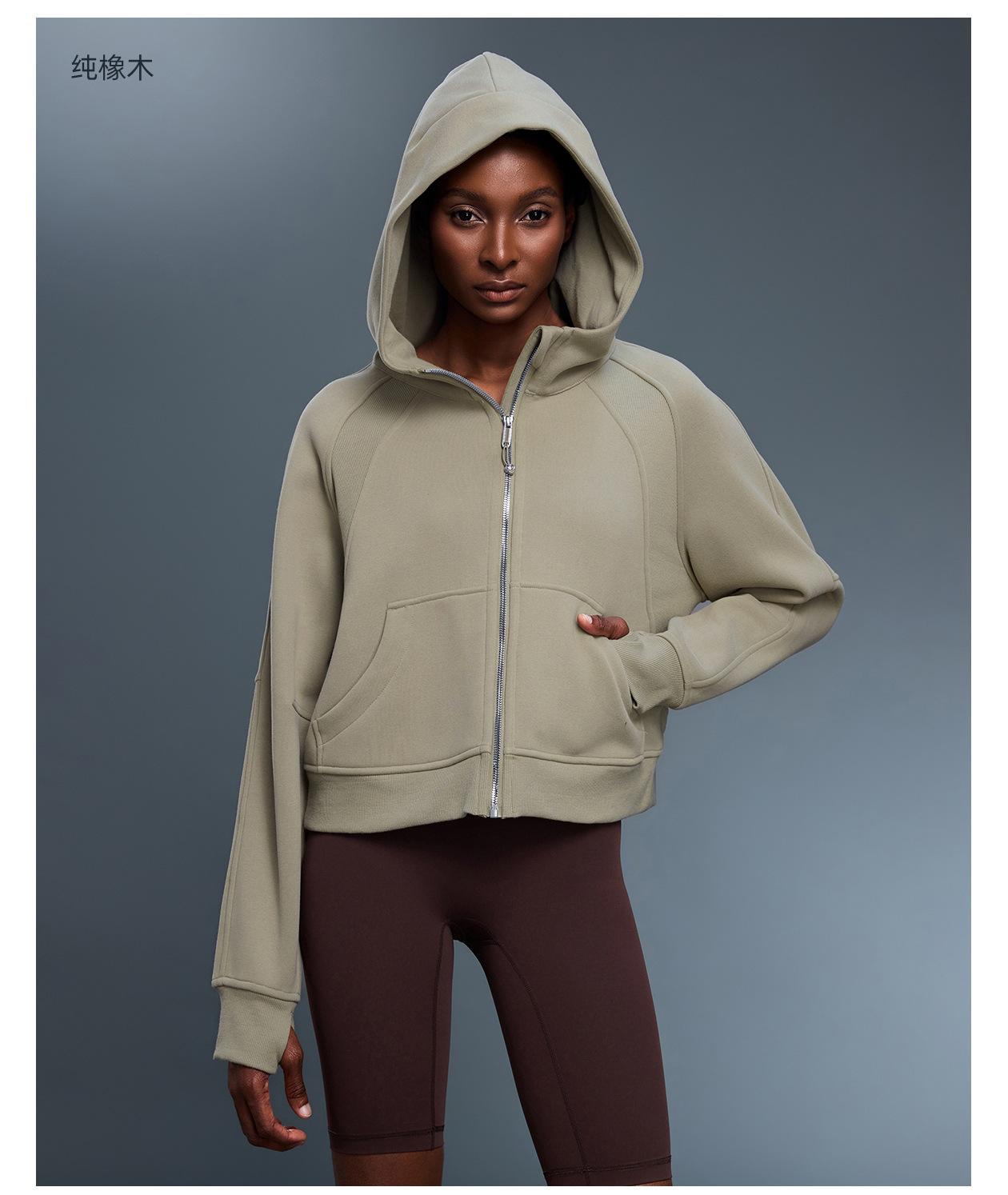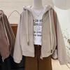 Sudadera cárdigan cálida con capucha forrada de polar para mujer otoño invierno simple versátil top deportivo chaqueta casual holgada D25130
