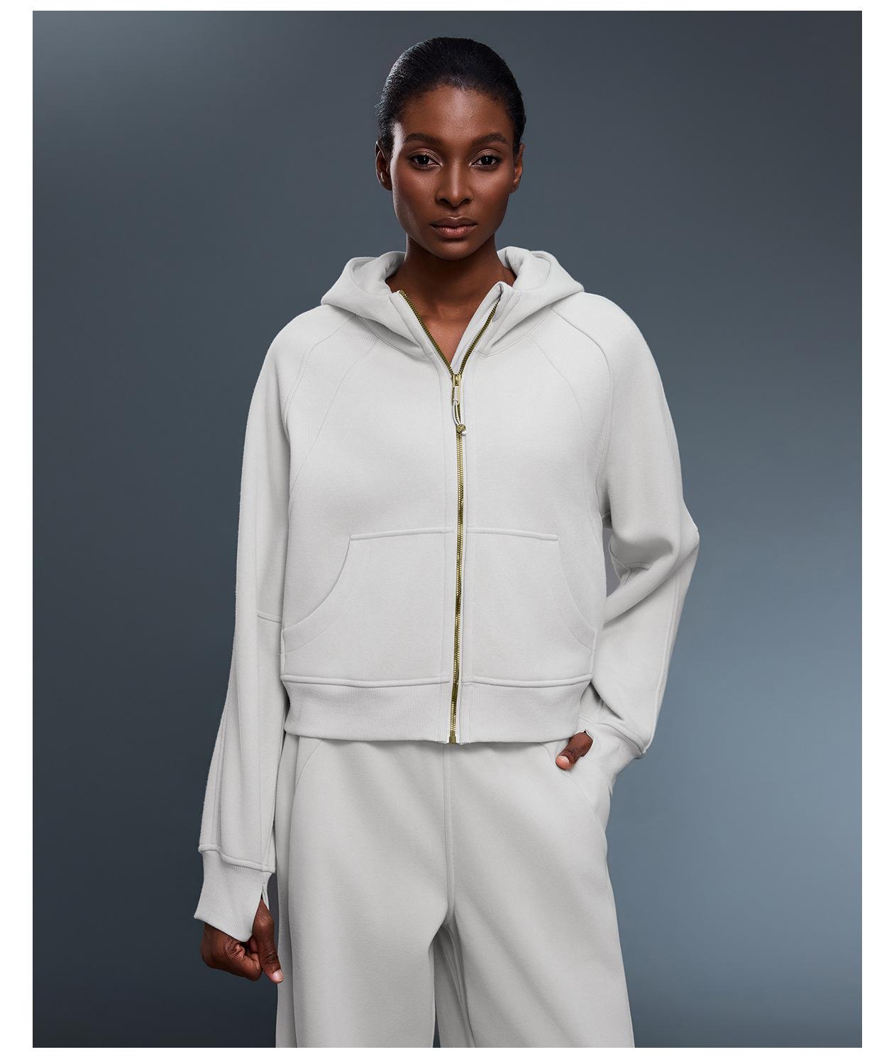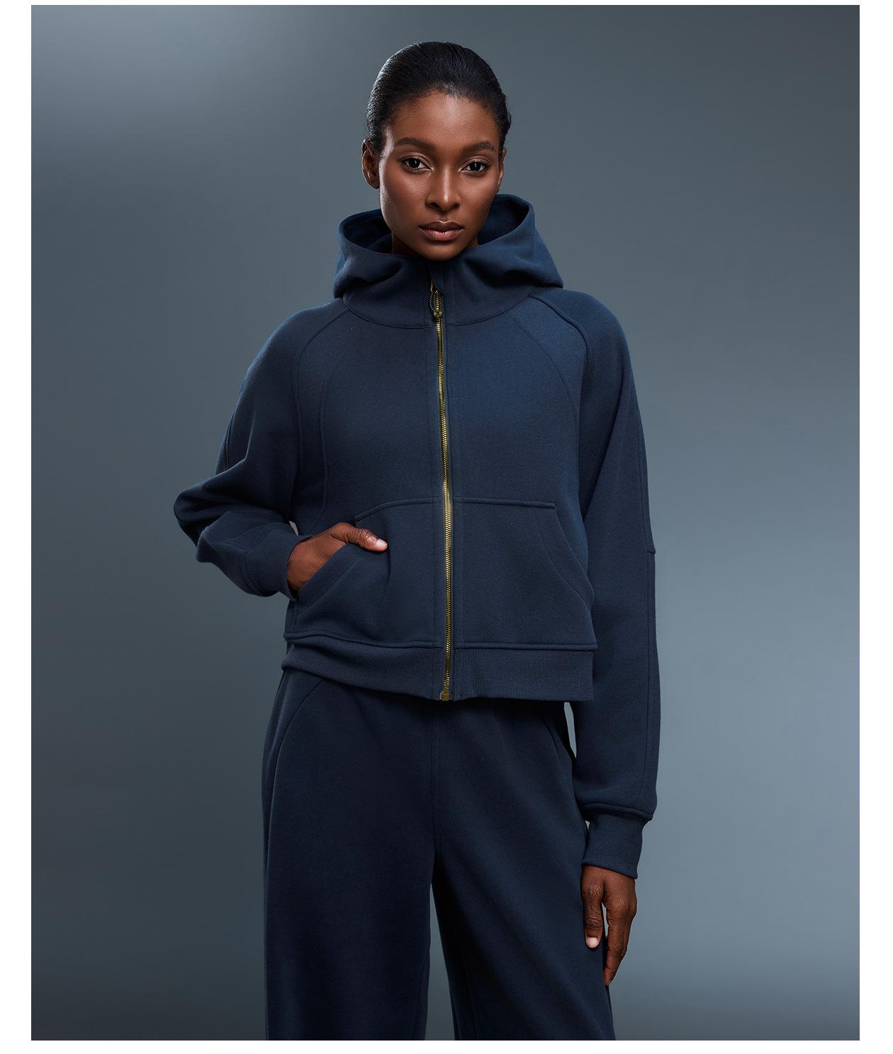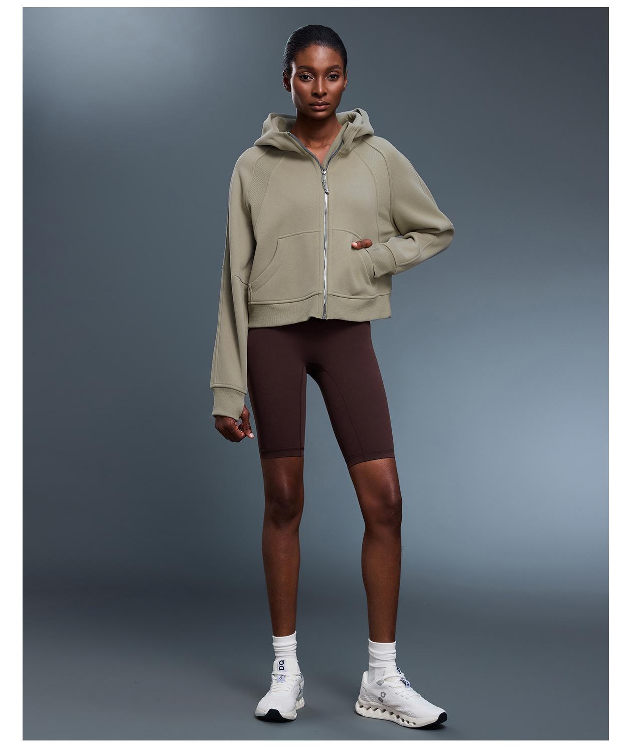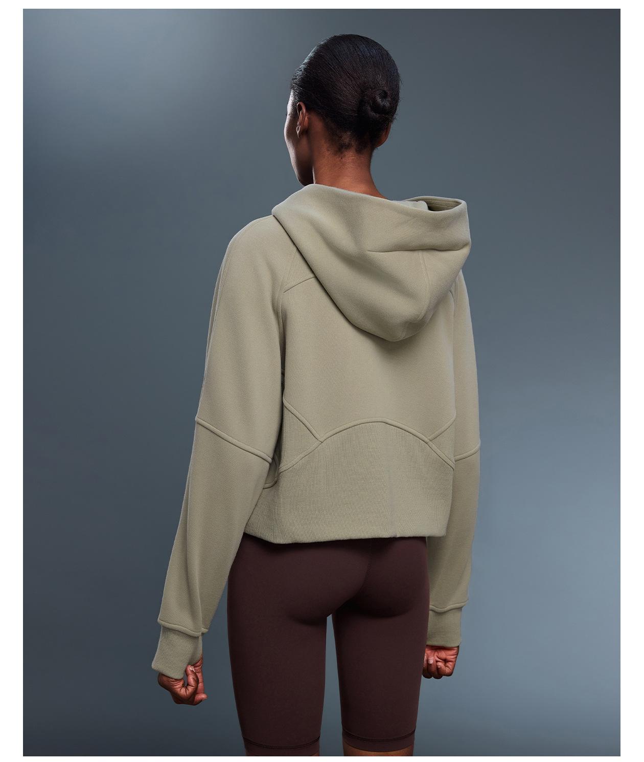 Sudadera cárdigan cálida con capucha forrada de polar para mujer otoño invierno simple versátil top deportivo chaqueta casual holgada D25130