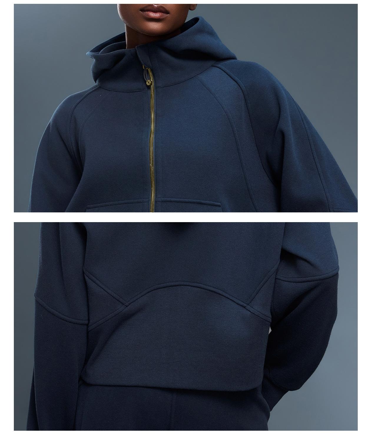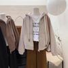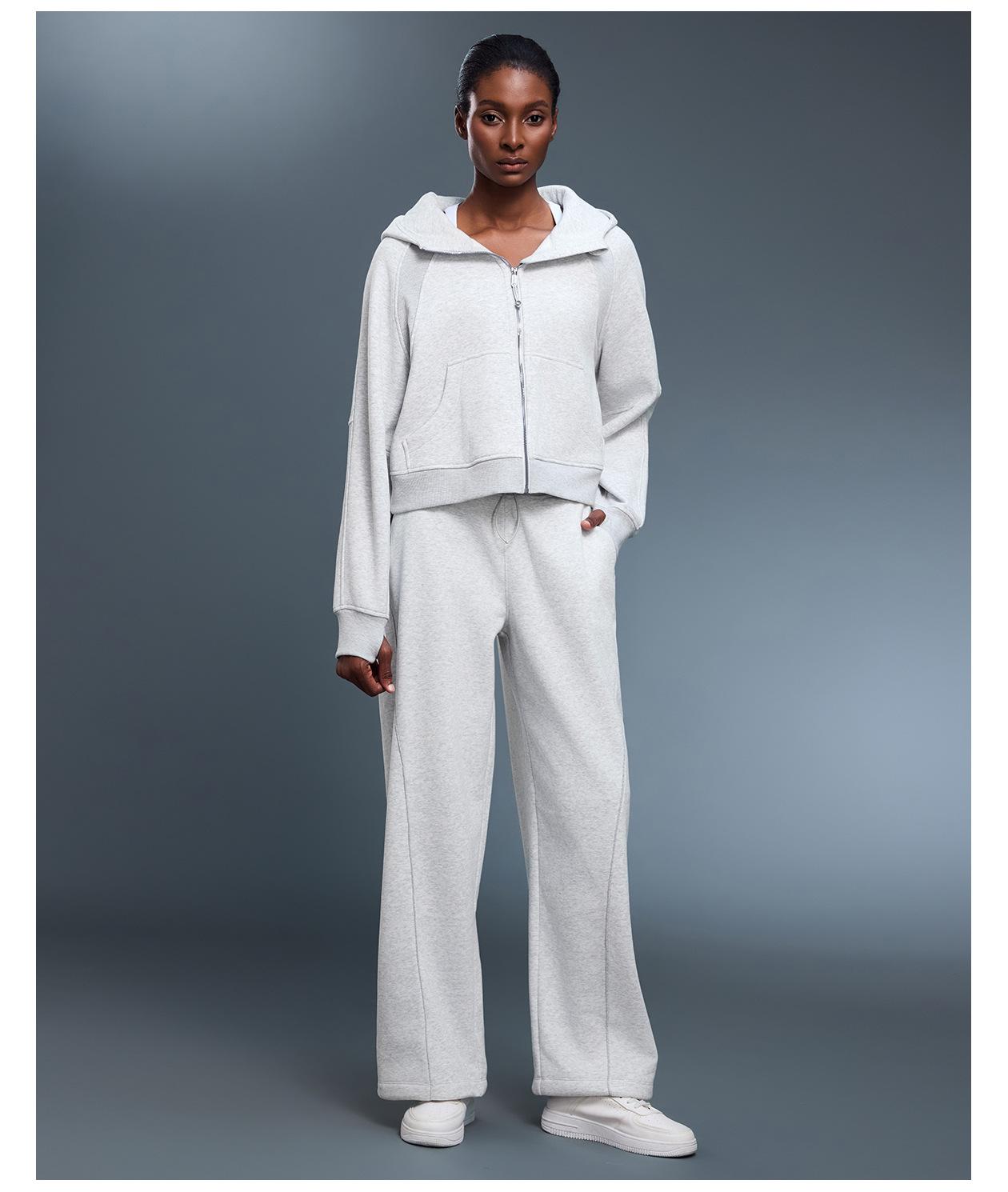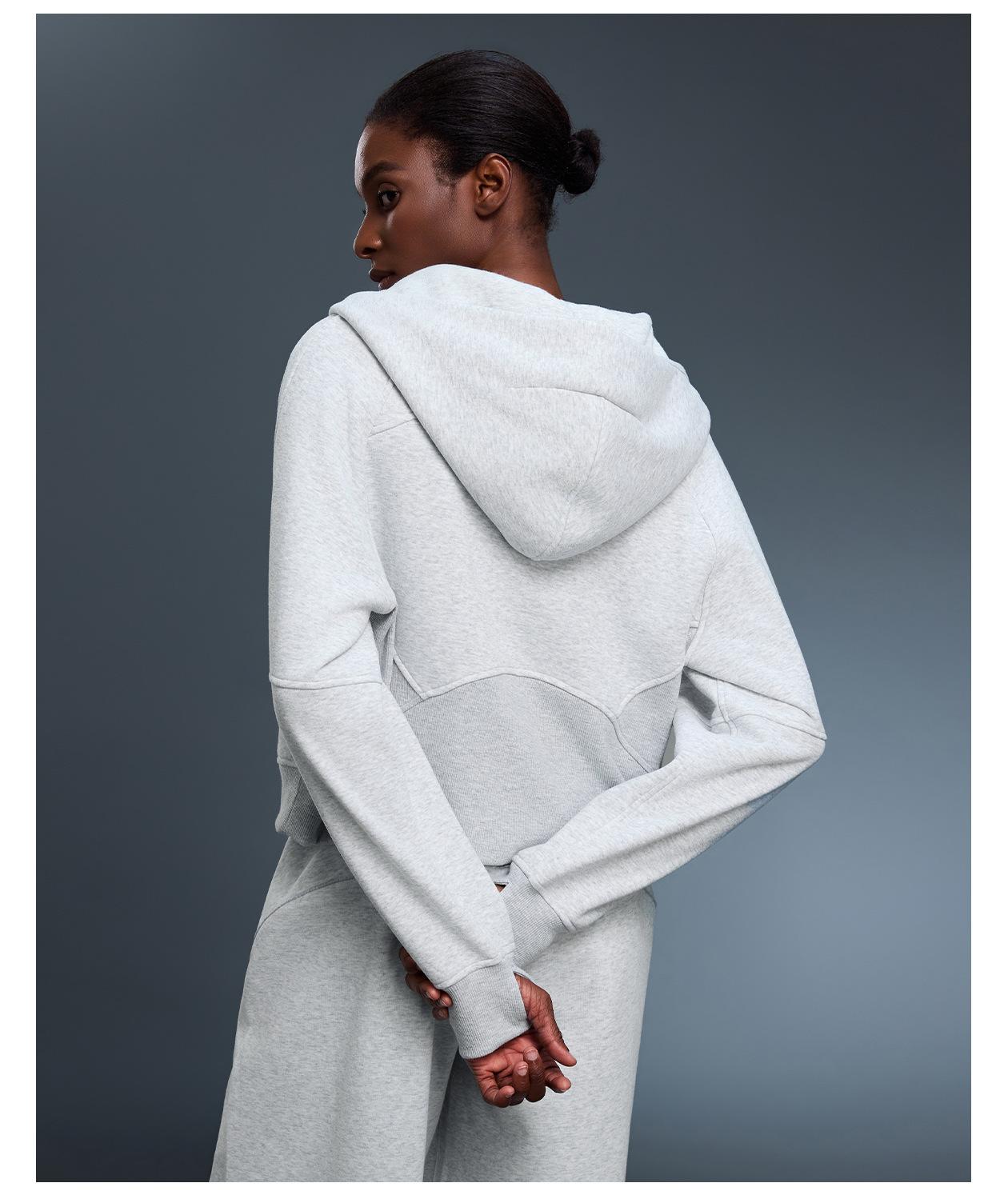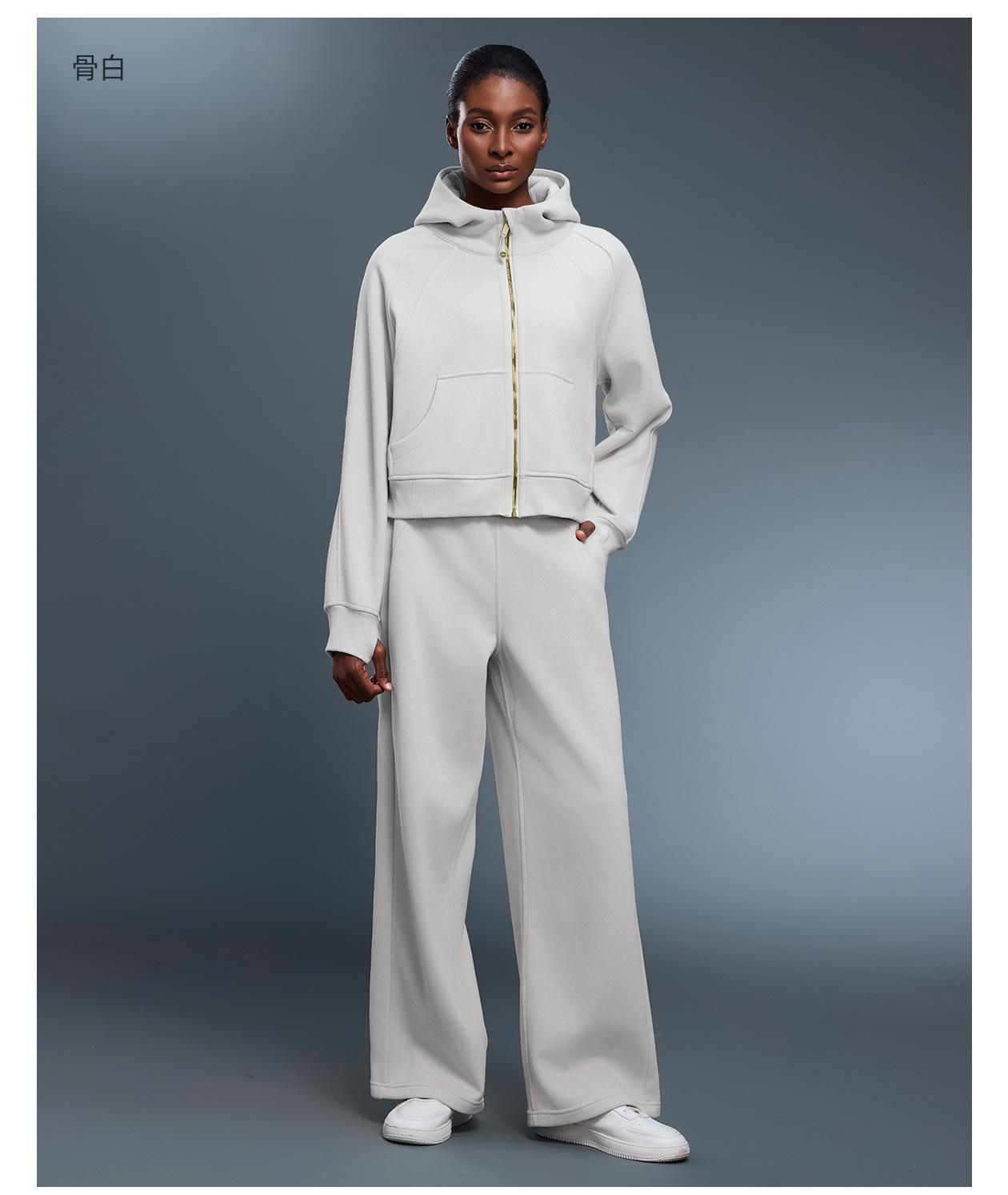 Sudadera cárdigan cálida con capucha forrada de polar para mujer otoño invierno simple versátil top deportivo chaqueta casual holgada D25130