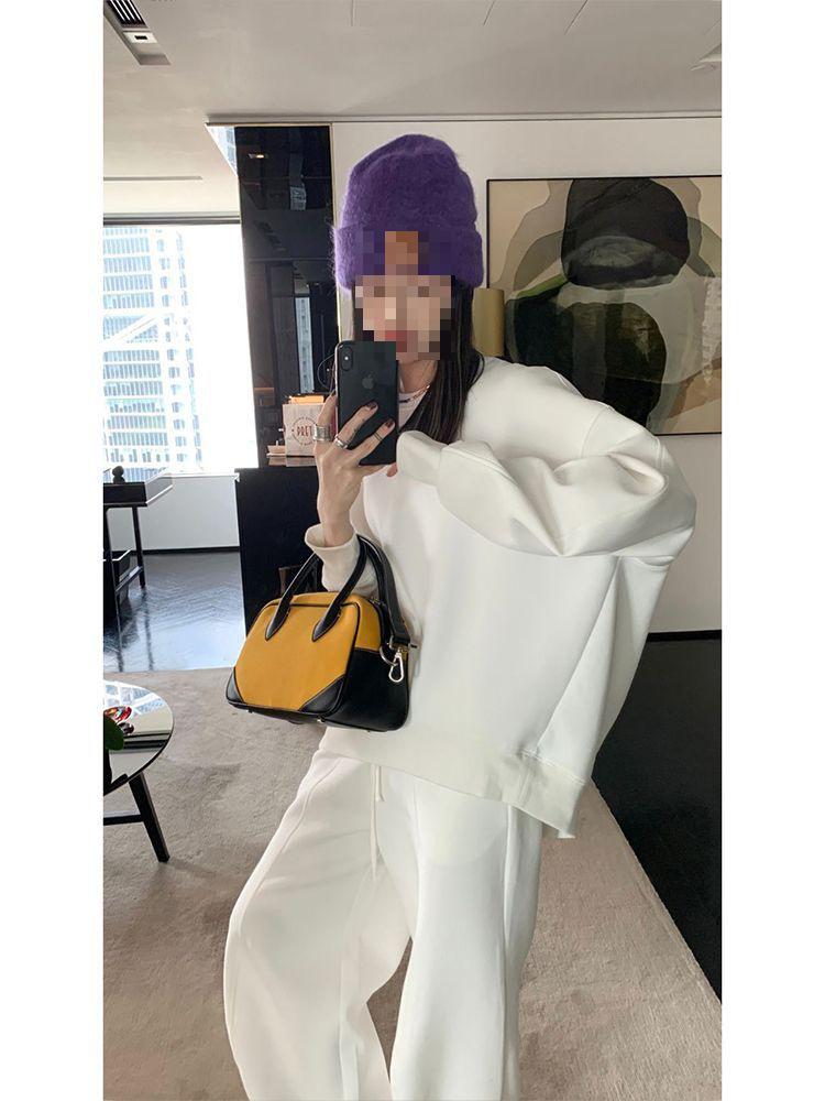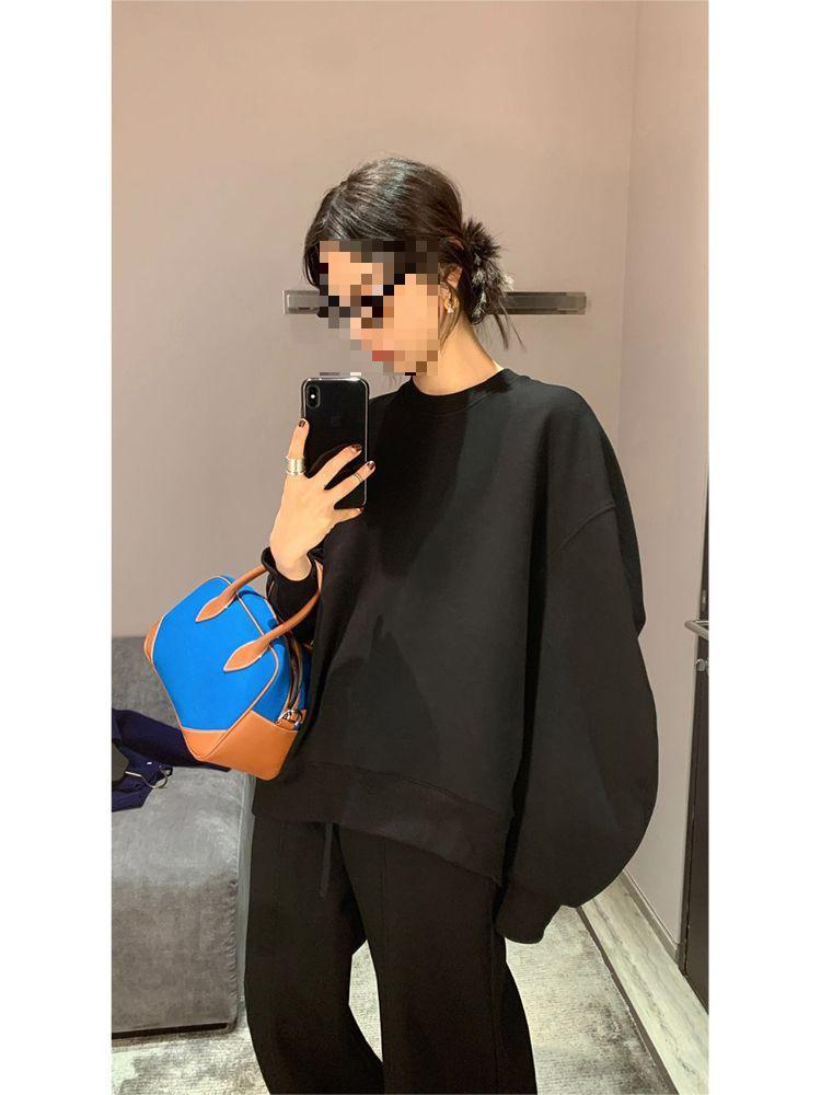 Conjunto deportivo holgado de dos piezas de color sólido, moda simple, primavera y otoño para mujer, estilo coreano, casual, nuevo, sudadera y pantalones de chándal