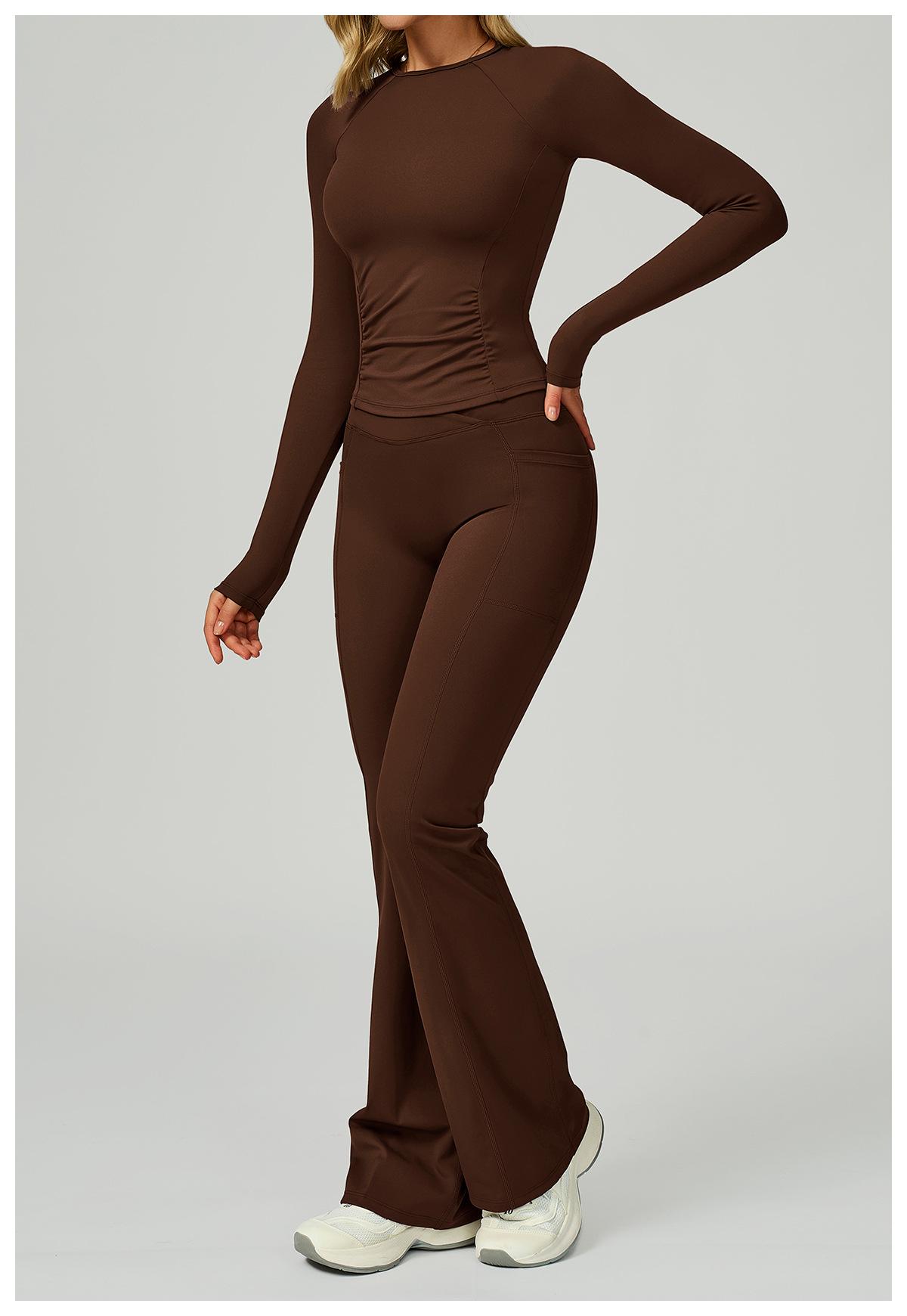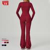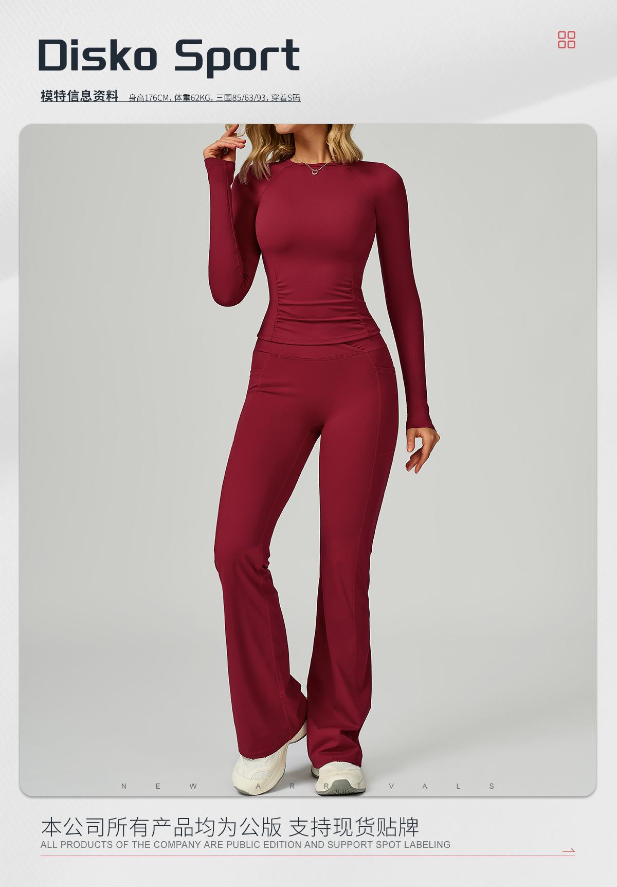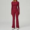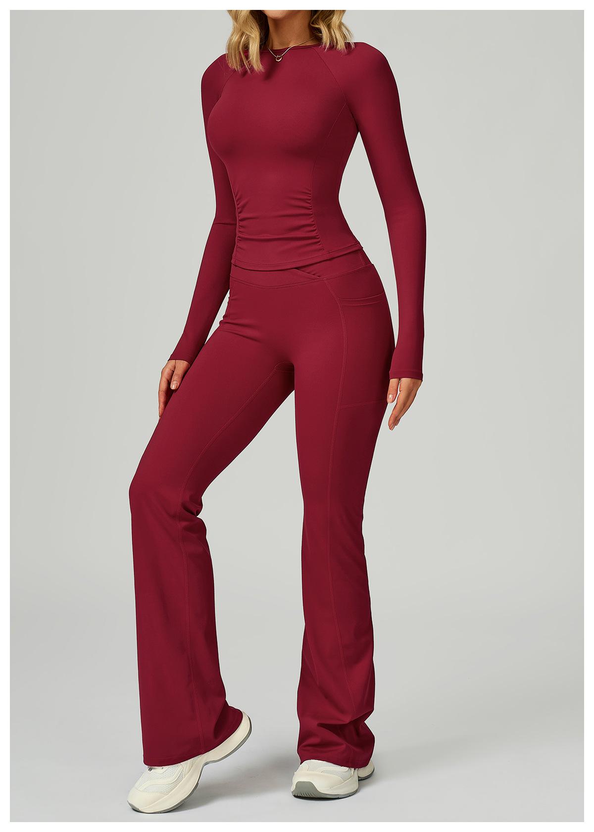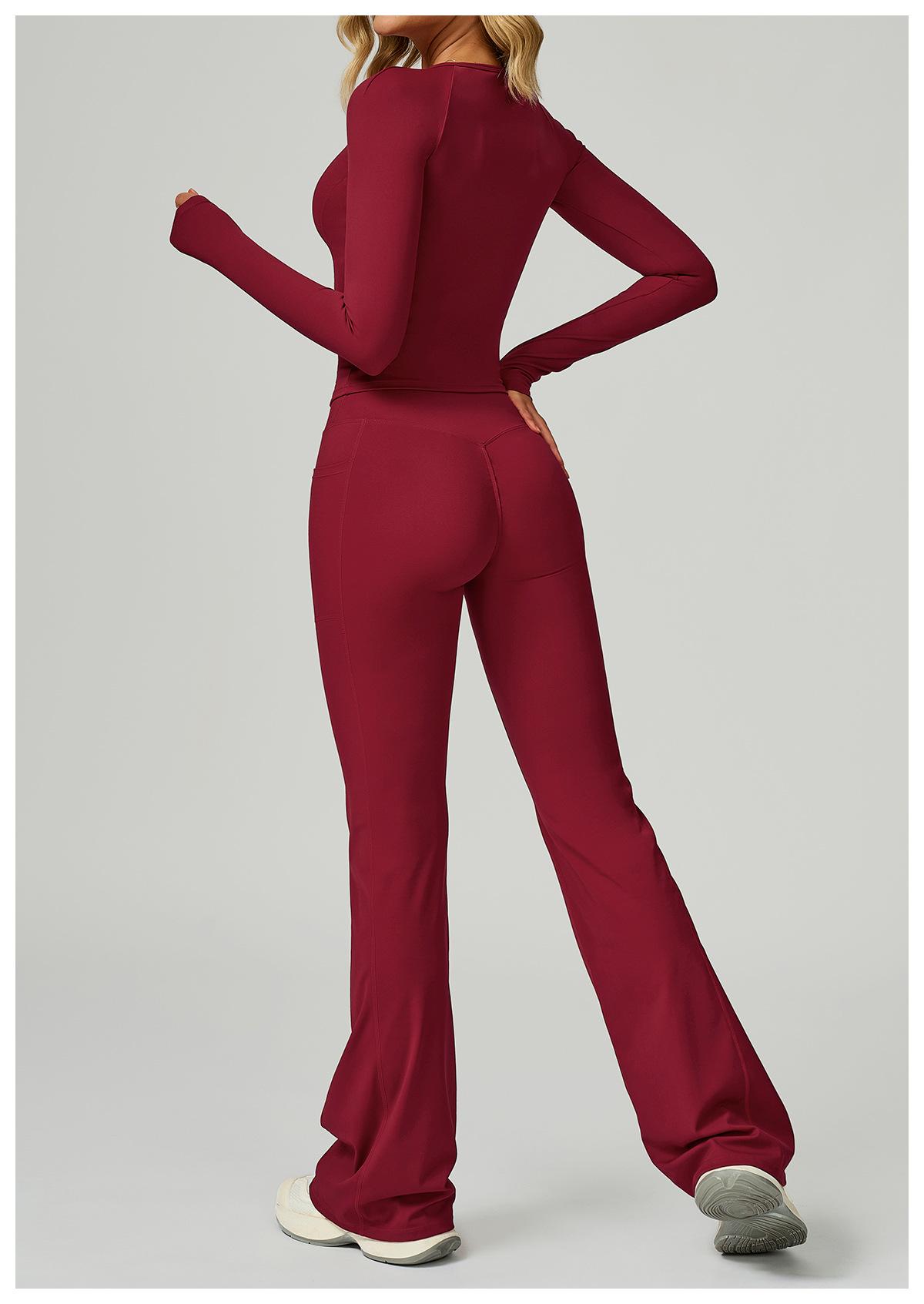 2030 long-sleeved top + 2030 flared pants—cherry red