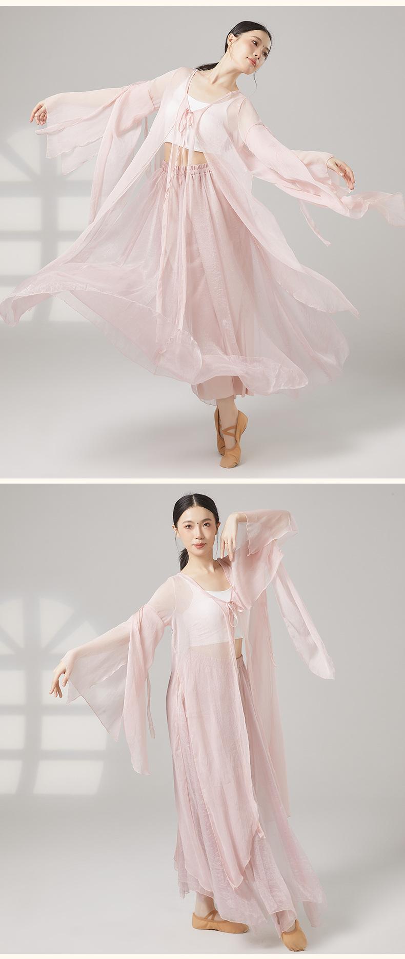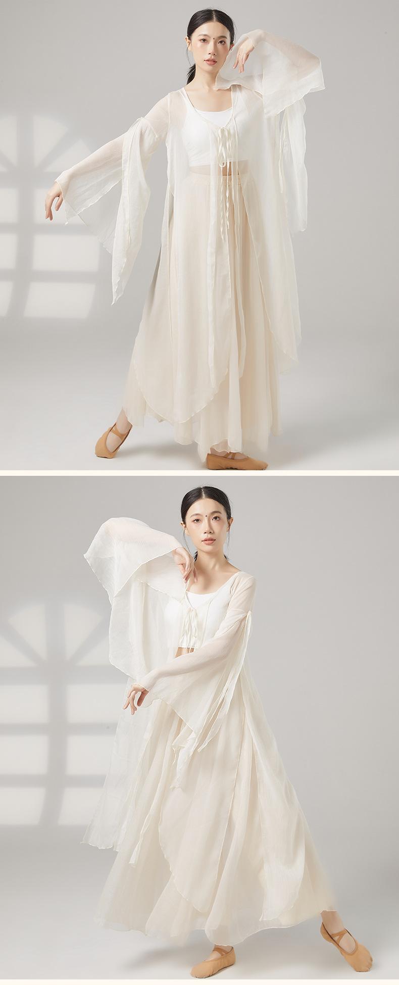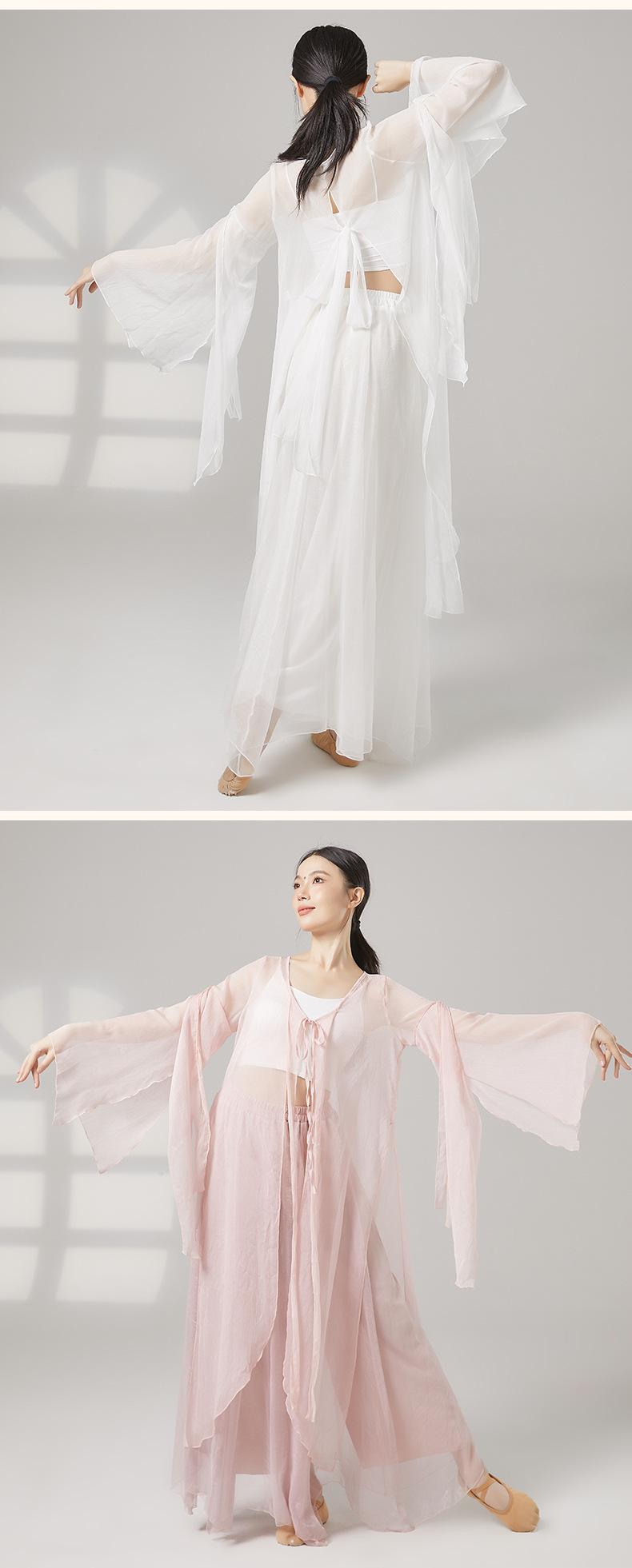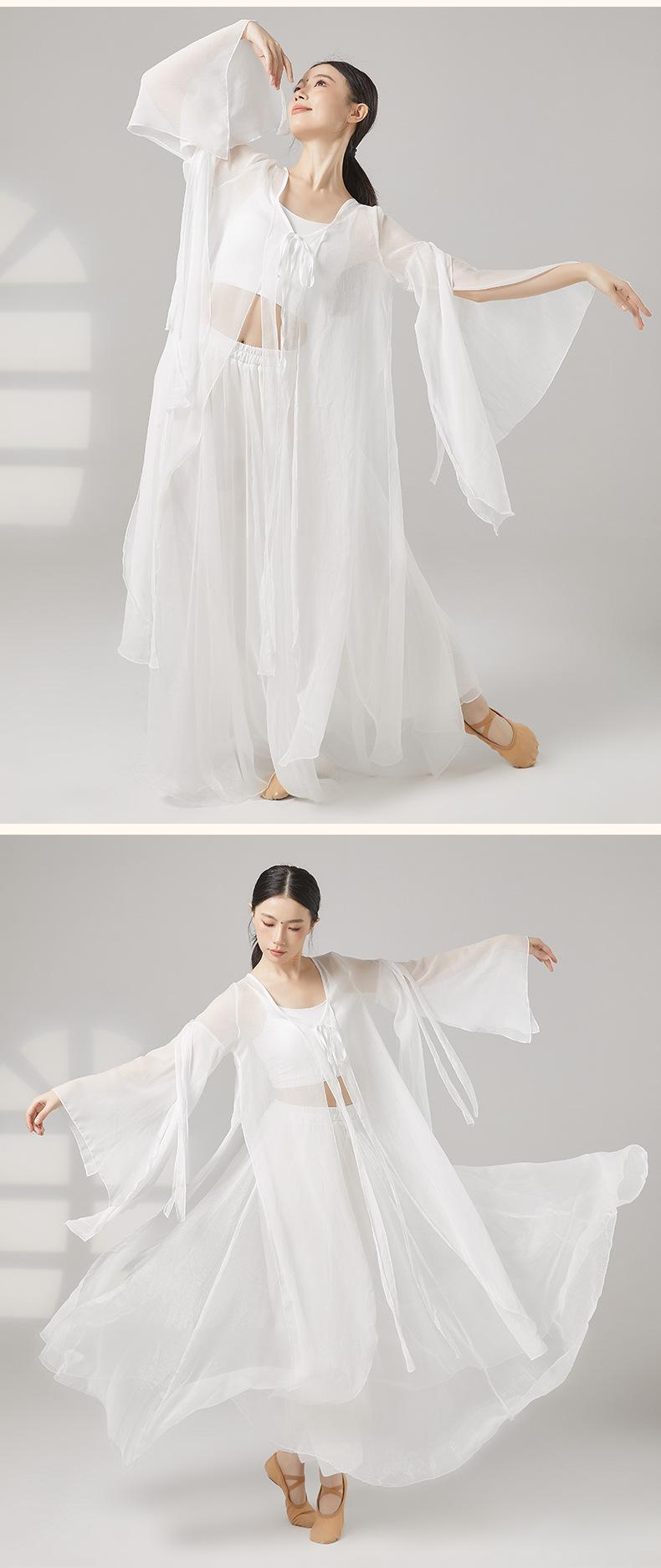 Vestido de Gasa con Cinta de Danza Clásica Fluido para Mujer Traje de Danza China Rima Corporal Ropa de Práctica Estilo Antiguo Disfraz de Actuación de Espíritu de Hada