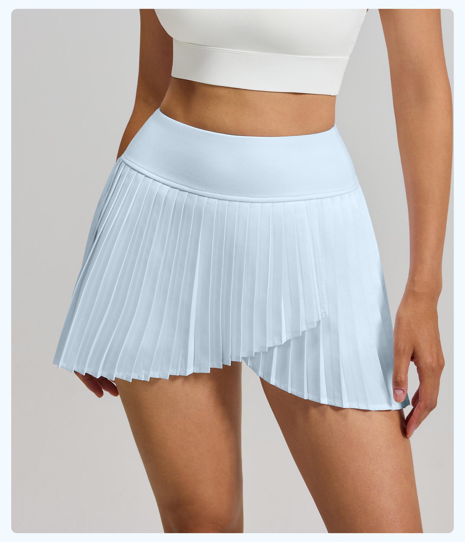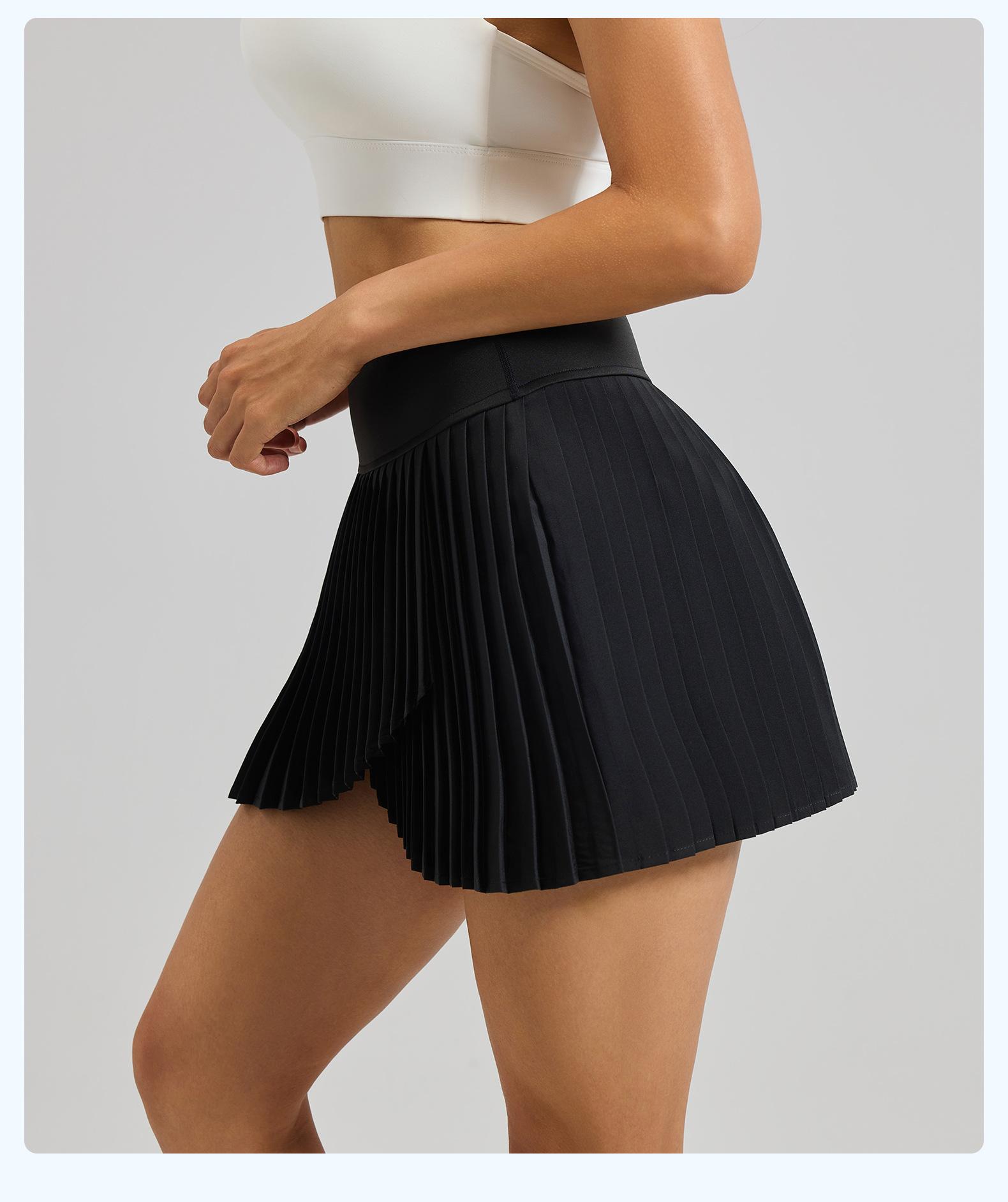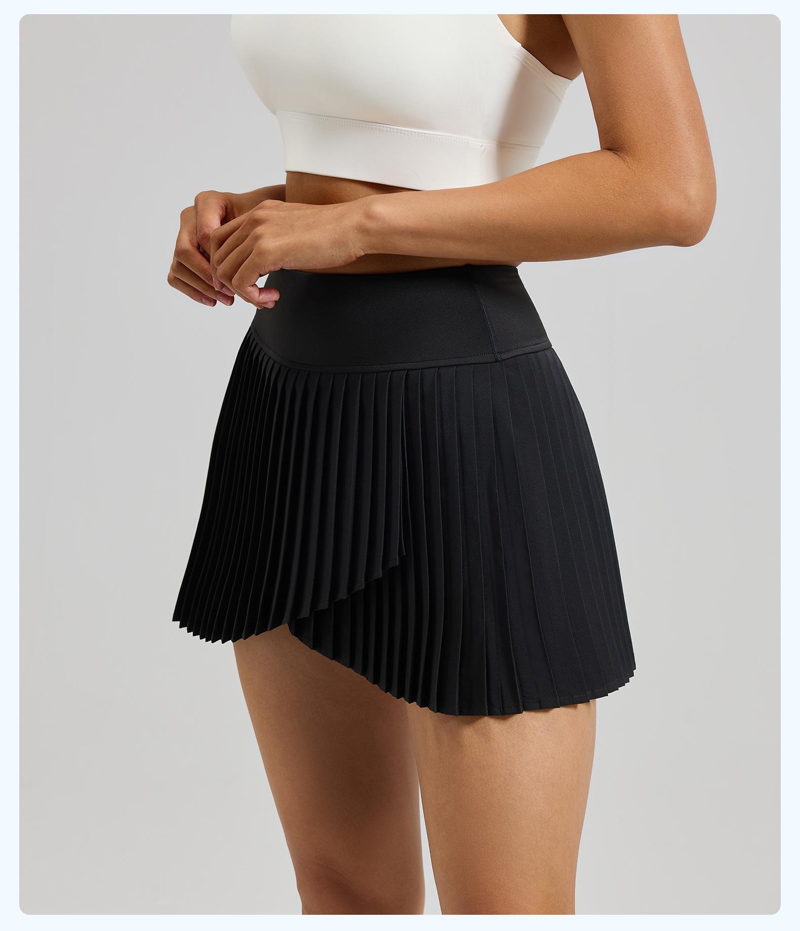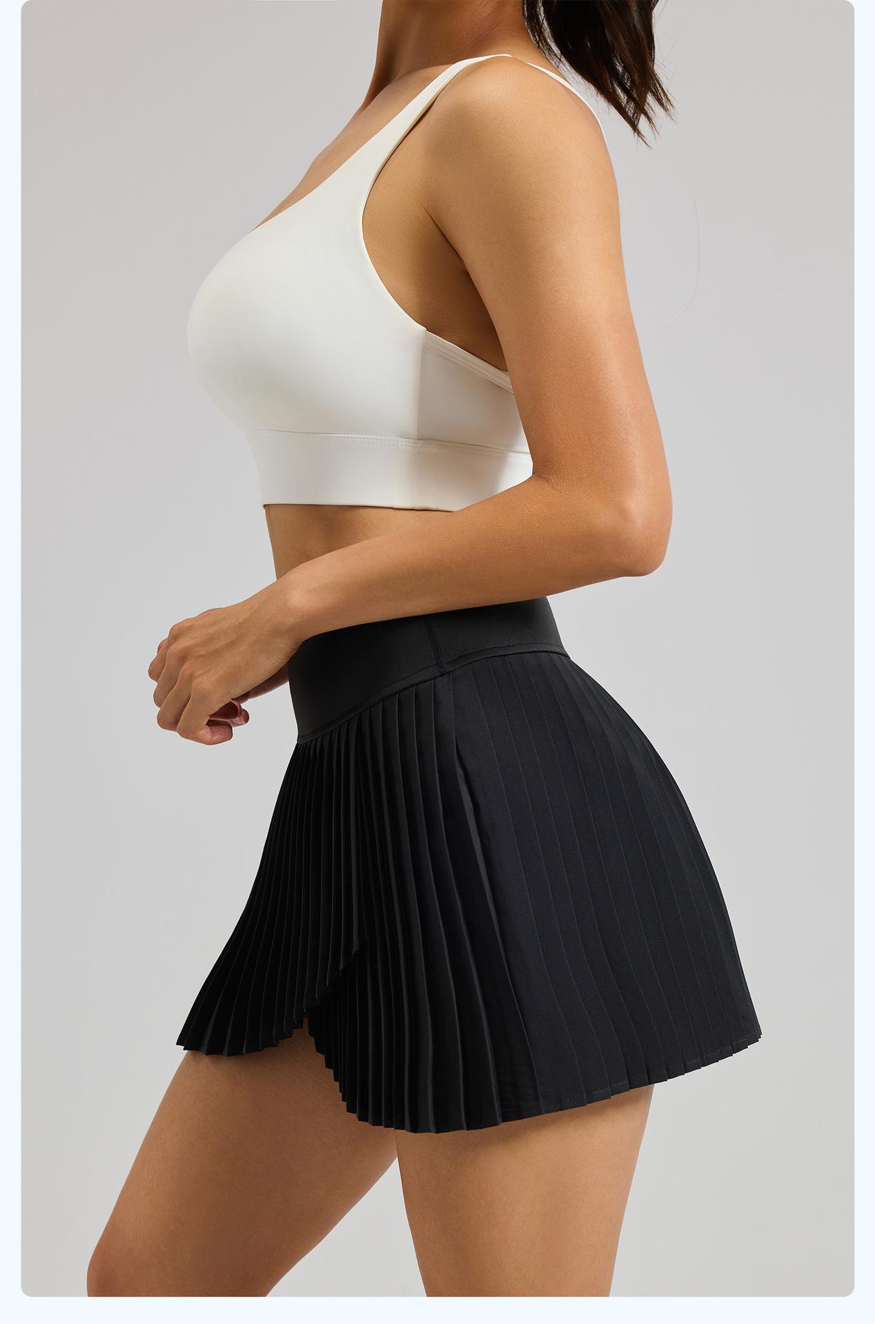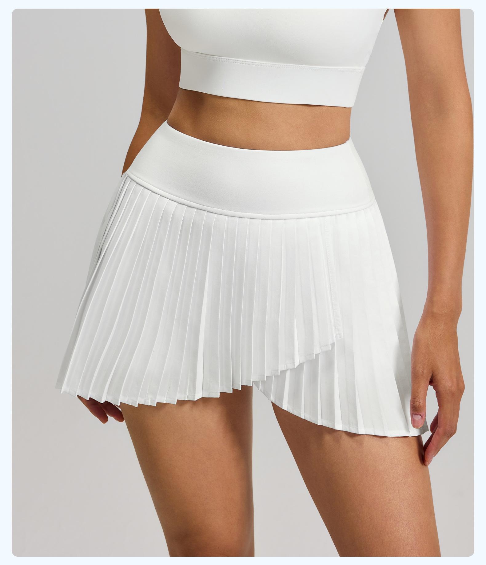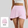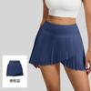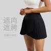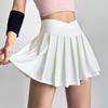 Falda plisada con abertura de dos piezas falsas Yoga Cintura alta Antiexposición Falda de tenis con bolsillos Doble capa Antideslizante Color sólido Falda corta