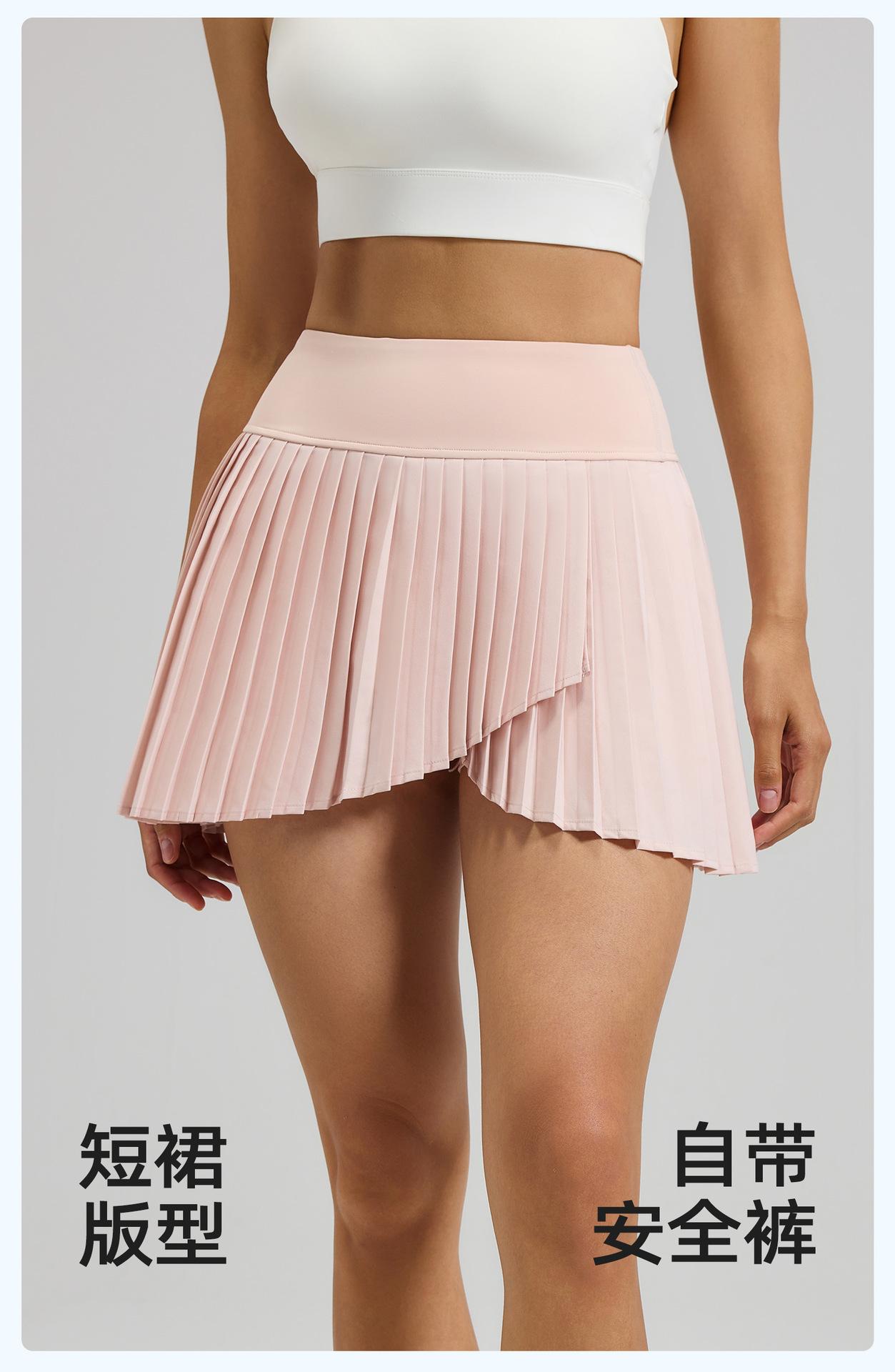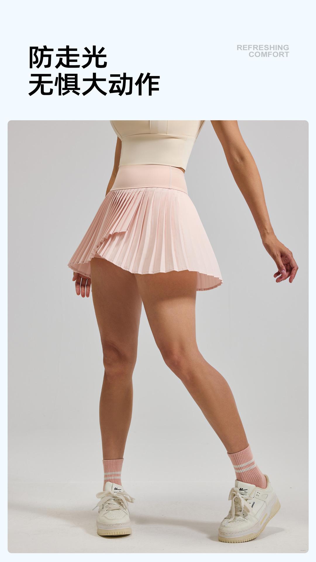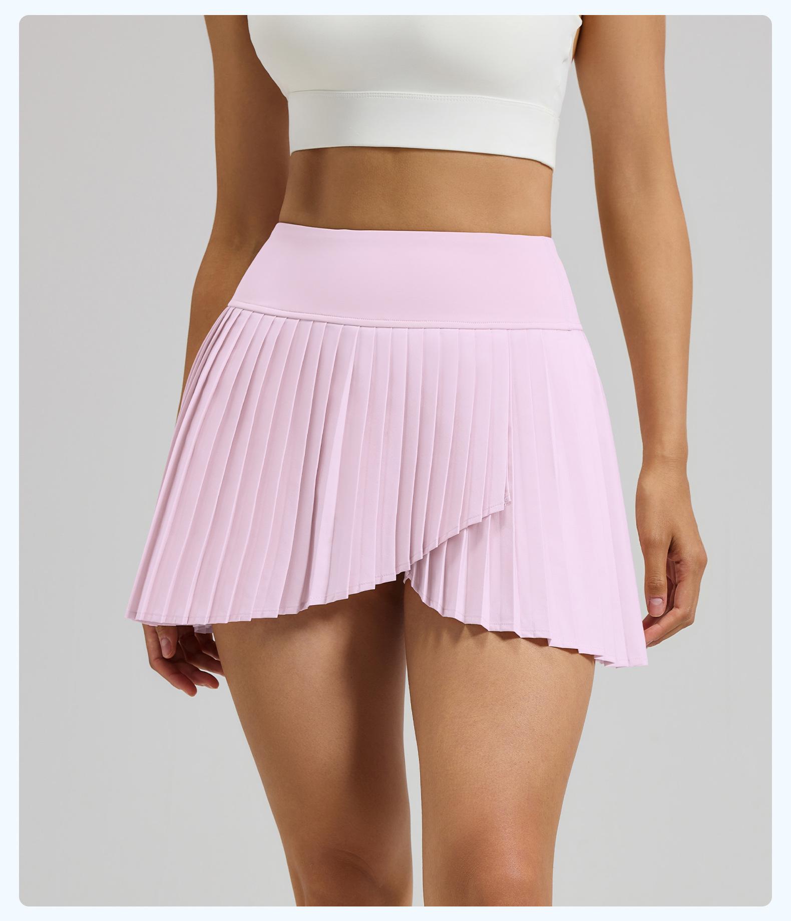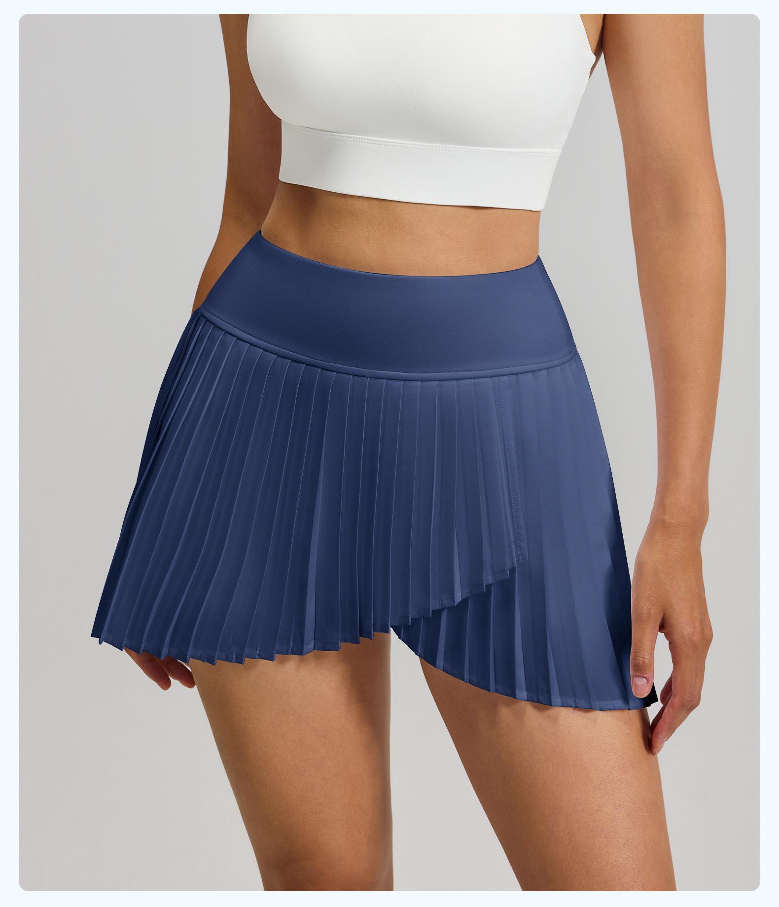 Falda plisada con abertura de dos piezas falsas Yoga Cintura alta Antiexposición Falda de tenis con bolsillos Doble capa Antideslizante Color sólido Falda corta