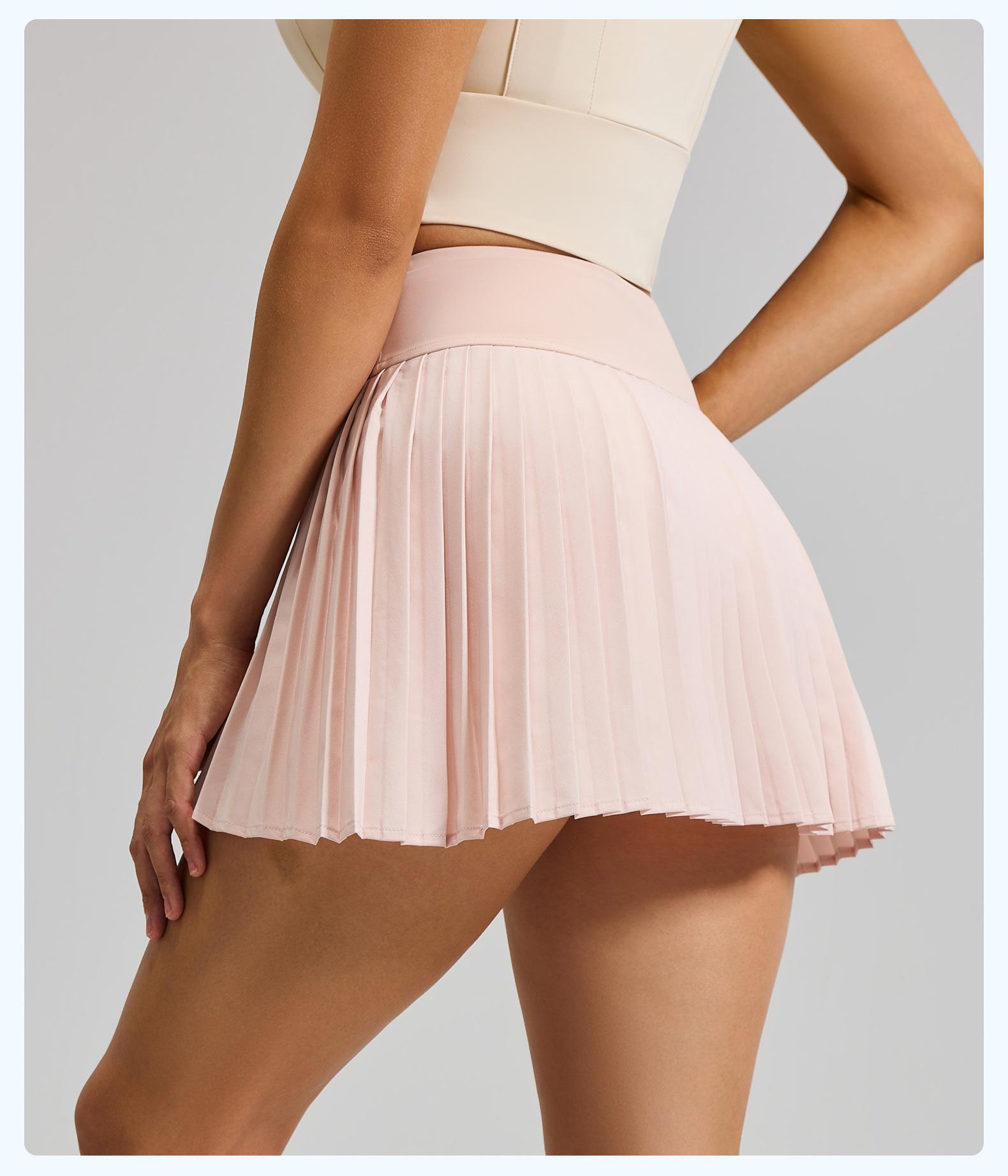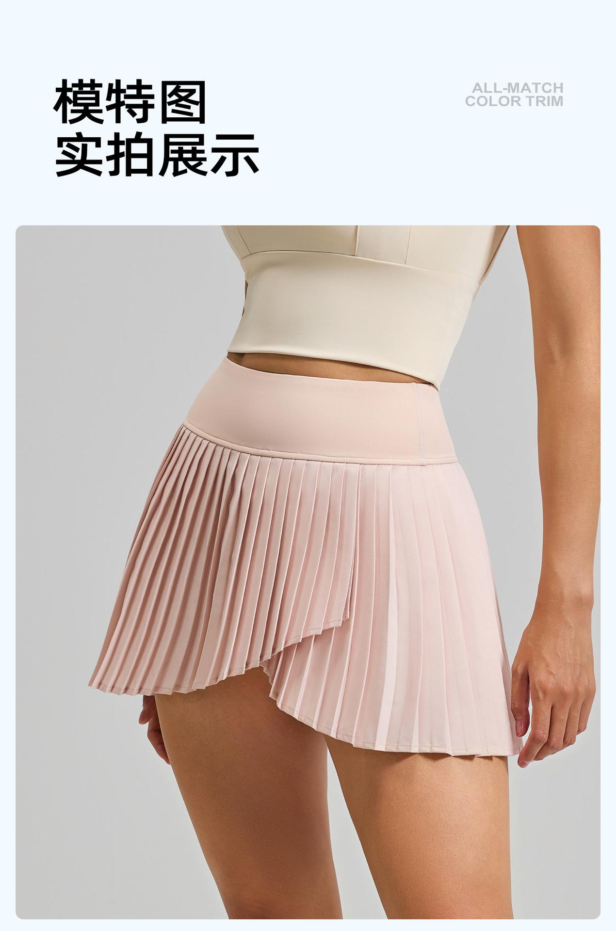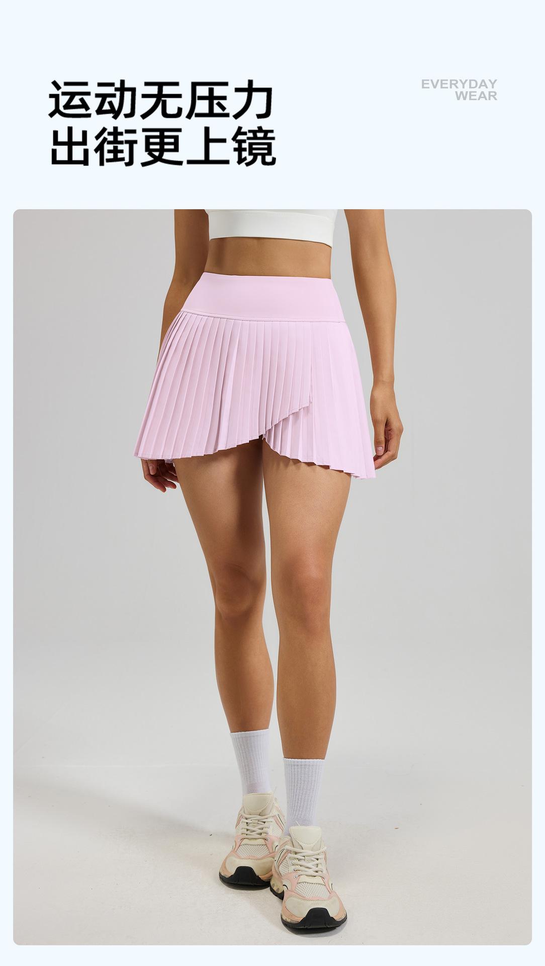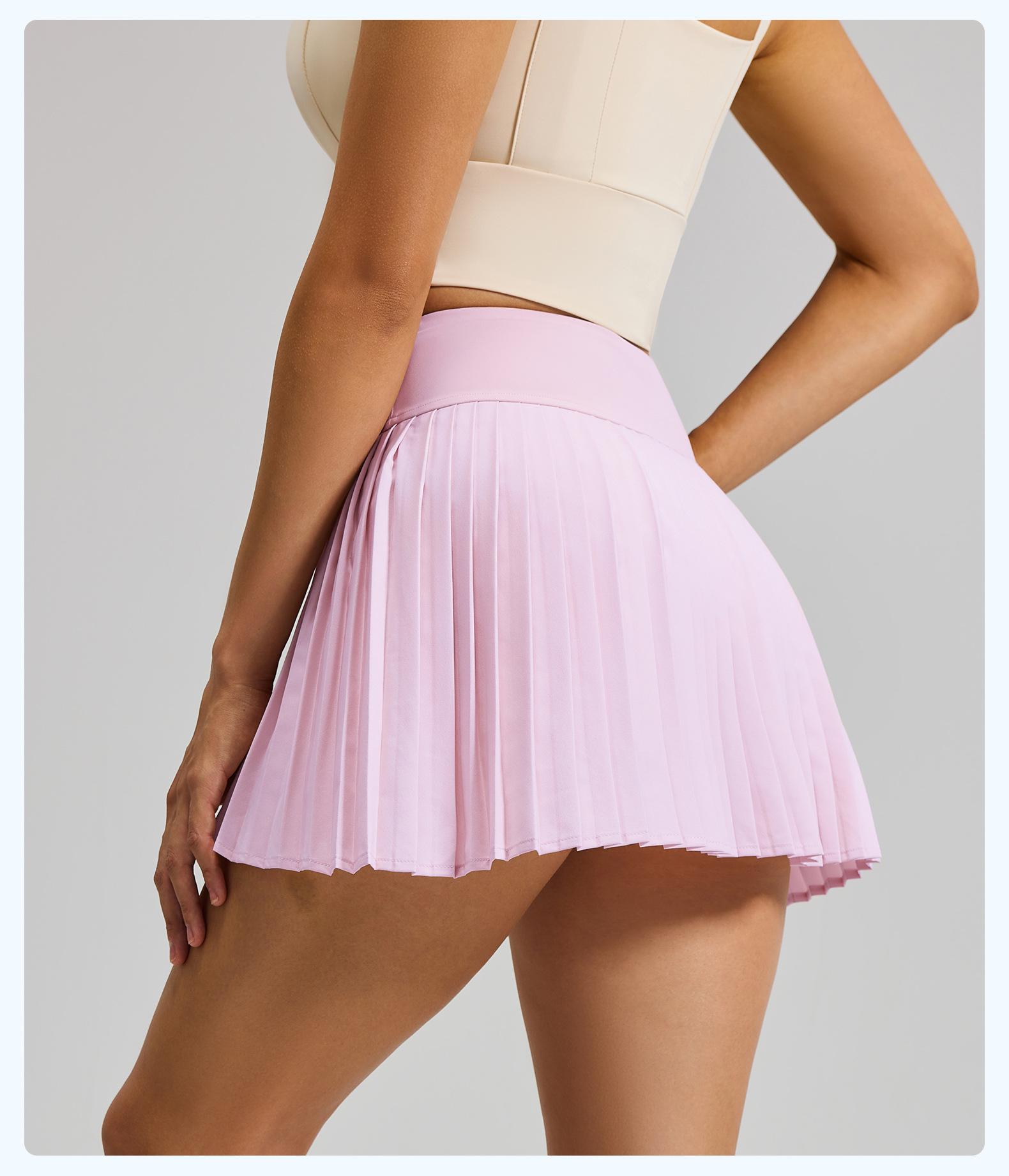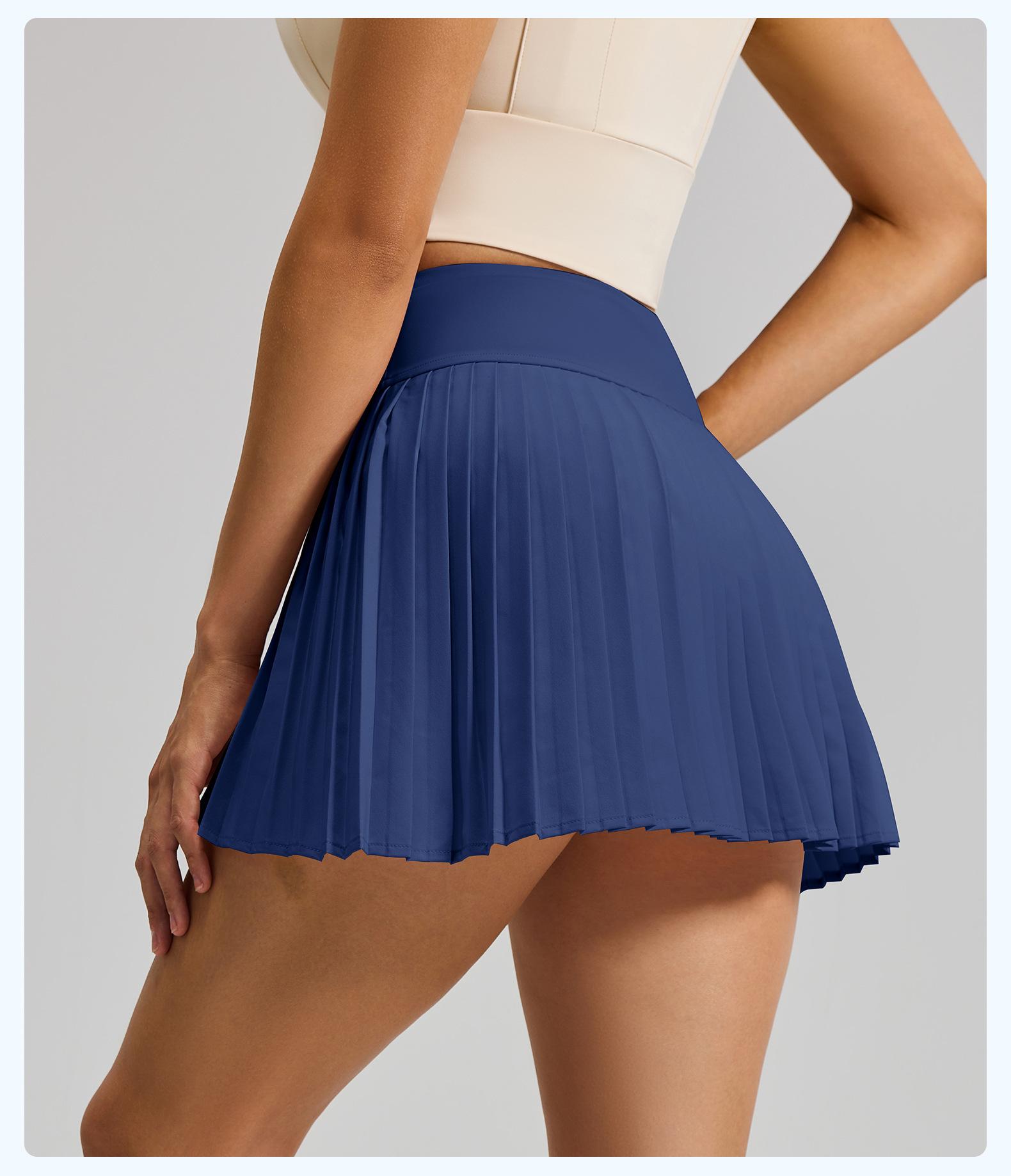Falda plisada con abertura de dos piezas falsas Yoga Cintura alta Antiexposición Falda de tenis con bolsillos Doble capa Antideslizante Color sólido Falda corta