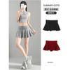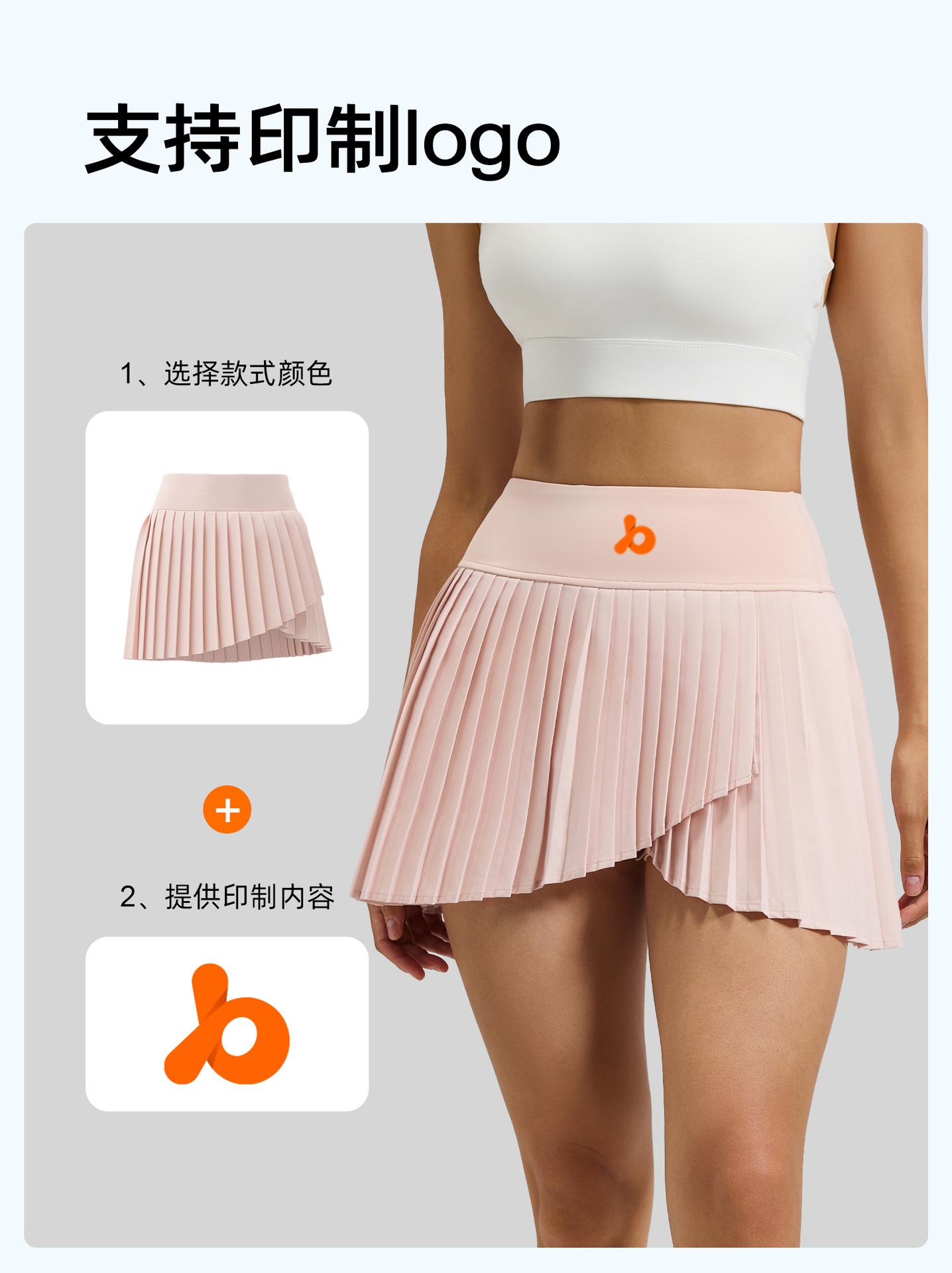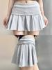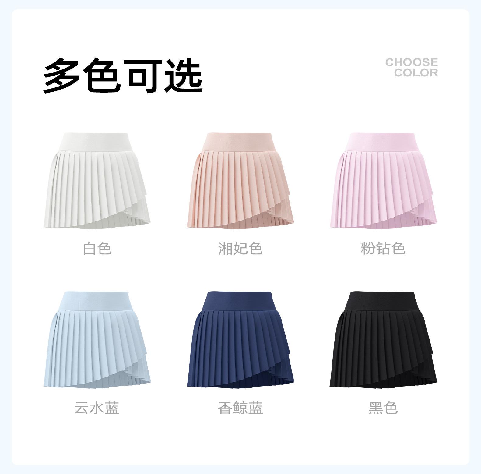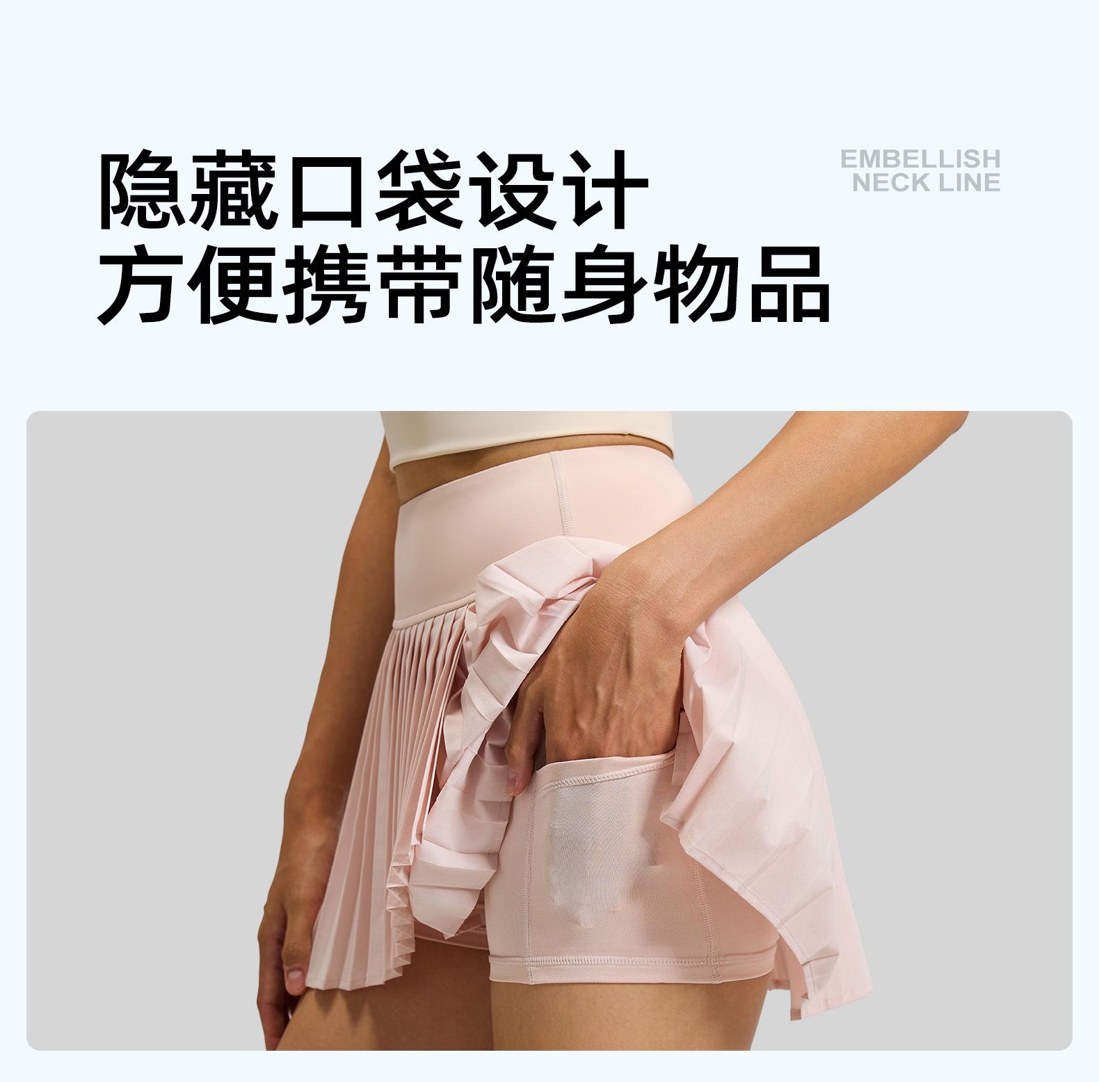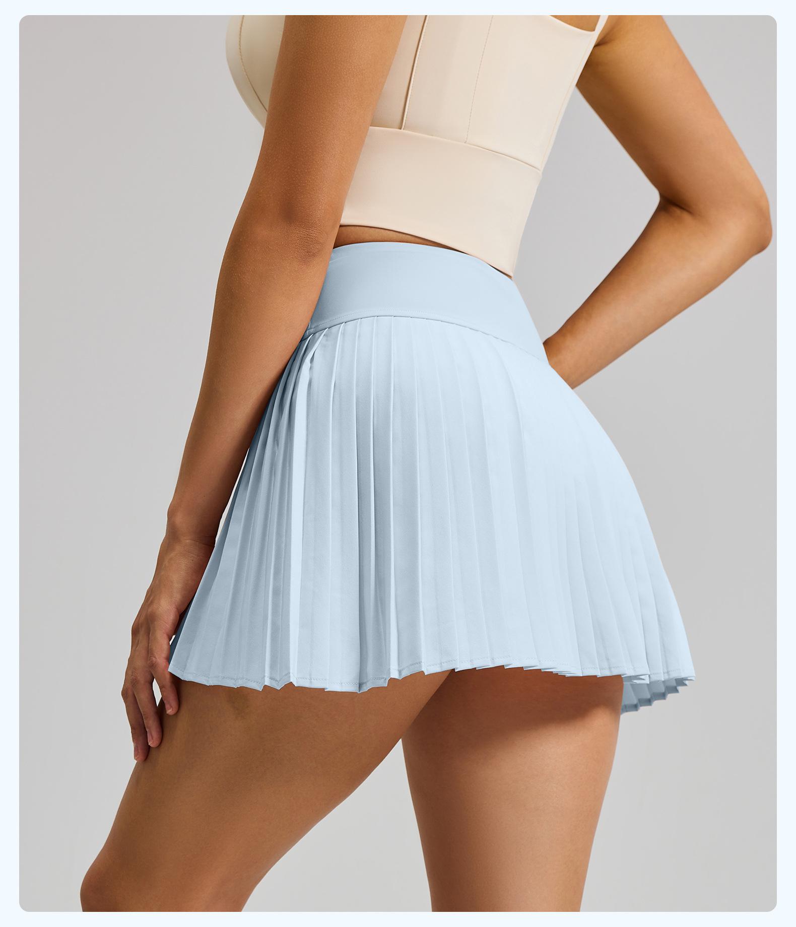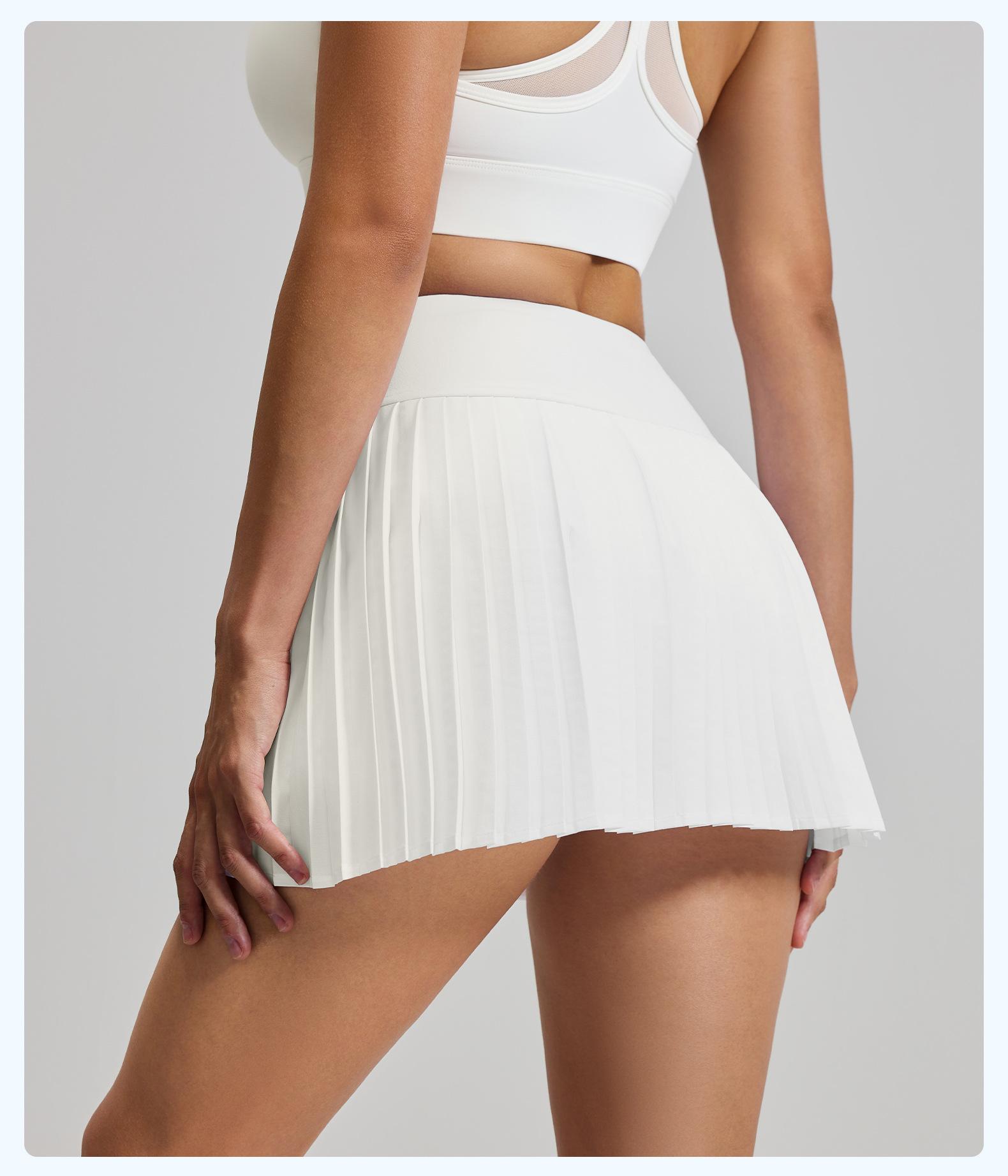 Falda plisada con abertura de dos piezas falsas Yoga Cintura alta Antiexposición Falda de tenis con bolsillos Doble capa Antideslizante Color sólido Falda corta
