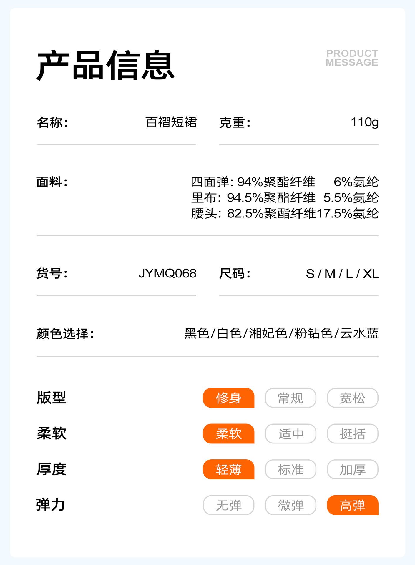 94% polyester fiber (polyester) + 6% spandex