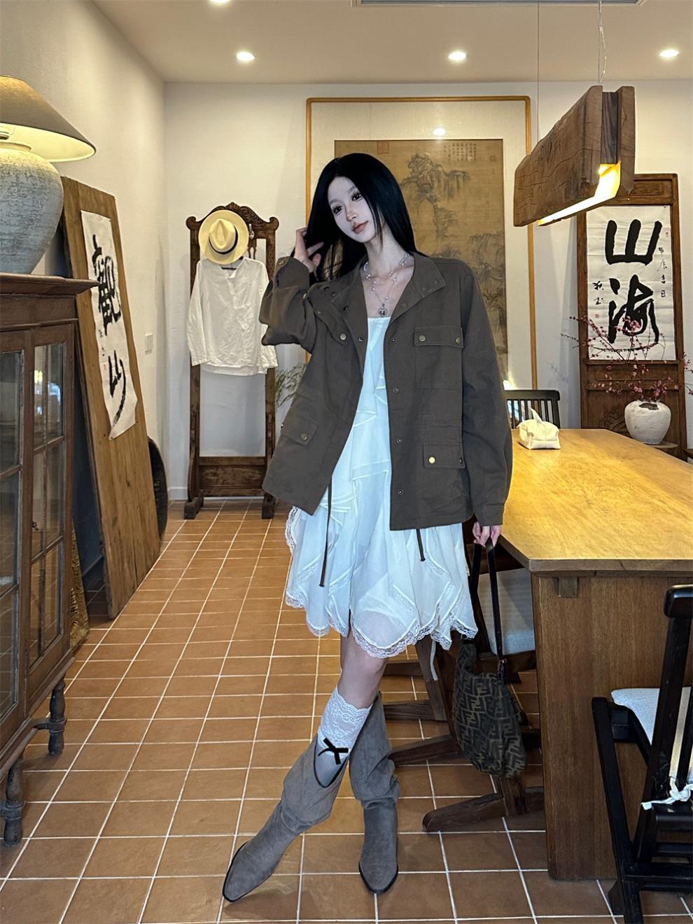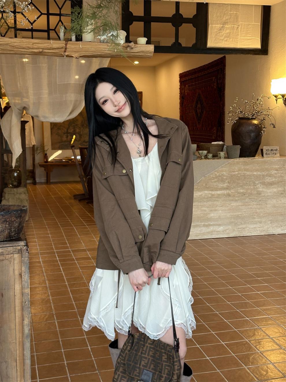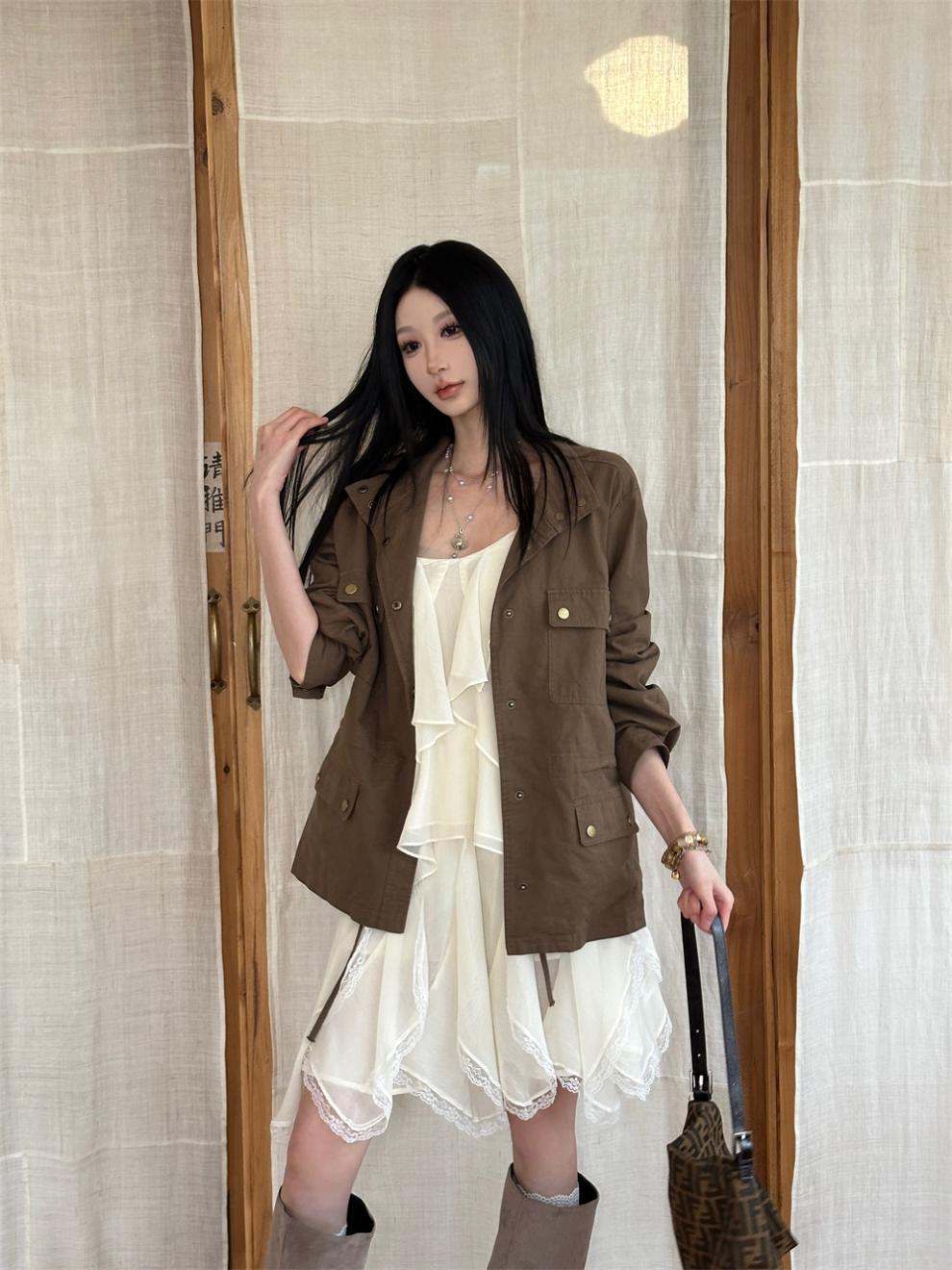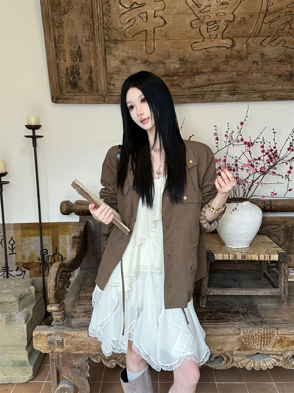 Foto real en stock camisola irregular hoja de loto falda pétalo encaje traje pantalón ropa de viaje para vacaciones