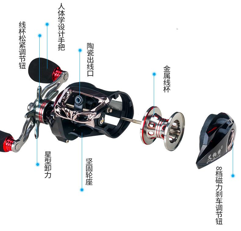 Carrete de goteo remoto de metal anti-explosión línea pesca de balsa carrete de pesca negro micro-objeto copa de doble línea carrete de carretera asiático carrete de línea de pesca freno magnético