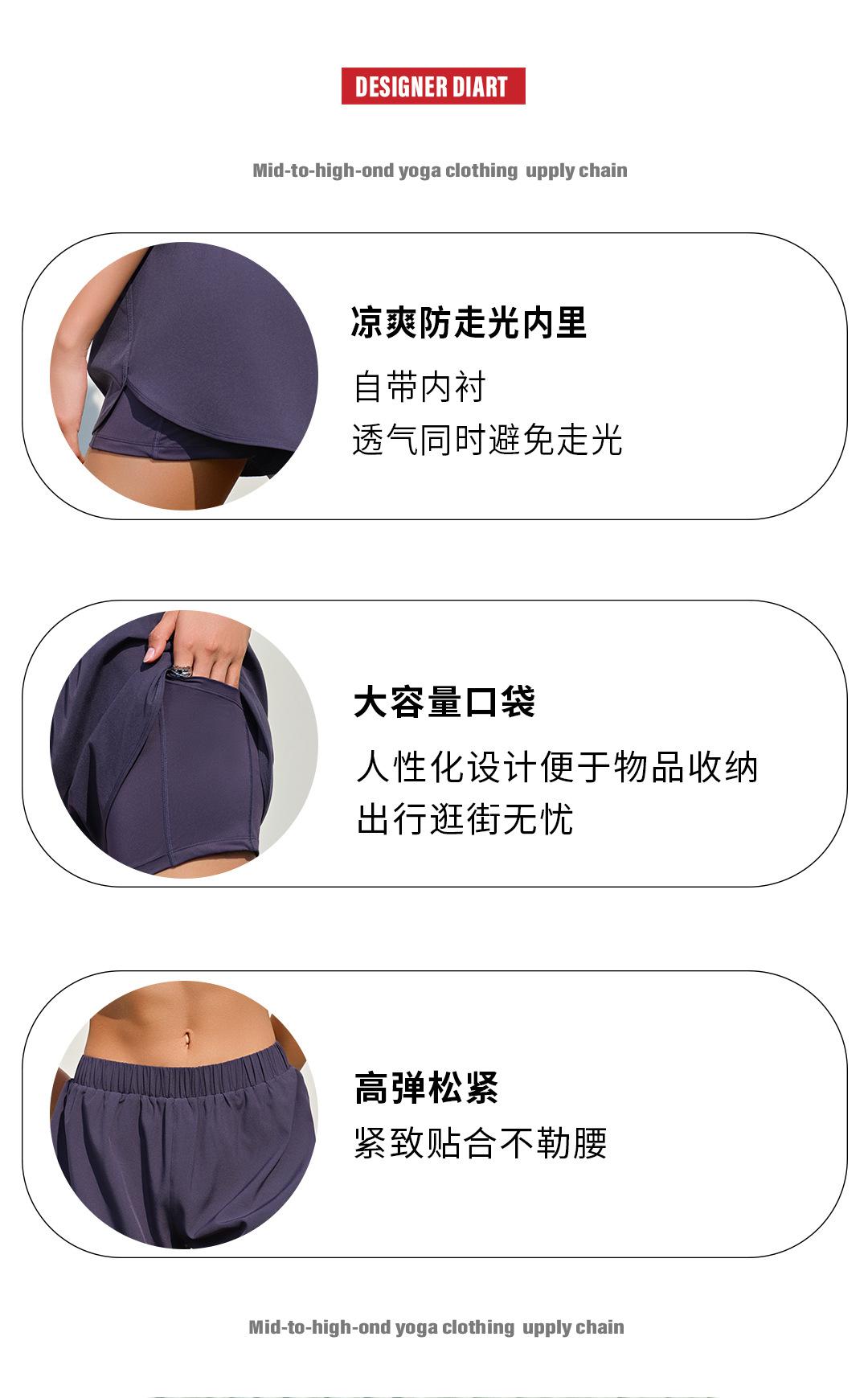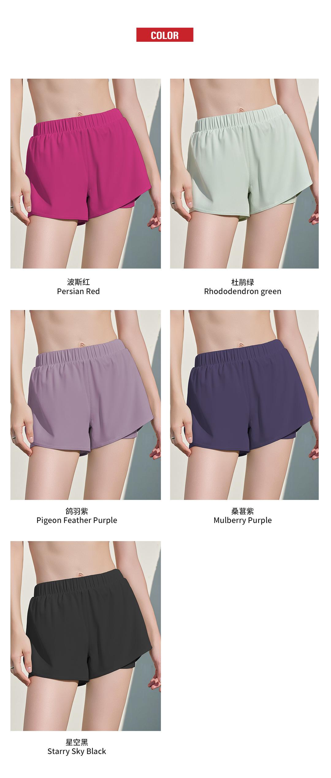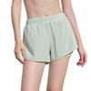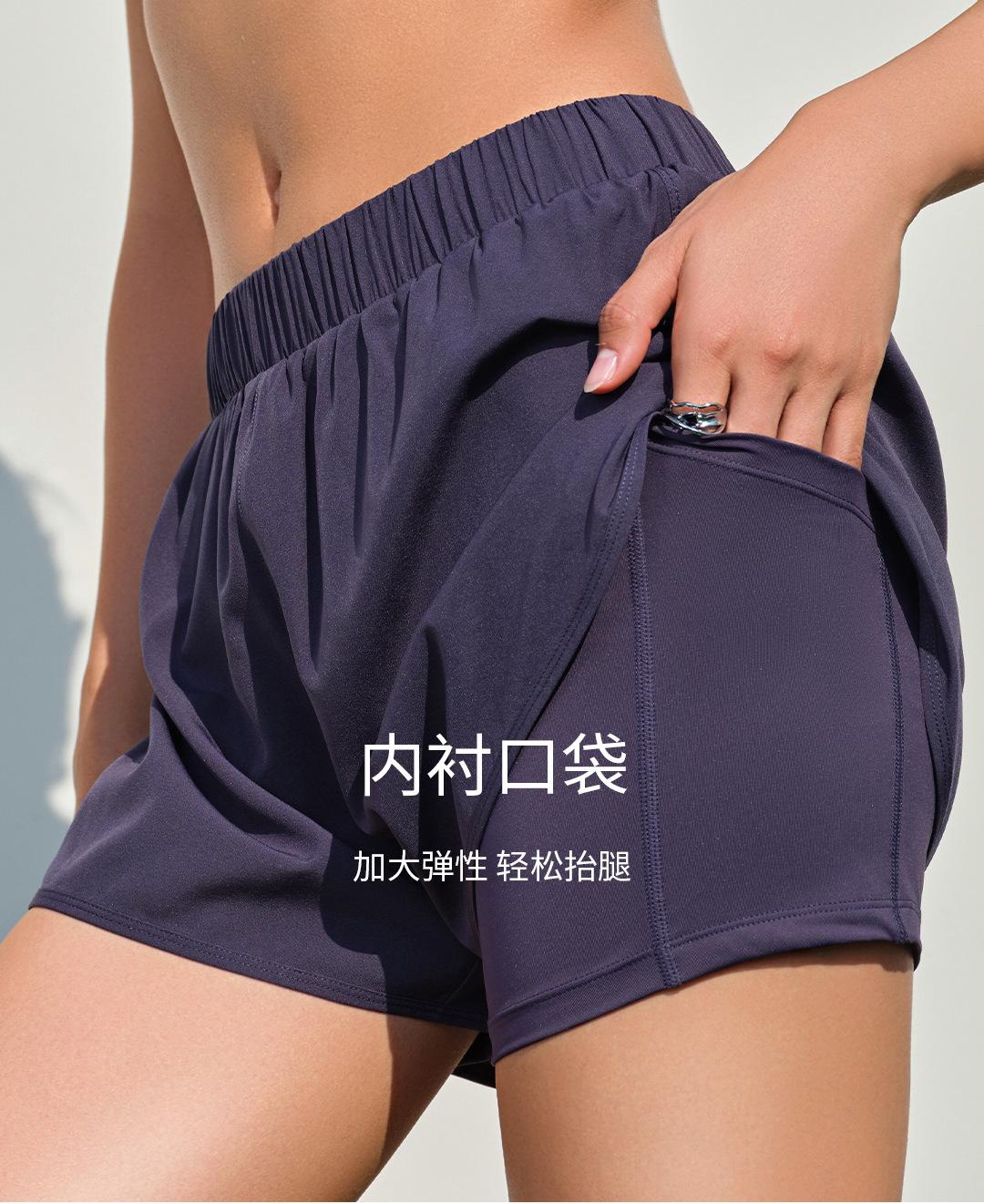 Shorts de running frescos de dos piezas falsas para mujer, pantalones de tres puntos antiluz con bolsillo para teléfono móvil, shorts de fitness para yoga de verano