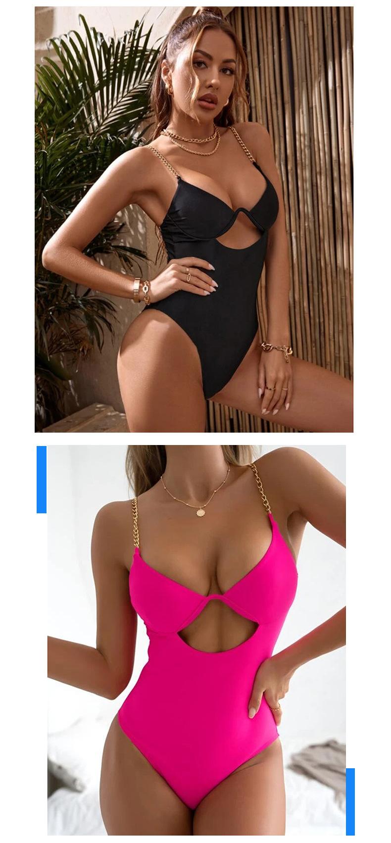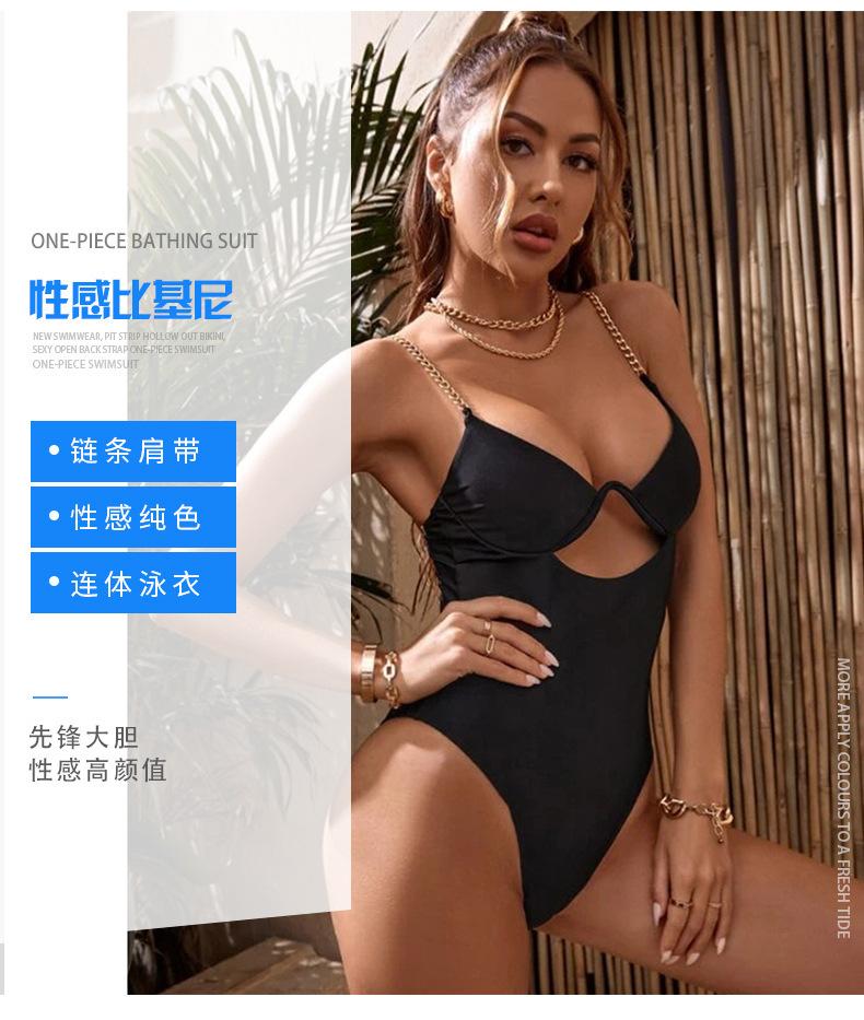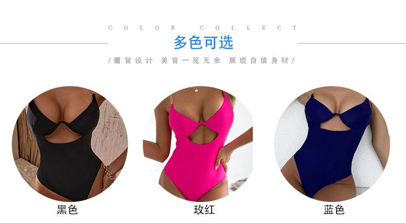 Traje de Baño Entero de Acero con Aros Amazon Tirantes Sexy Europeo y Americano Color Sólido Bikini Triángulo Traje de Baño Push-Up para Mujer Venta al Mayoreo