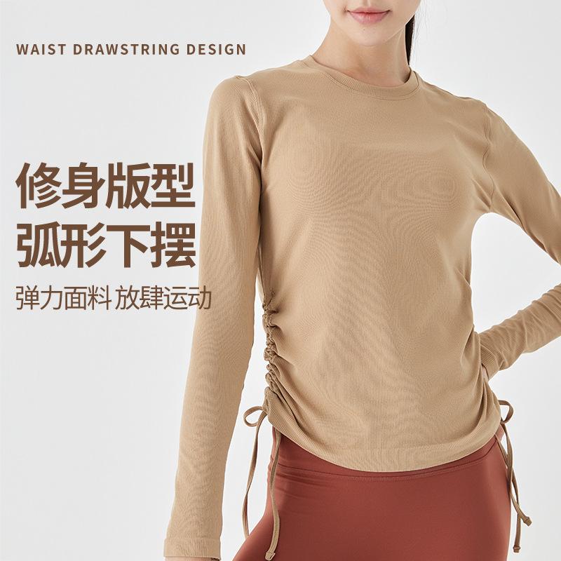 Ropa de Yoga de Otoño e Invierno Manga Larga Ajuste Ceñido Super Elástica Cordón Correr Entrenamiento Ropa de Fitness Mujer Transpirable Sensación Algodonosa Top de Yoga