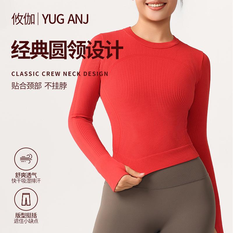 Ropa de Yoga Mujer Otoño Invierno Adelgazante Alta Elástica Cuello Redondo Deportes Manga Larga Running Entrenamiento Secado Rápido Top Fitness