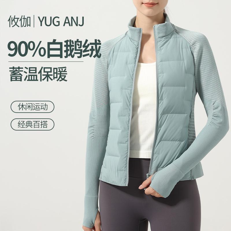 Chaqueta Deportiva de Plumón para Mujer Plumón de Ganso Blanco Cálida Ultraligera Adelgazante Costuras Sin Costuras Ligera para Correr Fitness Ropa Exterior