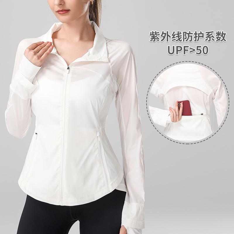 lulu mismo estilo corte delgado ajustado chaqueta con capucha de manga larga transpirable anti-ultravioleta adelgazante ropa de protección solar mujeres