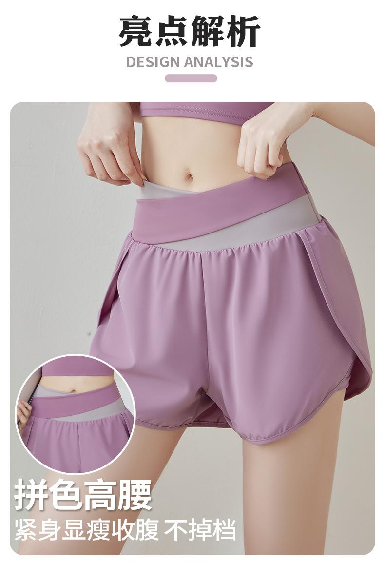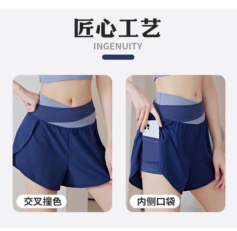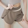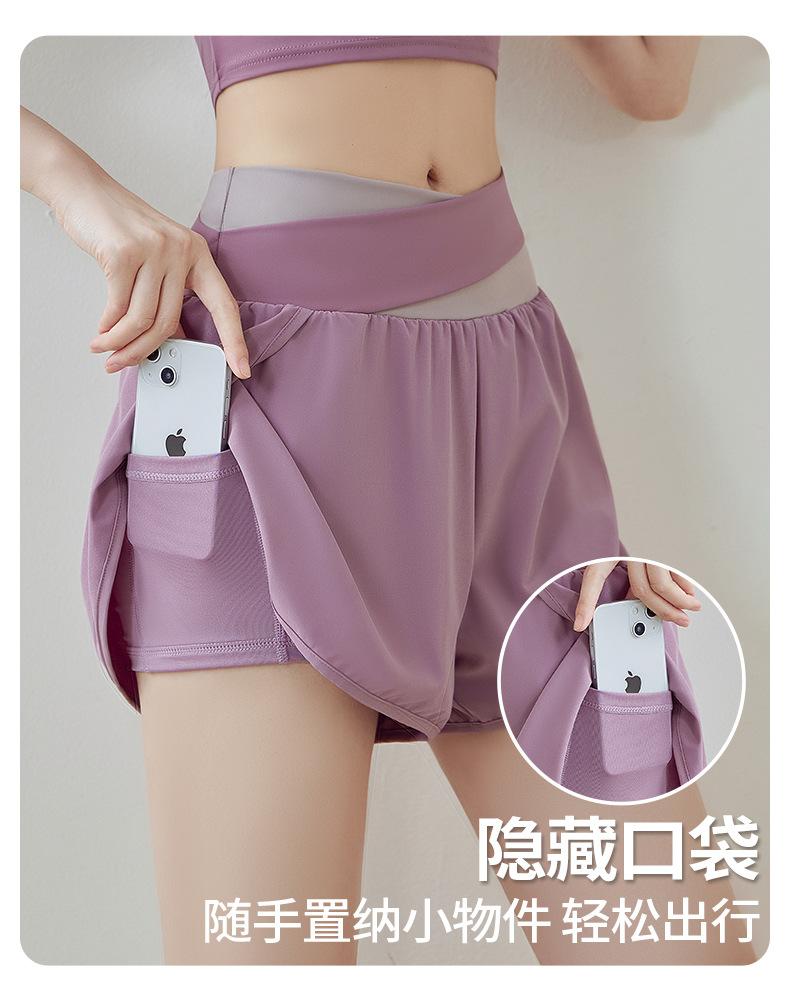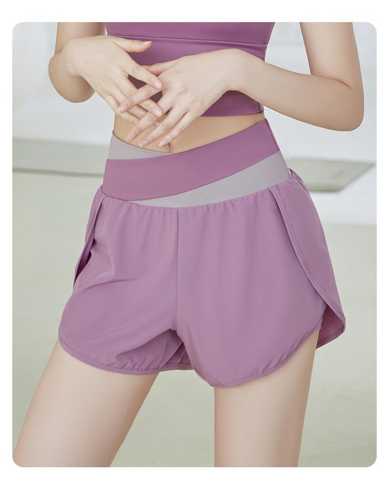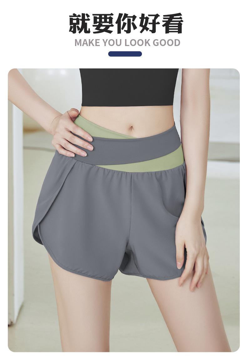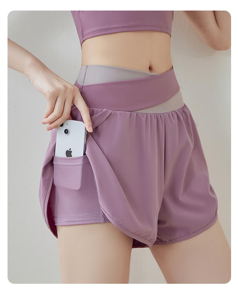 Shorts de Yoga de Dos Piezas Falsas con Bloque de Color Ropa Deportiva para Correr y Fitness Sensación Desnuda Antiexposición Shorts Deportivos para Mujer Verano con Bolsillos