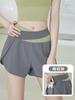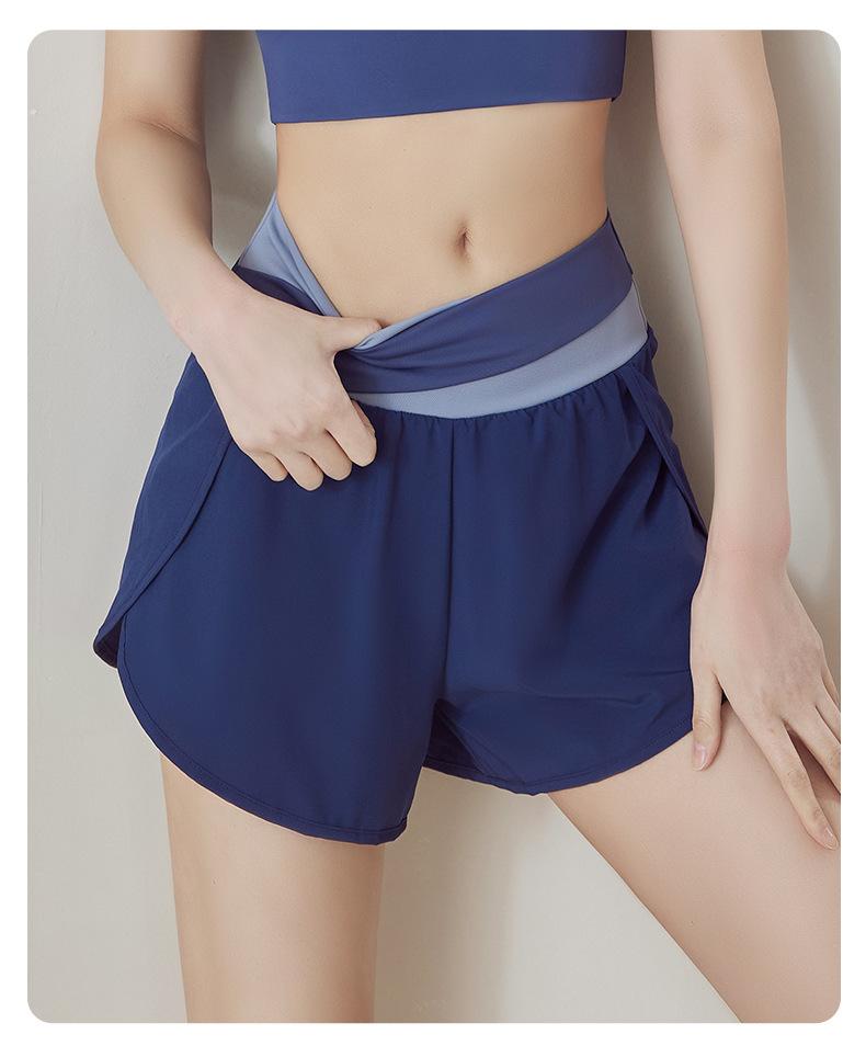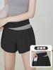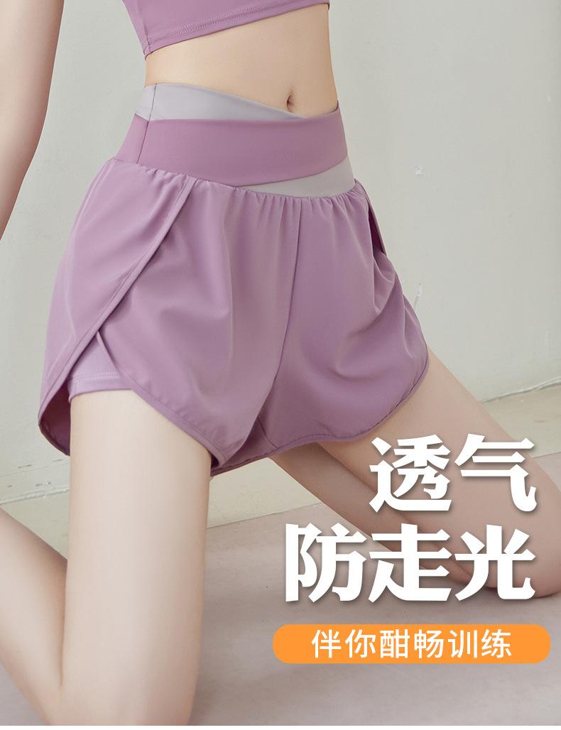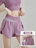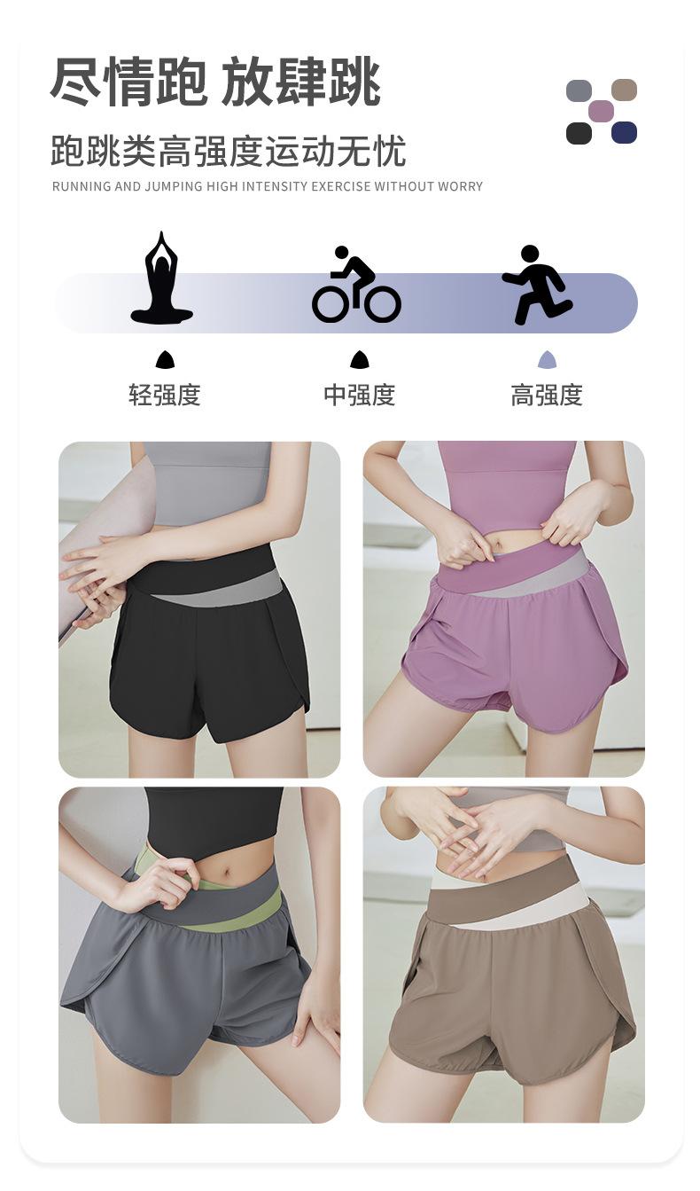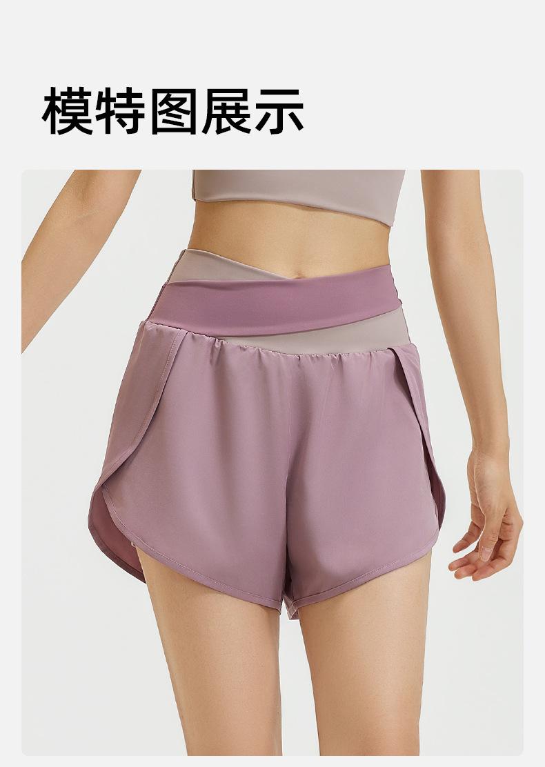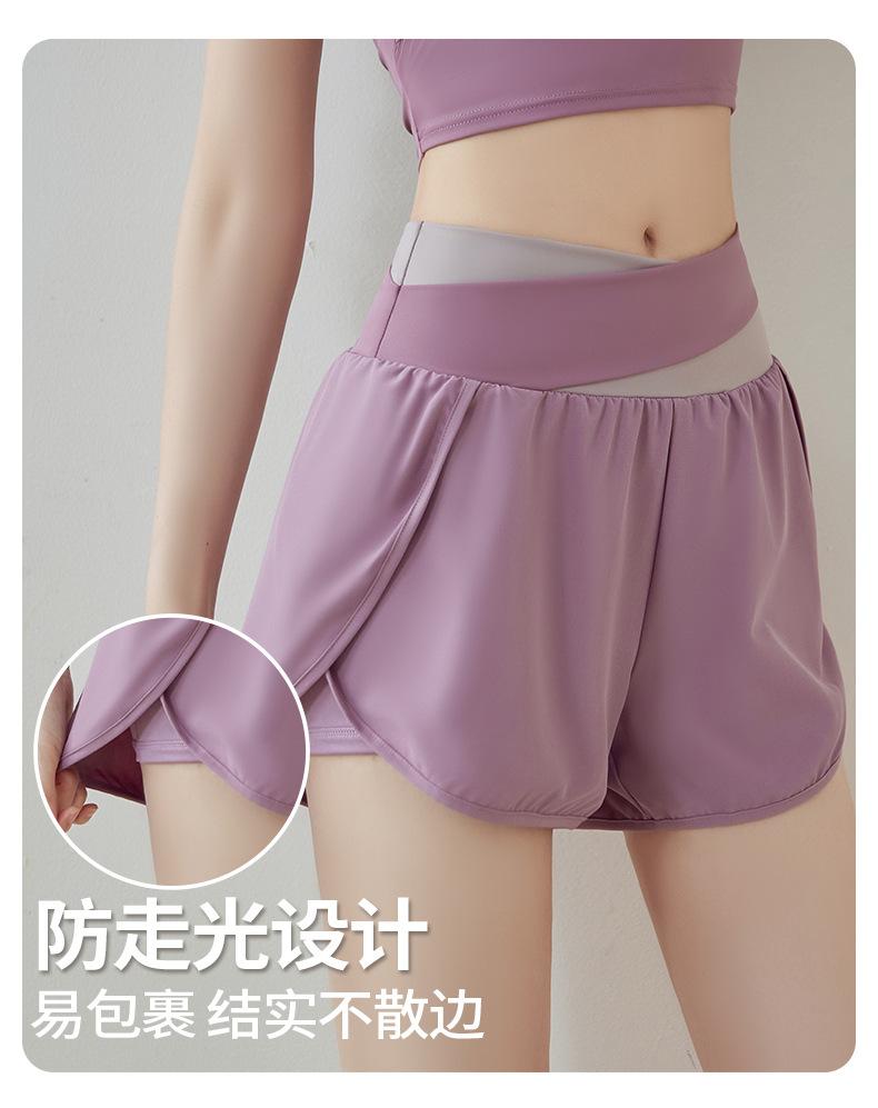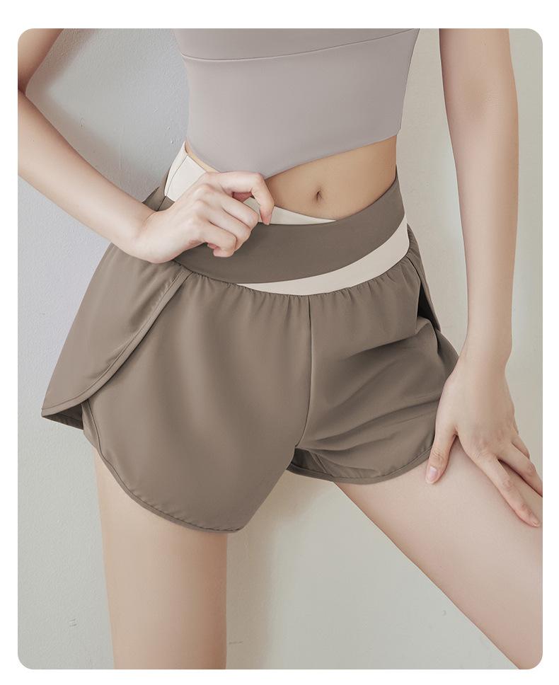 Shorts de Yoga de Dos Piezas Falsas con Bloque de Color Ropa Deportiva para Correr y Fitness Sensación Desnuda Antiexposición Shorts Deportivos para Mujer Verano con Bolsillos