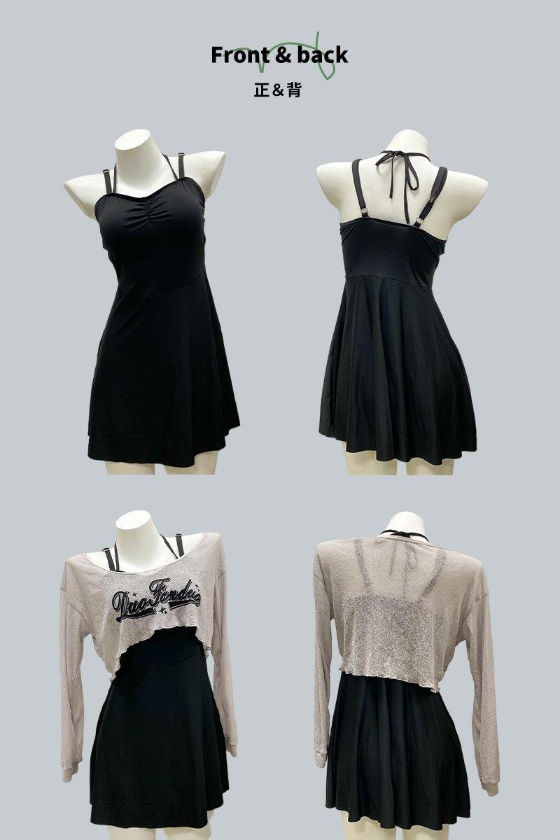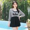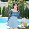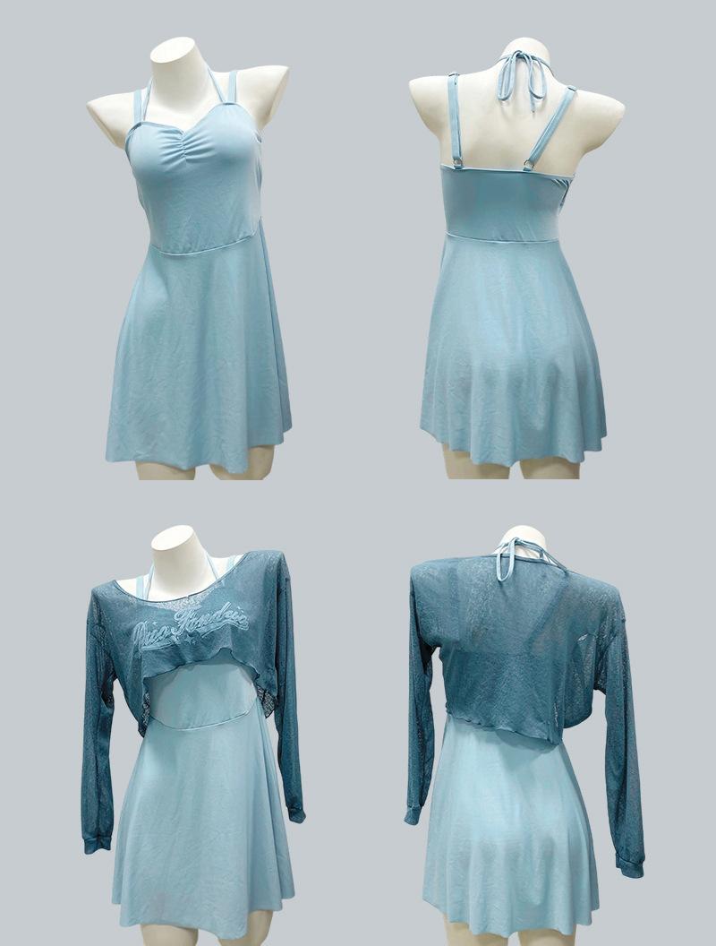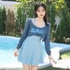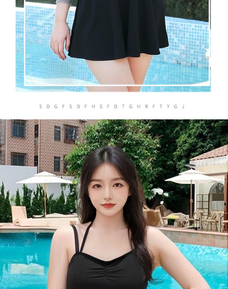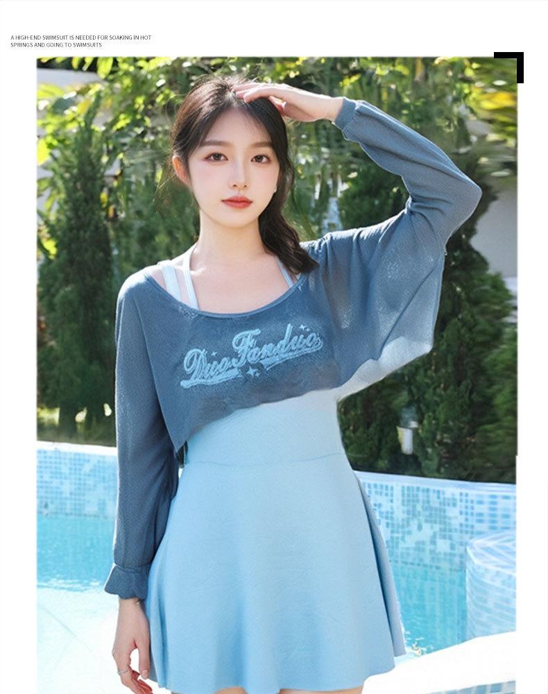 Traje de Baño Conservador de Verano para Cubrir el Vientre Adelgazante Set de Tres Piezas Una Pieza Talla Grande Manga Larga Cubre-Hombros Halter Top de Tirantes Traje de Baño para Gorditas MM