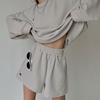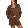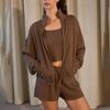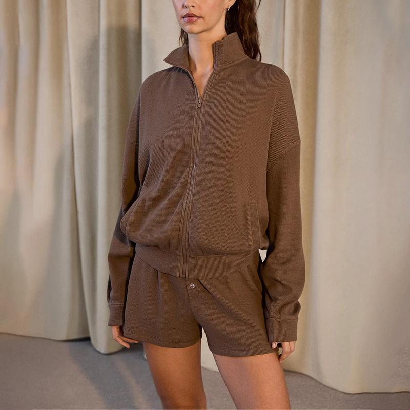 Chamarra Waffle de Cuello Alto Otoño/Invierno Transfronteriza para Mujer, Conjunto Sencillo de Pantalones Deportivos de Cintura Elástica y Cárdigan Delgado con Cremallera