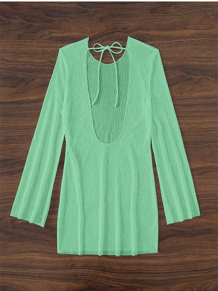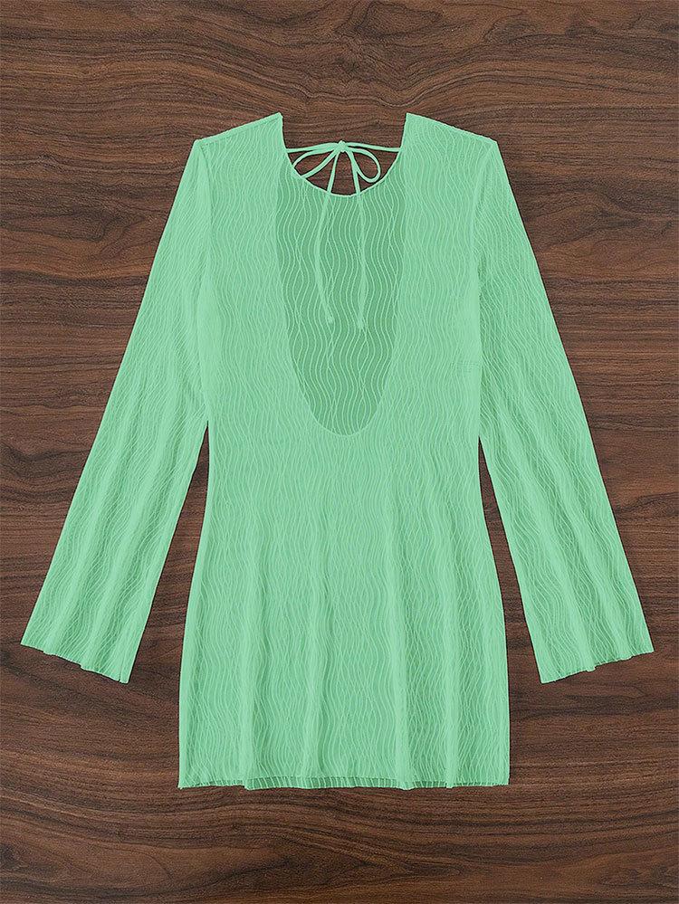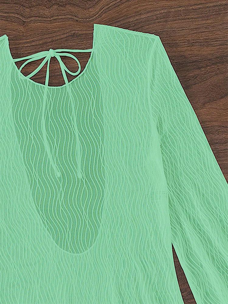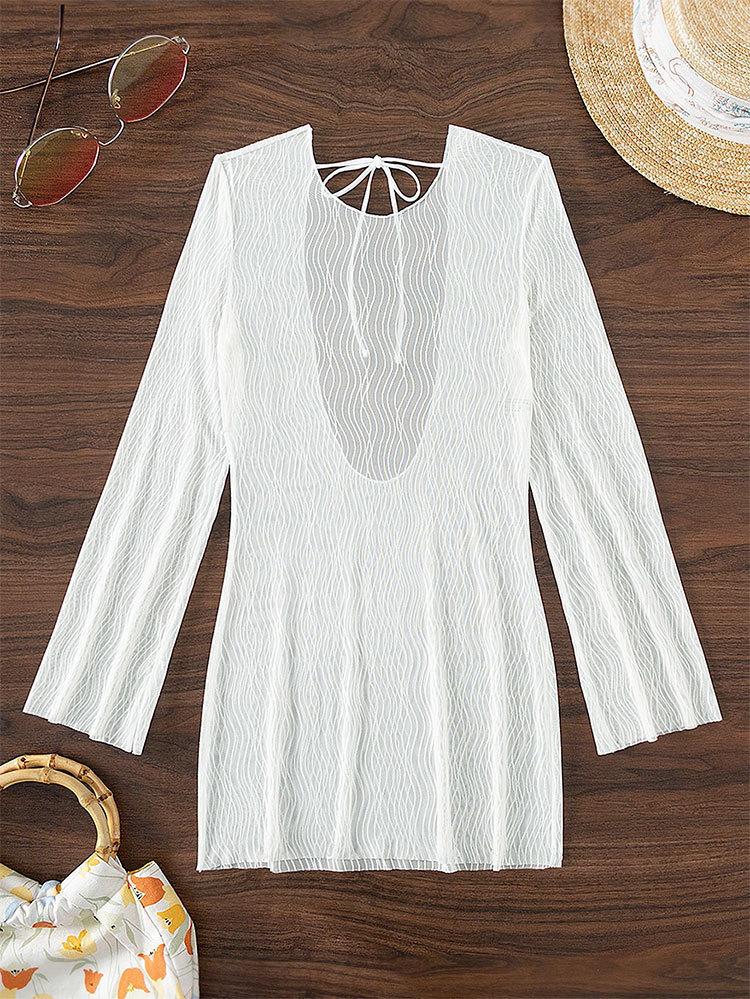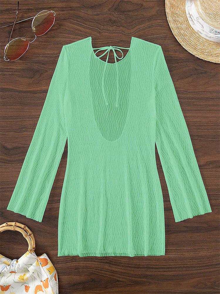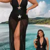 Traje de Baño de Comercio Exterior de Amazon al Por Mayor 2025 Nuevo Europeo y Americano Sexy Malla Transparente Manga Larga Ropa de Playa Cubre Traje de Baño Mujeres