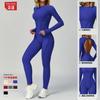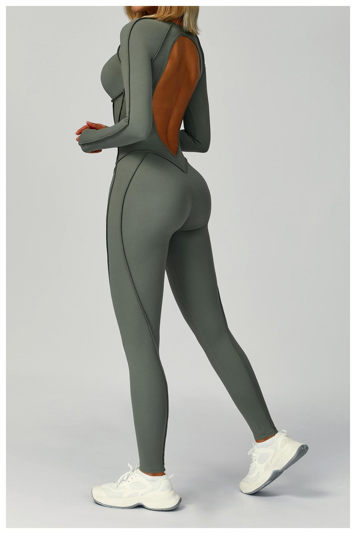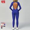 Mono de Yoga Transfronterizo Cepillado a Color Contrastante con Abertura en la Espalda Hermosa Ropa de Yoga para Mujer Estéreo Ajustada Ropa Deportiva Fitness 9319