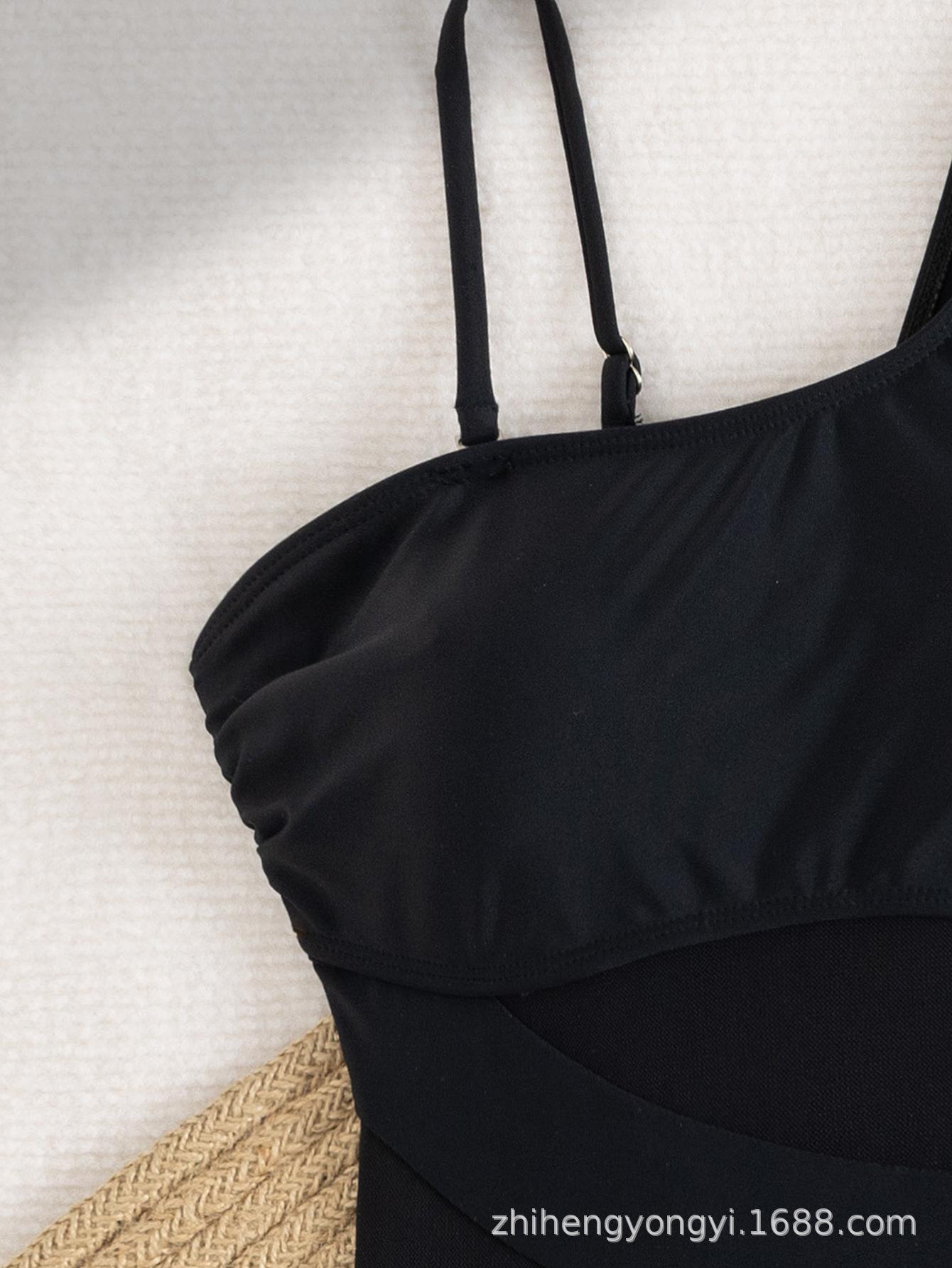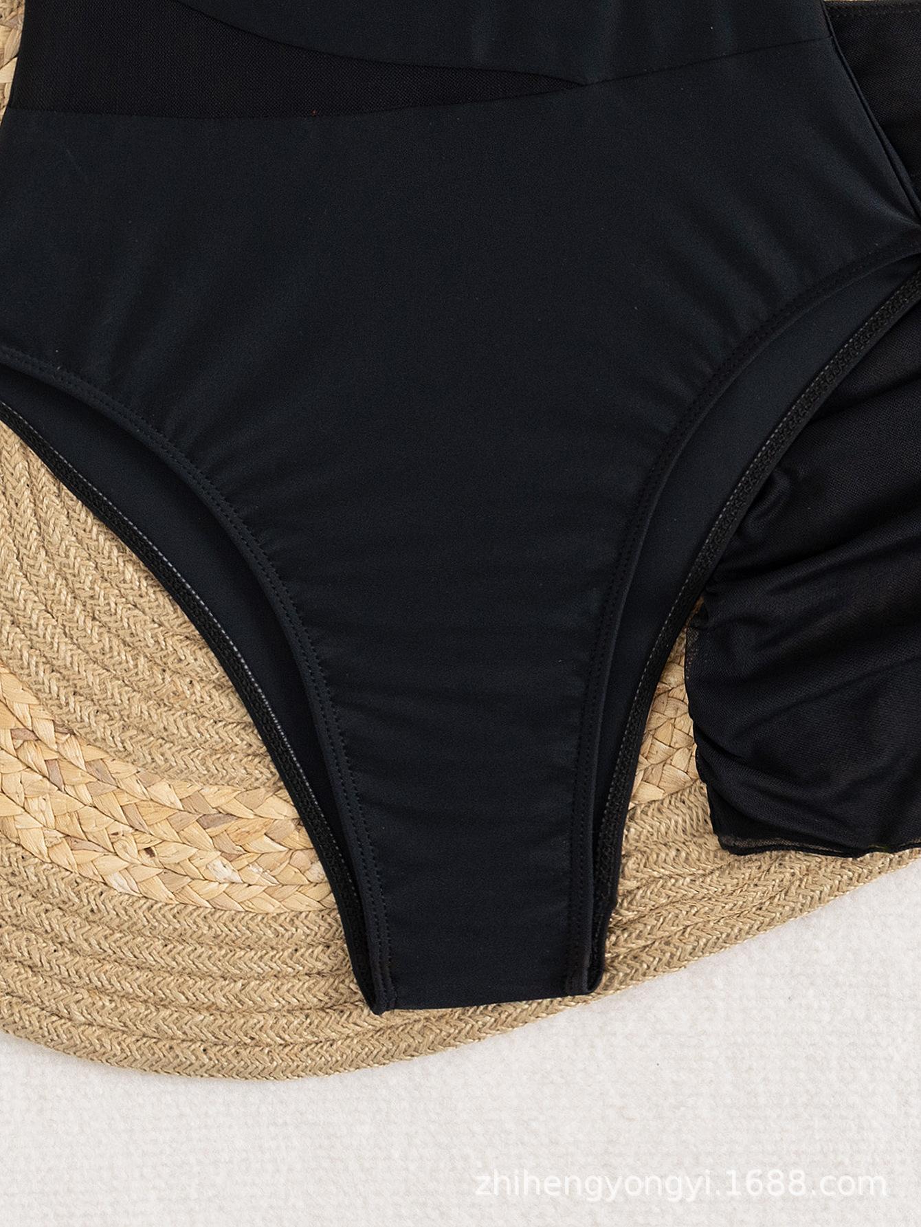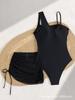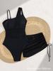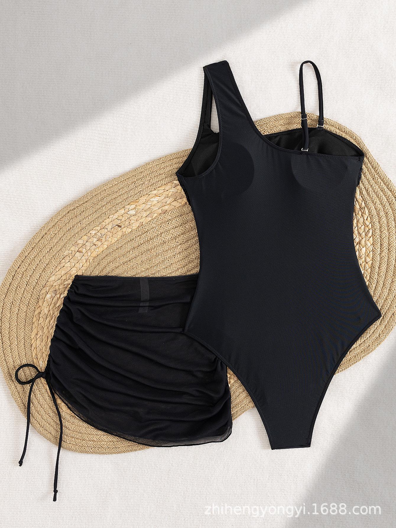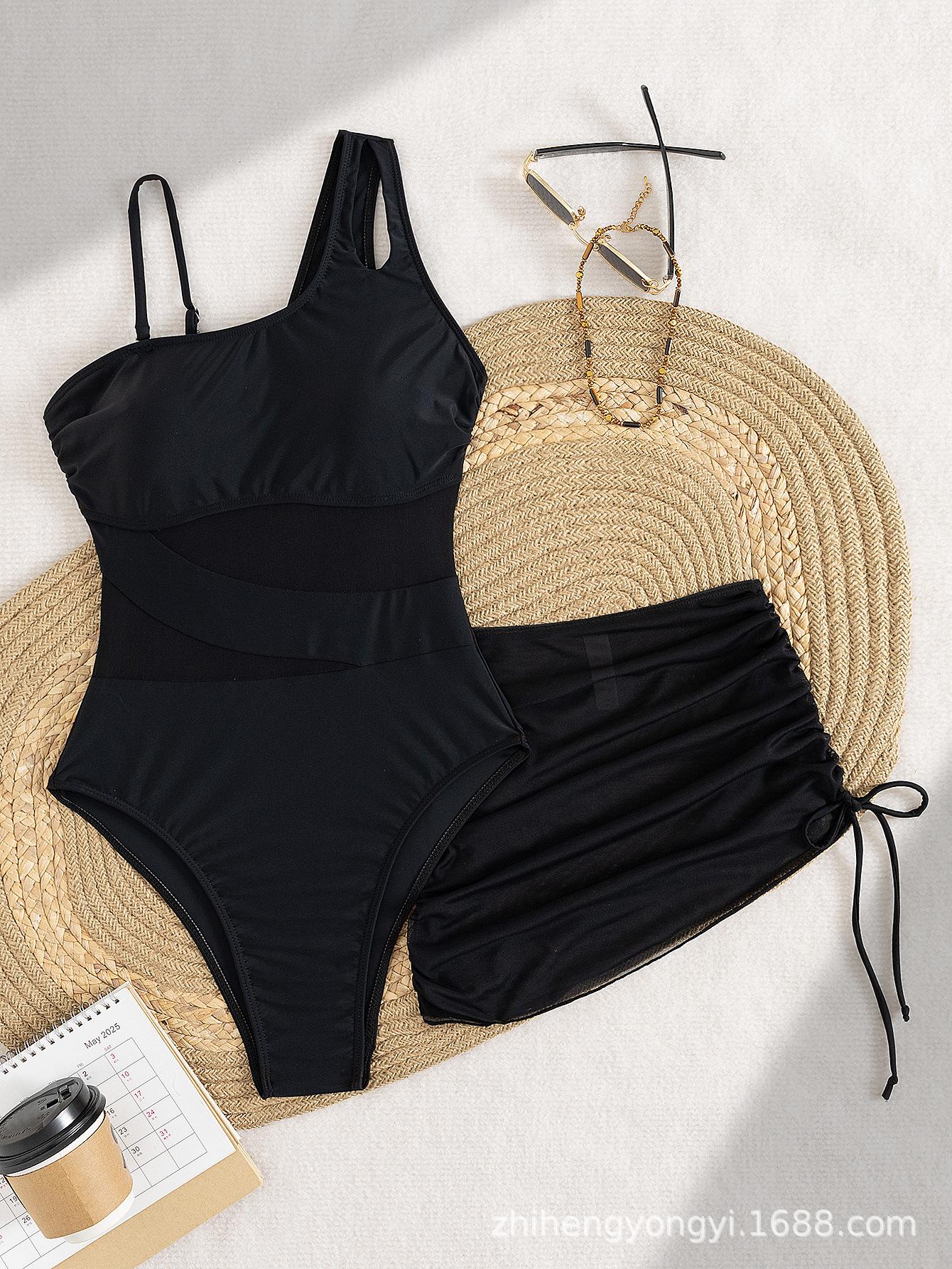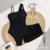 Traje de Baño Entero Nuevo 2025 para Mujer Europeo y Americano Color Sólido Sexy Un Hombro Conjunto de Dos Piezas Falda Envolvente Traje de Baño de Comercio Exterior